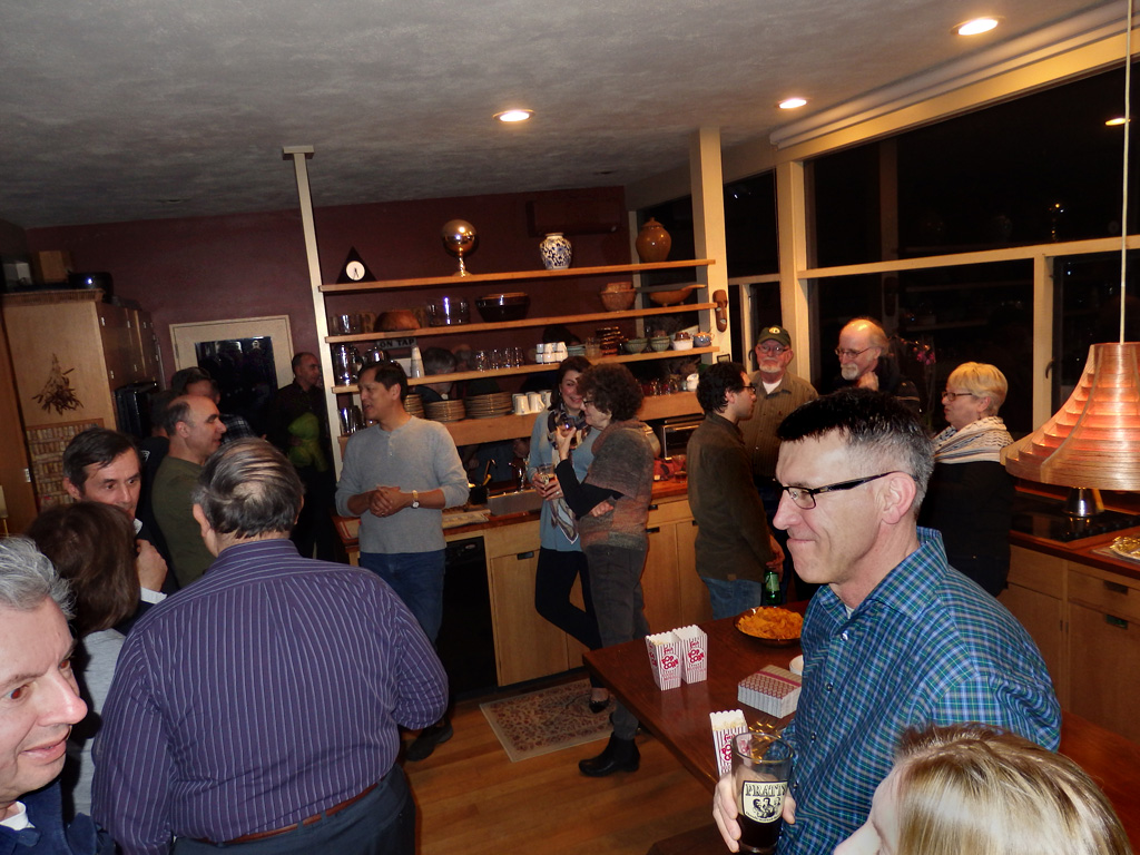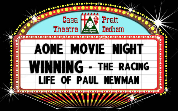 Text & photos (FWIW) by Dave Pratt What a difference a week makes! We had to postpone AONE's first Pizza and a Movie Party of the year from January 23rd to the 30th due to the snowstorm that came into town. But that snow was mostly gone and we had pleasant weather and dry roads for our second attempt. We unfortunately lost a few people who had signed up for the 23rd and couldn't make the 30th, but we made up for it with several people who couldn't make the 23rd. Win some, lose some. All told, 26 sports car fans (and/or Paul Newman fans) came out for our movie screening party. We started off by hanging out in the kitchen (what is it about kitchens?) for a while, sipping wine, homebrew, and other beverages, and munching on chips and popcorn (Newman's Own brand, of course!). Then, roughly on time, we lowered the lights in the living room, where the club's big-screen multi-channel A/V system was set up. Our main feature for the night, Winning - The Racing Life of Paul Newman, was quite well received. Even people who knew that Newman raced learned what a good driver and successful racer he really became! (Of course, there were a few who couldn't get past those blue bedroom eyes.) There was a lot of good racing footage and many interviews with people who knew him in his racing days. The film industry came close to losing Paul Newman to pursue racing full-time! The pizza arrived right on time, a few minutes before the movie ended, so it was back to the kitchen to dive in. Everyone seemed to agree that the offerings of Pizzeria Alto Strada were excellent — we'll use them again. (Well, okay, it's Dedham's High Street Pizza, in case you're in the neighborhood sometime.) The pizza was accompanied by salad that Vi had assembled ... served with Newman's Own dressing, of course! After intermission, we resumed our seats to watch The Marque of a Legend, a film from the collection of official club movie buff / collector, Phil Bostwick. This, "the story of man's quest for the Ultimate Sports Car", was also quite well received and everyone stayed to the very end. And, unlike the main feature, this one had a good deal of Alfa content! When the lights came up, people hung around for a bit and then drifted off toward home. (Except for Vi & Dave, who were home.) It seemed like our domestic venue worked quite well for our club movie night and we'll definitely do it again ... perhaps in just a few weeks — stay tuned! (Sorry about the dearth of photos.) Pizza and a Movie Night Attendees