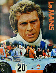 The film Le Mans captures the flavor of all of this. It is not just a racing movie but a movie about all the aspects of the event that is Le Mans. The race itself (which uses actual footage of the 1970 edition of the race) is an important part of the film, including a fictional finish with two Ferraris and two Porsches all on the same last lap (and one race-result-altering tire failure). But just as important as the race itself is how the film captures the dynamic of being a driver in such a race: from living with the real danger of crippling or deadly crashes; to the widow (forgettably acted by Elga Andersen) who, in spite of the tragic death of her husband the previous year, can't keep away from the spectacle; to the experienced driver (played by Fred Haltiner) who makes his wife's day when he tells her that this race will be his last, that it