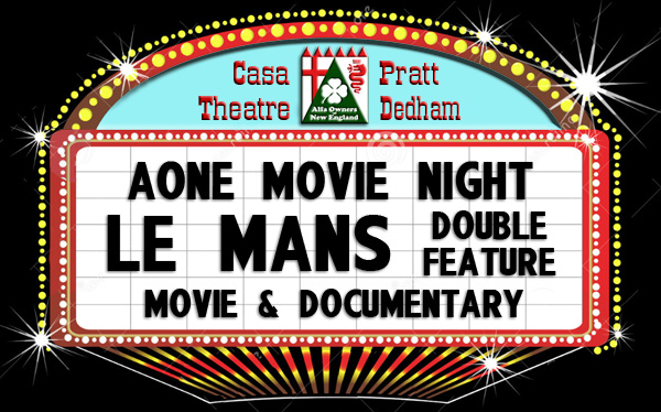 [Around 20 sports car / racing / movie / McQueen / pizza fans came out for our first AONE Pizza and a Movie Night of the off-season on Saturday, November 19th. They were greeted by the aroma of popping corn to set up an atmosphere of authenticity (even though the "theatre" was a converted living room). When just about everyone had arrived, we ran our feature (the 1971 film Le Mans) on schedule at 4:30. The pizzas (again provided by Dedham's High Street Pizza) arrived at around 6:00 and the gang attacked them with relish (well, you know what I mean). As we sat back down, we played the high-speed chase scene from McQueen's Bullitt, which is the one that started the entire car chase genre. Finally, we screened the recent "making-of" documentary entitled Steve McQueen: The Man and Le Mans. [When Peter left for home, he and I agreed to write contrasting Siskel & Ebert-style reviews of the movies we had watched. But when Peter's arrived I immediately realized that there was no way that anything I would write could possibly come close, and I apologized for not holding up my end of the bargain. Our thanks go out to Peter and also to Phil Bostwick, who let us borrow his three McQueen blu-ray disks but was unable to join us this time. Without further ado, we hope you enjoy the excellent and informative report below.
