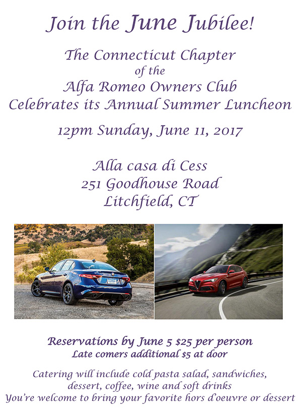 Our friends in AROC-CT have invited all AONE members (especially those in our southern reaches) to join them for a June Jubilee at Bob Cess's home on June 11th. Sure to be a good time! Click here for a downloadable PDF version of the flyer below