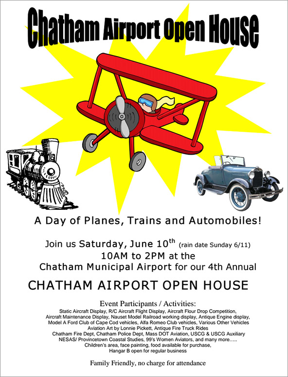 From 10am until 2pm, the Chatham Airport will be hosting their 3rd annual Open House. It is a day of Planes, Trains and Automobiles. Alfas are invited to enjoy this no-fee event, with displays of exotic cars, aircraft, and model trains. You can add a vehicle to the displays alongside aircraft or just come for the fun. There will be food, a flower drop competition for aircraft, remote controlled planes, aviation art, raffles throughout the day, and displays by fire, police, life safety and armed forces units. Please come and enjoy the day!