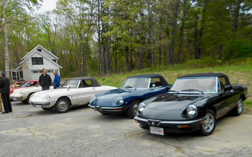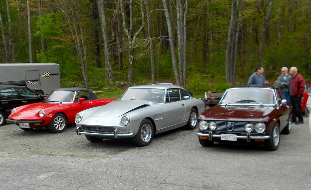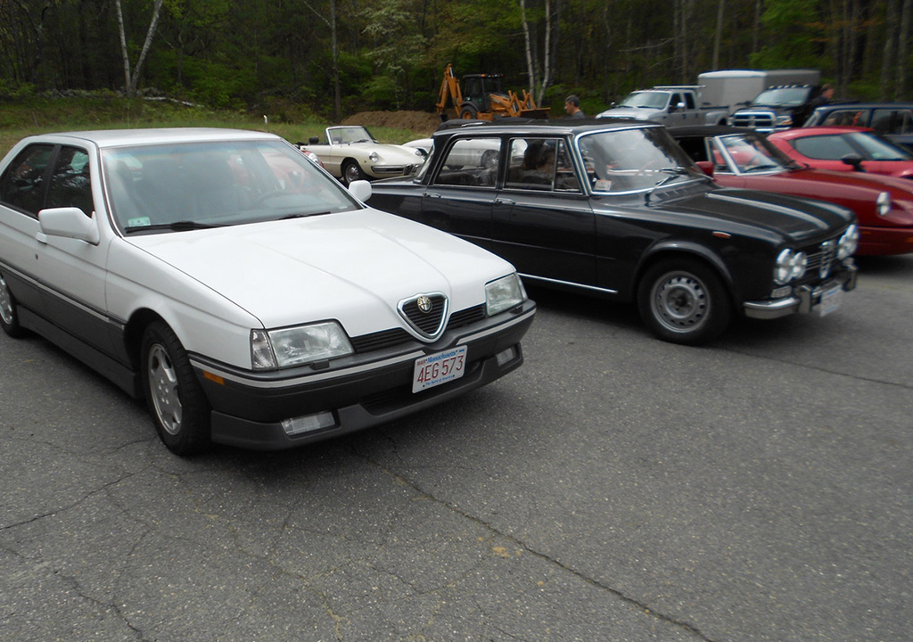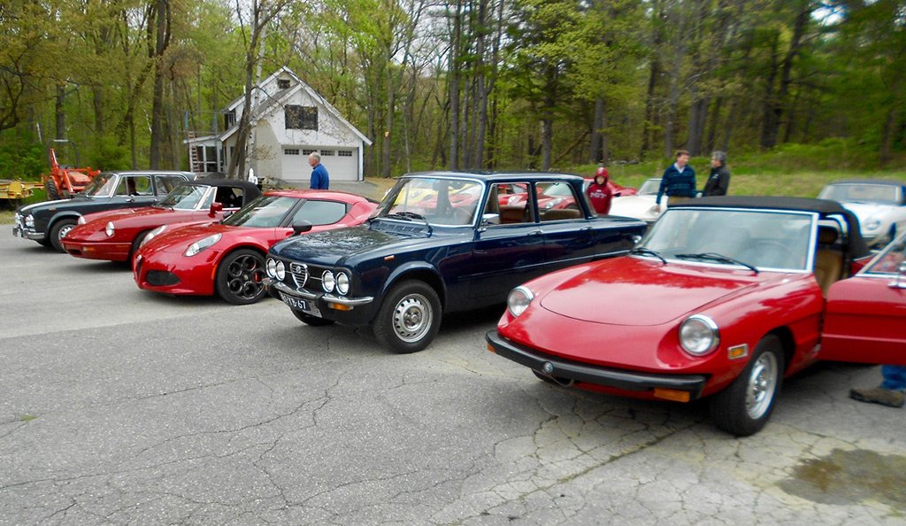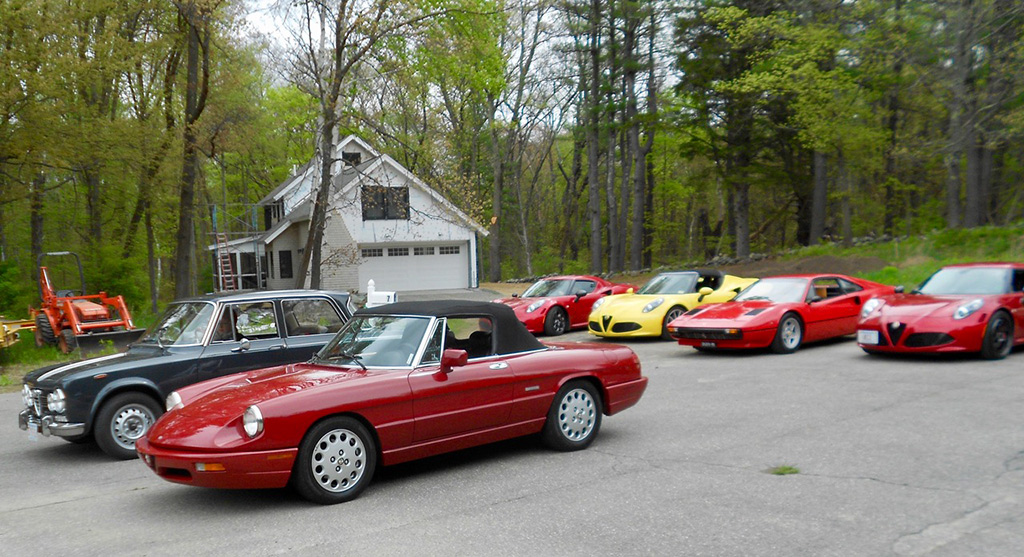 At Glynn Motorsports: The First Alfa Romeo (AONE) and Ferrari (FCA) Joint Event A huge turnout of classic Alfa Romeos and Ferraris headed for Glynn Motorsports (GMS) for its annual open house last Saturday. As cars continued to roll in and out, I lost count at around 40. Despite threatening weather, over 90% of those attending brought their vintage and modern Italian wheels. While a significant group of Alfa 4Cs in red and yellow represented the Alfa Romeo USA rebirth, most cars were over 10 years old. Unfortunately, the Giulia rebirth did not reach us. One interesting aspect of this event is that every year there is a different spectrum of cars. Last year, as is often the case, many Giuliettas were present, while this year Duettos and 1970s GTVs took their place. The Duettos may have won the "greatest presence" award, with 5 (if the one on the lift is included). Then, throw in a Giulia Super, a Nuova Giulia 1300, a pod of Milanos, a 164, and post-Duetto spiders. This year, we had the good fortune to be joined by a flock of Ferraris, including a 456 GT, 330 GT, 460 Spider, and euro 308. Veteran and new (Remko Breuker, Manchester, MA) club members came from as far away as Lenox, MA (Jeff Greenfield in his 4C), Gary Hoyt from the Fall River area in his wonderful Giulia Super, and Giulietta racer Roger Cassin. Fran O'Connor (with roughly 40 years in AONE) also came in his competizione red 4C, while Gene Durso brought his eye-poppingly attractive yellow 4C. Several early 1970s era GTVs were present, including the attractive burgundy flavored ones of Greg Stidsen and Paul Leone (amaranto rosso or close to it). We were also glad to have one of the chief mechanics (Chris Hammond) at Paul Russell & Co. bring his white Duetto. Tom Lesko, Jim Miga, and I reminisced about the tradition that GMS has in bringing Italian car enthusiasts together over the years. An extra benefit was having a small group of Ferraris from different decades. A 1960s era 330 GT (David Michael), a euro 308 GTB (Gino Evangelista) made about 20 years later, a 1990s era 456 GT (very brief appearance), and a relatively modern and curvaceous 360 Spider (John Kenney). Contrary to what one might expect, the Alfas did not seem out of place with their more powerful big brothers side-by-side. Even more wonderful, both Alfisti and Ferraristi shared common admiration of their Italian hardware and common origin (Enzo first directed Alfa Romeo race teams, before heading out on his own to add a few more cylinders ... well, more than a few, to be more accurate). All of us wish to indicate our appreciation to GMS for hosting the event and impressing everyone with its knowledge of and dedication to Italian sports cars, including engine rebuilds of both Alfas and Maseratis in Paul Glynn's "engine room". True to its mission, Michael Wrigley even did a repair on a Giulia, which apparently developed a leak (?) while being driven to the event. As every year, Paul held court in the engine room, with stories of 50 years of his own Alfa ownership, service, and racing experience, from the Trans-Am era to the present, in which he and Roger Cassin duke it out in their Giuliettas. Perhaps, one of the most memorable GMS events ever, and definitely the best event ever on a very overcast day, in which yellow, red, burgundy, silver and blue Italian cars made the gray go away (and some other colors as well). Thanks again to Paul and Michael. (Mea culpa if I left out some names of those who attended, but the turnout was huge.) [And thanks very much, Tom, for putting it all together again! — Ed.] |
