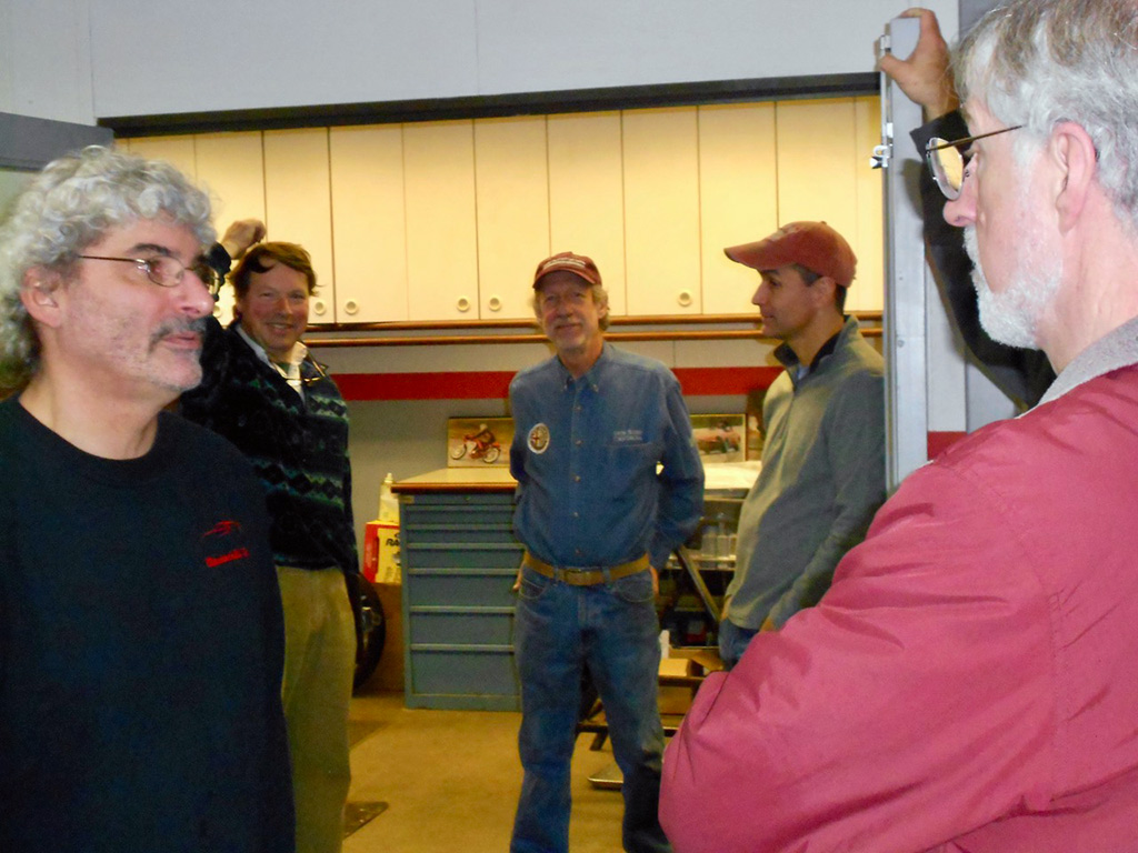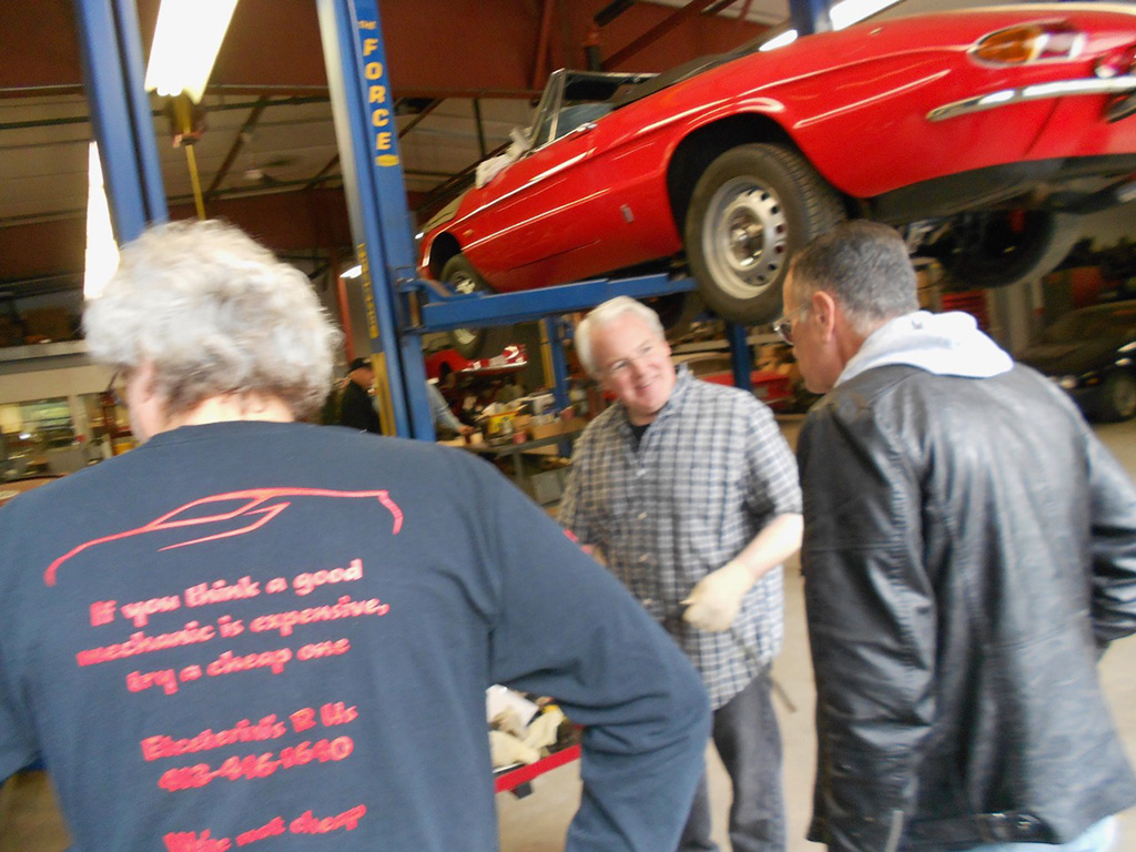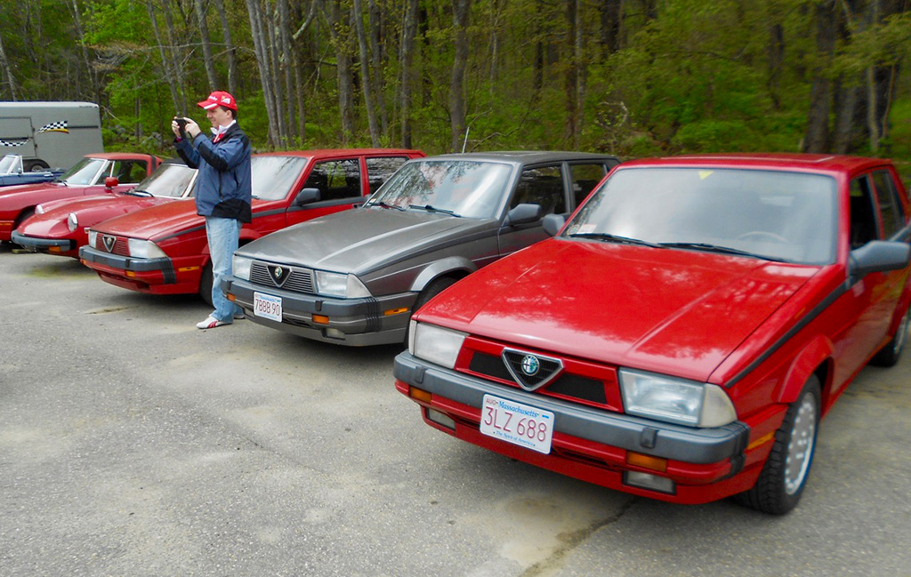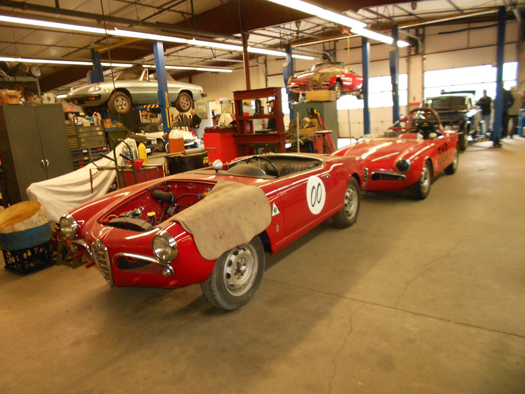 At Glynn Motorsports: The First Alfa Romeo (AONE) and Ferrari (FCA) Joint Event A huge turnout of classic Alfa Romeos and Ferraris headed for Glynn Motorsports (GMS) for its annual open house last Saturday. As cars continued to roll in and out, I lost count at around 40. Despite threatening weather, over 90% of those attending brought their vintage and modern Italian wheels. While a significant group of Alfa 4Cs in red and yellow represented the Alfa Romeo USA rebirth, most cars were over 10 years old. Unfortunately, the Giulia rebirth did not reach us. One interesting aspect of this event is that every year there is a different spectrum of cars. Last year, as is often the case, many Giuliettas were present, while this year Duettos and 1970s GTVs took their place. The Duettos may have won the "greatest presence" award, with 5 (if the one on the lift is included). Then, throw in a Giulia Super, a Nuova Giulia 1300, a pod of Milanos, a 164, and post-Duetto spiders. This year, we had the good fortune to be joined by a flock of Ferraris, including a 456 GT, 330 GT, 460 Spider, and euro 308. Veteran and new (Remko Breuker, Manchester, MA) club members came from as far away as Lenox, MA (Jeff Greenfield in his 4C), Gary Hoyt from the Fall River area in his wonderful Giulia Super, and Giulietta racer Roger Cassin. Fran O'Connor (with roughly 40 years in AONE) also came in his competizione red 4C, while Gene Durso brought his eye-poppingly attractive yellow 4C. Several early 1970s era GTVs were present, including the attractive burgundy flavored ones of Greg Stidsen and Paul Leone (amaranto rosso or close to it). We were also glad to have one of the chief mechanics (Chris Hammond) at Paul Russell & Co. bring his white Duetto. Tom Lesko, Jim Miga, and I reminisced about the tradition that GMS has in bringing Italian car enthusiasts together over the years. An extra benefit was having a small group of Ferraris from different decades. A 1960s era 330 GT (David Michael), a euro 308 GTB (Gino Evangelista) made about 20 years later, a 1990s era 456 GT (very brief appearance), and a relatively modern and curvaceous 360 Spider (John Kenney). Contrary to what one might expect, the Alfas did not seem out of place with their more powerful big brothers side-by-side. Even more wonderful, both Alfisti and Ferraristi shared common admiration of their Italian hardware and common origin (Enzo first directed Alfa Romeo race teams, before heading out on his own to add a few more cylinders ... well, more than a few, to be more accurate). All of us wish to indicate our appreciation to GMS for hosting the event and impressing everyone with its knowledge of and dedication to Italian sports cars, including engine rebuilds of both Alfas and Maseratis in Paul Glynn's "engine room". True to its mission, Michael Wrigley even did a repair on a Giulia, which apparently developed a leak (?) while being driven to the event. As every year, Paul held court in the engine room, with stories of 50 years of his own Alfa ownership, service, and racing experience, from the Trans-Am era to the present, in which he and Roger Cassin duke it out in their Giuliettas. Perhaps, one of the most memorable GMS events ever, and definitely the best event ever on a very overcast day, in which yellow, red, burgundy, silver and blue Italian cars made the gray go away (and some other colors as well). Thanks again to Paul and Michael. (Mea culpa if I left out some names of those who attended, but the turnout was huge.) [And thanks very much, Tom, for putting it all together again! — Ed.] |