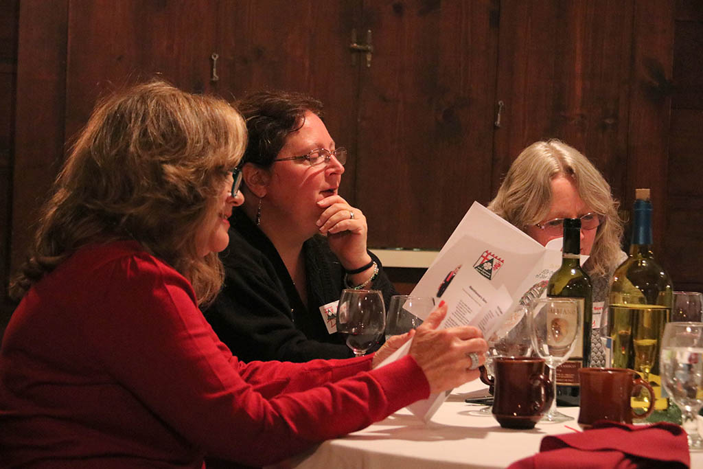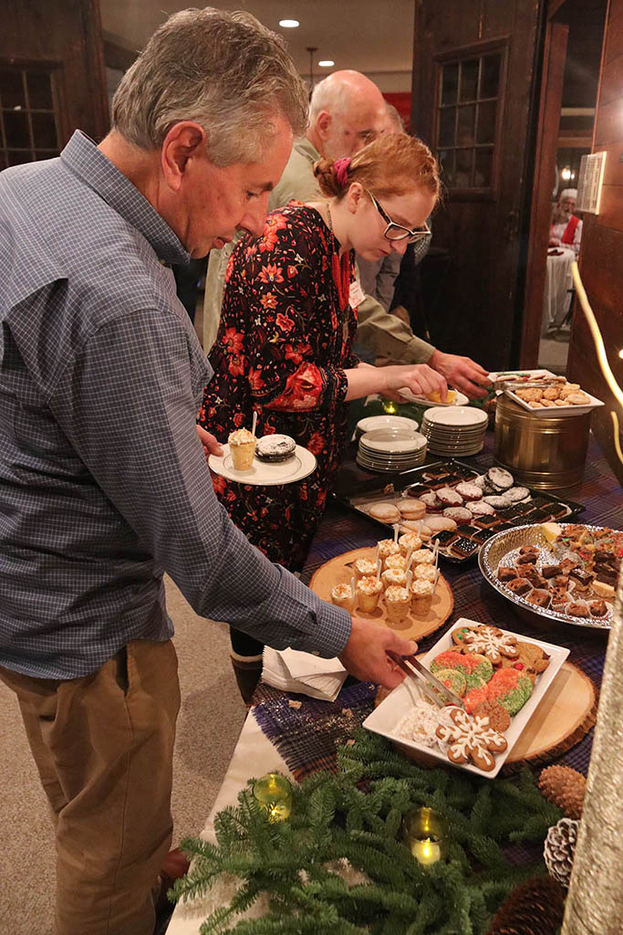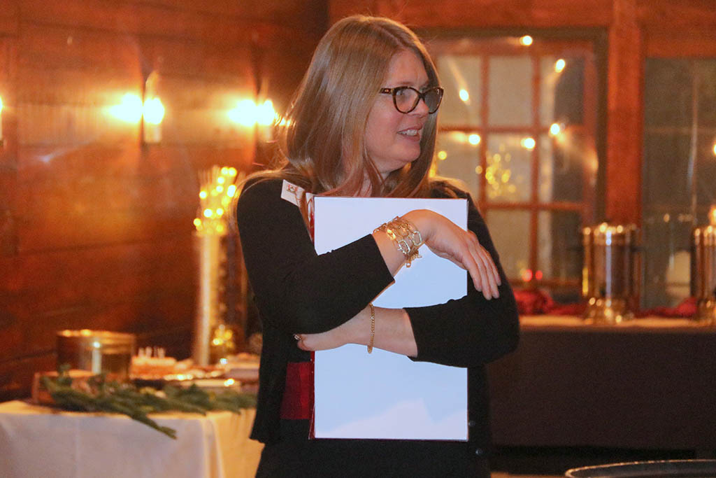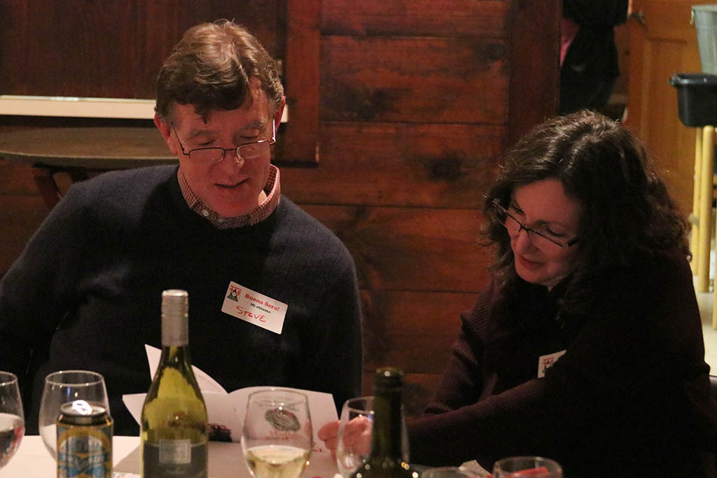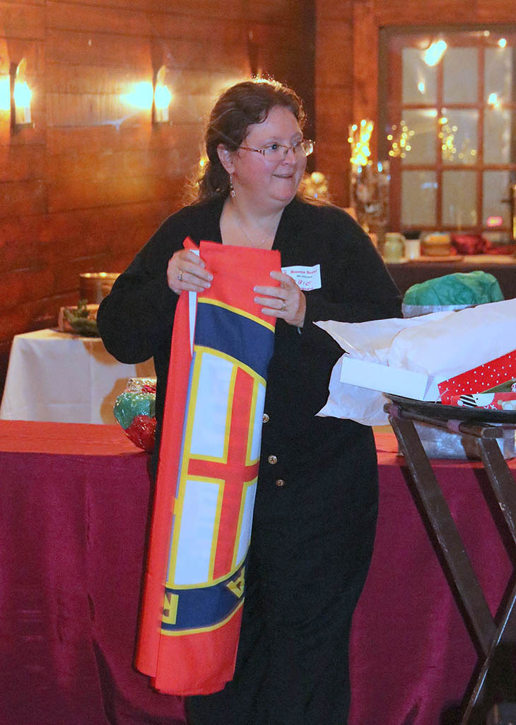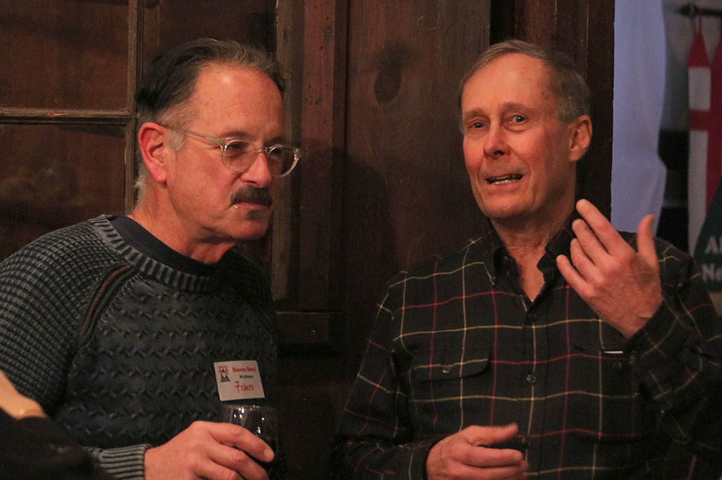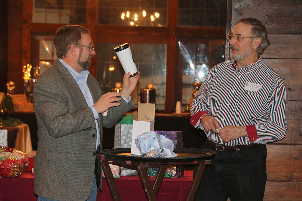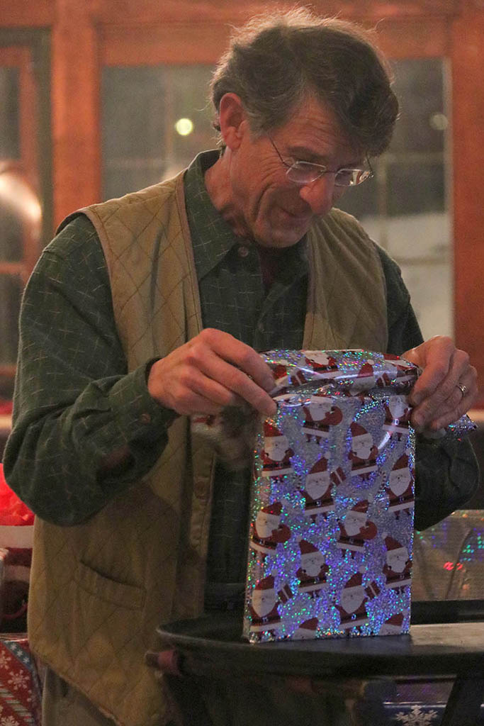 It was a little touch-and-go, but we managed to pull off another one of our fine, fun AONE Holiday Parties at the Josiah Smith Tavern in Weston, MA, on Saturday, December 9th. Mother Nature was in an uncooperative mood, dumping on us the season's first significant snowstorm, which fell throughout the entire day of our gathering, leaving the area with about 6" of the stuff and making for some challenging driving conditions coming and going. Unfazed, however, we had not a single cancellation due to the weather! And that included people coming from Rhode Island, New Hampshire, and even Steve Bellantone down from Maine! (I suppose they're more used to it up there.) Around forty of us drifted inside the Tavern, where Tastings Caterers had everything waiting for us. In addition to a "stationary table" loaded with appetizers, the capable wait staff wandered among us offering their delectable hors d'oeuvres. We'd brought along our various beverages, which we uncorked and uncapped, and proceeded to enjoy the food, drink and each other's company. As a backdrop, Tom Lesko had prepared a free-running slide presentation displaying photos from all of our AONE events of the past year, accompanied by some holiday background music. We were happy to have back in our midst two couples who'd been with us in the past but had gone Alfaless in recent years. Steve & Ellen Silverstein recently acquired the very same Duetto that Steve had ogled out the window of the school bus that took him to junior high back in Tennessee! Bruce & Jane Murray once had 164s and are now seriously considering a new Giulia (if we can just convince Jane about the merits of the paddle-shift transmission). In due course, the main buffet was announced as ready for us, so we all queued up, grabbed plates, and eagerly partook. Tastings once again provided us with their excellent cuisine and didn't disappoint! We were all seated around five large tables, and, judging from the decibel level of the boisterous chatter, it was easy to tell what a great time everyone was having. As people were finishing off their delectable desserts, it was time to get down to "business". The crowd groaned as I went around the room handing out copies of the Official AONE Holiday Songbook, because it meant that they'd be coerced into the sing-along of corrupted Alfa-centric Xmas tunes that I've foisted on them in previous years. We made it through a few songs before tossing the booklets aside and moving on to better things. Namely, the start of the Yankee gift swap! It's always a ton of fun, and this year's was no exception. Our suggestion that we limit the number of bottles of wine and Limoncello seemed to have had a positive effect, as we had a wide assortment of fun and interesting gifts get opened (and swapped)! If you look through the photos, you'll get an idea of the variety of interesting items that found new homes. (By the way, I think you'll agree that Adrien Sipos, who took almost all of the photos during the evening, does a most outstanding job — she really caught the party's spirit!) Our thanks go once again to Tom Lesko for making all of the arrangements for our popular annual holiday bash! (Well, he did sort of screw up the weather.) 'Twas a really outstanding event ... 2017 Holiday Party Revelers |