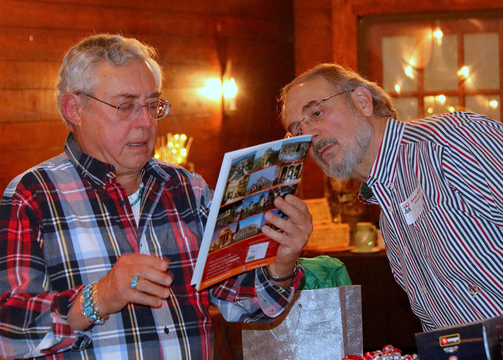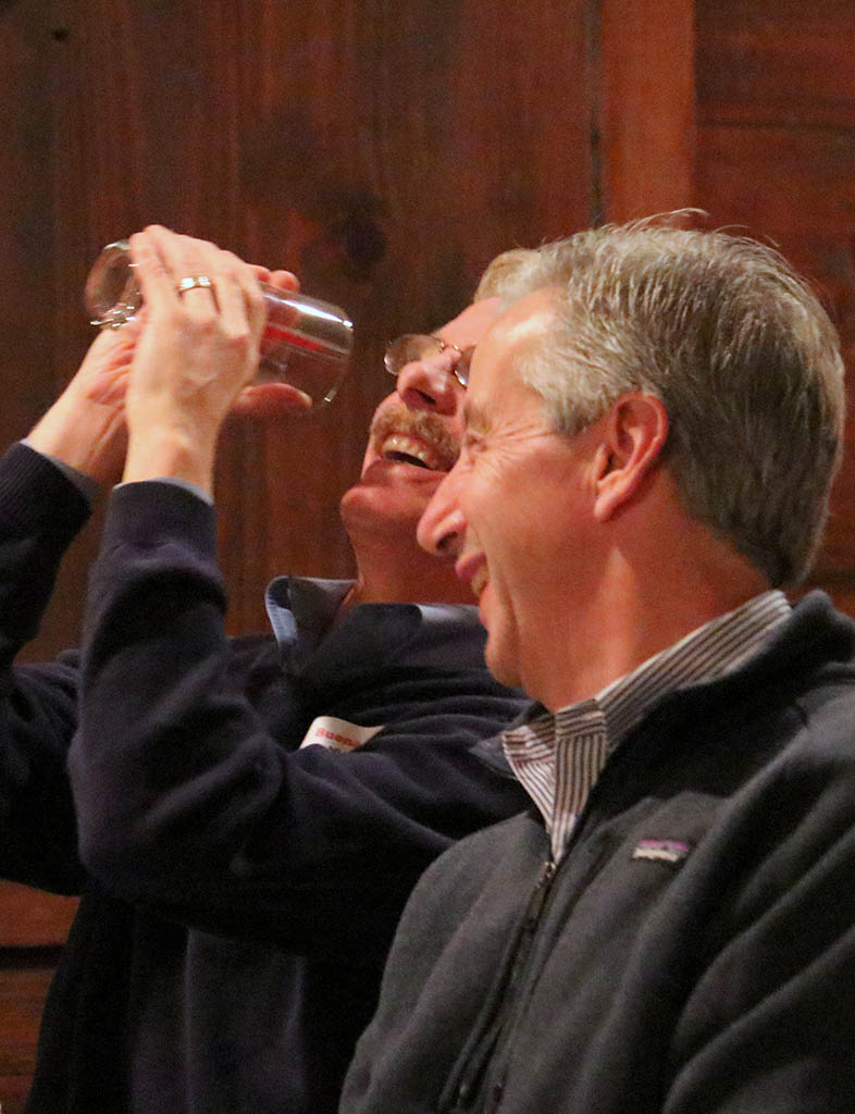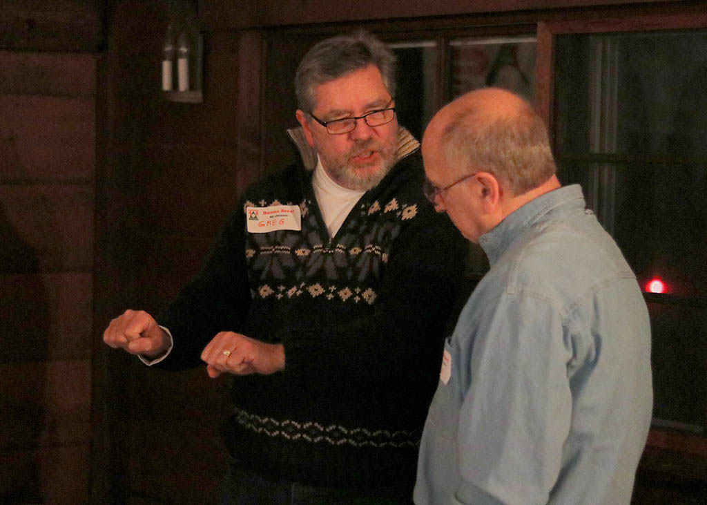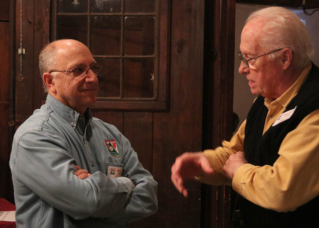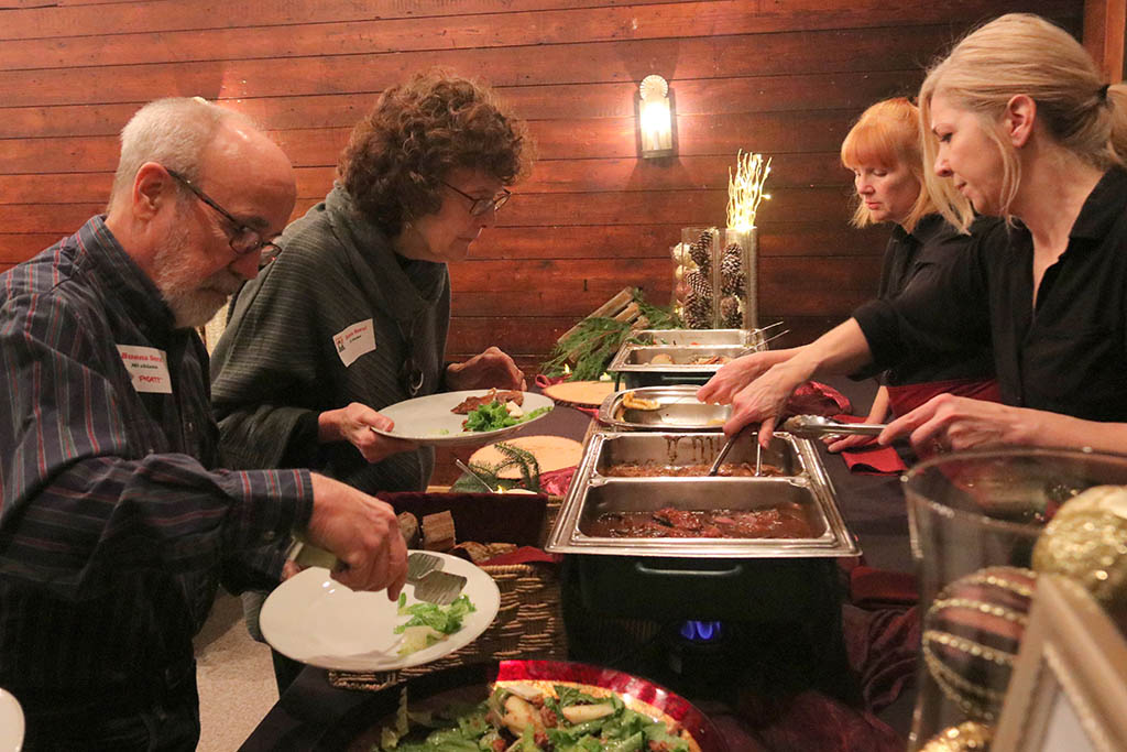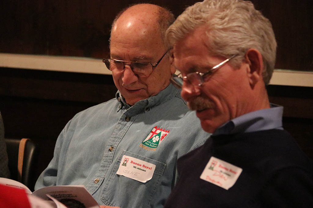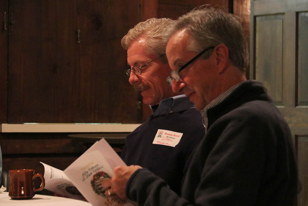 It was a little touch-and-go, but we managed to pull off another one of our fine, fun AONE Holiday Parties at the Josiah Smith Tavern in Weston, MA, on Saturday, December 9th. Mother Nature was in an uncooperative mood, dumping on us the season's first significant snowstorm, which fell throughout the entire day of our gathering, leaving the area with about 6" of the stuff and making for some challenging driving conditions coming and going. Unfazed, however, we had not a single cancellation due to the weather! And that included people coming from Rhode Island, New Hampshire, and even Steve Bellantone down from Maine! (I suppose they're more used to it up there.) Around forty of us drifted inside the Tavern, where Tastings Caterers had everything waiting for us. In addition to a "stationary table" loaded with appetizers, the capable wait staff wandered among us offering their delectable hors d'oeuvres. We'd brought along our various beverages, which we uncorked and uncapped, and proceeded to enjoy the food, drink and each other's company. As a backdrop, Tom Lesko had prepared a free-running slide presentation displaying photos from all of our AONE events of the past year, accompanied by some holiday background music. We were happy to have back in our midst two couples who'd been with us in the past but had gone Alfaless in recent years. Steve & Ellen Silverstein recently acquired the very same Duetto that Steve had ogled out the window of the school bus that took him to junior high back in Tennessee! Bruce & Jane Murray once had 164s and are now seriously considering a new Giulia (if we can just convince Jane about the merits of the paddle-shift transmission). In due course, the main buffet was announced as ready for us, so we all queued up, grabbed plates, and eagerly partook. Tastings once again provided us with their excellent cuisine and didn't disappoint! We were all seated around five large tables, and, judging from the decibel level of the boisterous chatter, it was easy to tell what a great time everyone was having. As people were finishing off their delectable desserts, it was time to get down to "business". The crowd groaned as I went around the room handing out copies of the Official AONE Holiday Songbook, because it meant that they'd be coerced into the sing-along of corrupted Alfa-centric Xmas tunes that I've foisted on them in previous years. We made it through a few songs before tossing the booklets aside and moving on to better things. Namely, the start of the Yankee gift swap! It's always a ton of fun, and this year's was no exception. Our suggestion that we limit the number of bottles of wine and Limoncello seemed to have had a positive effect, as we had a wide assortment of fun and interesting gifts get opened (and swapped)! If you look through the photos, you'll get an idea of the variety of interesting items that found new homes. (By the way, I think you'll agree that Adrien Sipos, who took almost all of the photos during the evening, does a most outstanding job — she really caught the party's spirit!) Our thanks go once again to Tom Lesko for making all of the arrangements for our popular annual holiday bash! (Well, he did sort of screw up the weather.) 'Twas a really outstanding event ... 2017 Holiday Party Revelers |