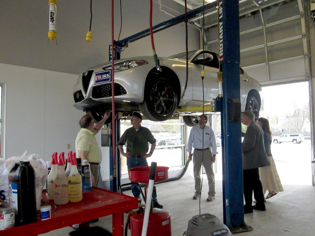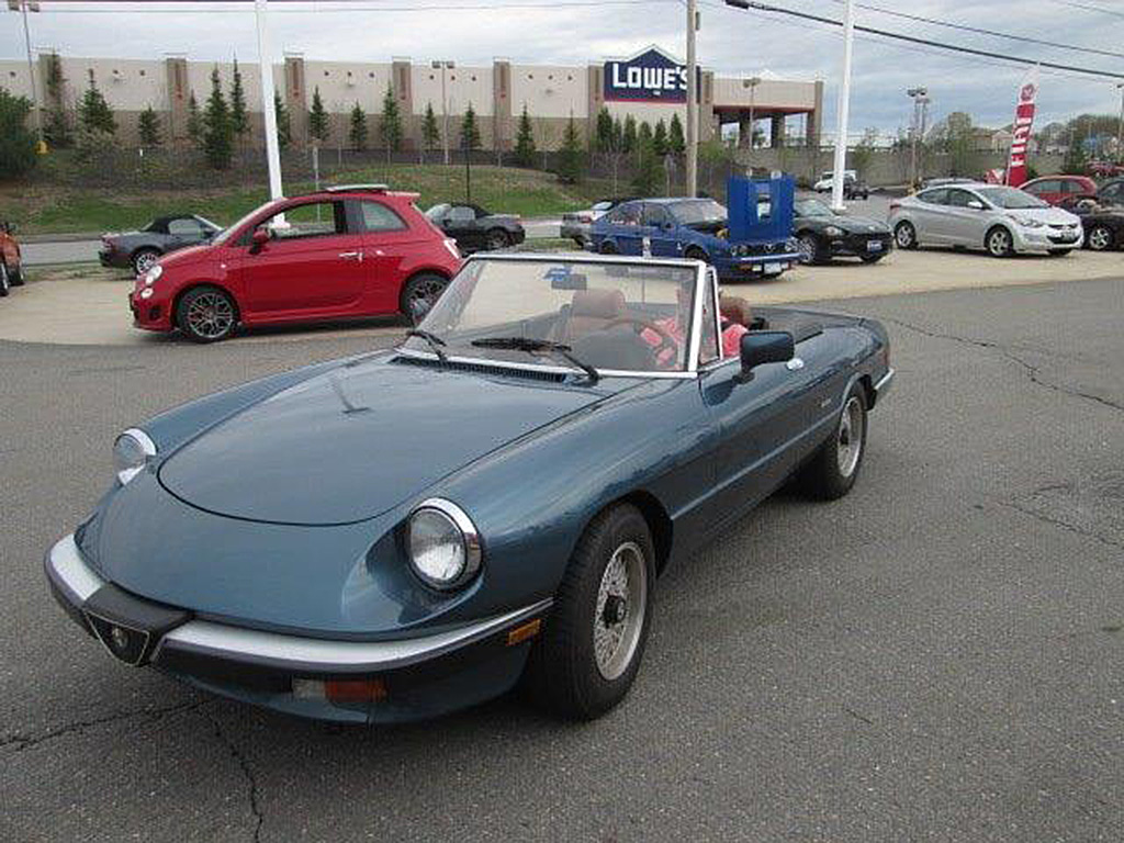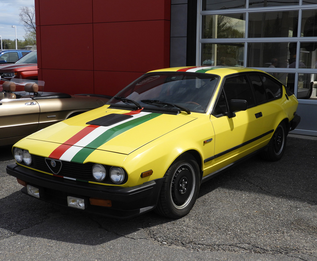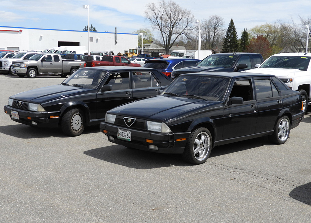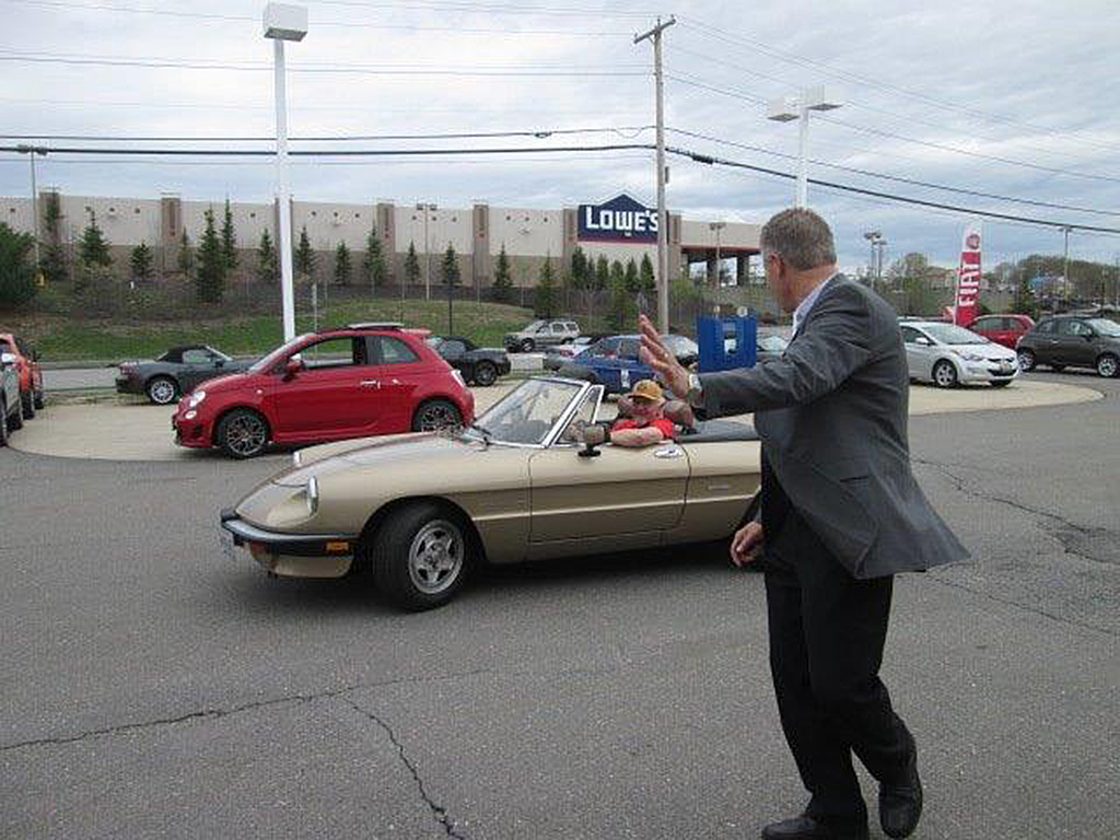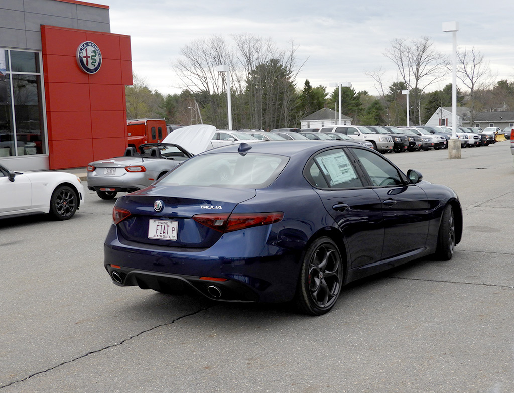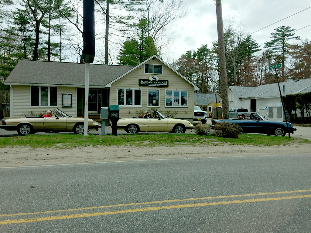 We all hung around outside in the lot and inside the showroom and service bays for a couple of hours or more, chatting and admiring all of the new and old Alfa Romeos on hand. The dealership staff members were all very friendly and accommodating, and they had set up lots of goodies to eat and beverages to slake our thirsts. It looked like they enjoyed seeing our old Alfas as much as we enjoyed seeing their new ones! Those of us who wanted to take new Giulias for test drives got to do so. As a recent, highly satisfied purchaser of one myself, I'm sure that they enjoyed the rides. As far as we know, the test drive Giulias were all returned unharmed ...... Around 1:30 or so, we all gathered for a group photo, and then some of us hopped in our Alfas for a drive out in the country that was planned and led by Portland AONEr Sam Surprise. We headed northwest out of town and did a fun romp all the way around Sebago Lake. 'Twas a pleasant way to wind up a pleasant day. While it's always nice to look at Alfas and talk about them, driving them is what it's all about! Our thanks go out to several people for making the event a success! First, of course, to Alfa Romeo and Fiat of Portland for hosting the gathering. Then to Bill Anderson of AONE for getting the ball rolling. And finally to Sam Surprise for picking up the ball, making the arrangements with the dealership, and pulling off the apres-launch drive. Well done, everybody! |