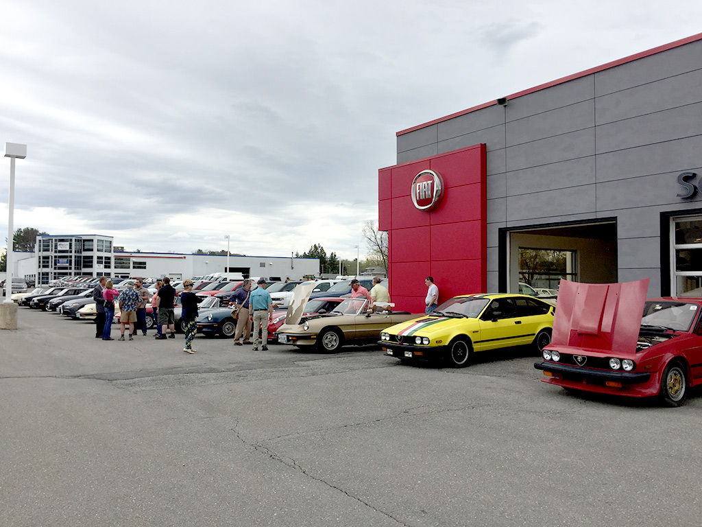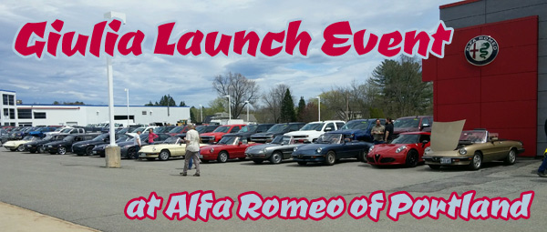 By Dave Pratt The AONE northern outpost came out in strong numbers for the Alfa Romeo and Fiat of Portland Giulia Launch Event that was held on Saturday, April 29th. The weather could not have been better (mostly sunny, temp in the upper 70s), which may have contributed a wee bit to the excellent turnout of at least 15 AONE member-owned Alfas of vintages that spanned exactly 50 years (Duetto through new Giulia)!