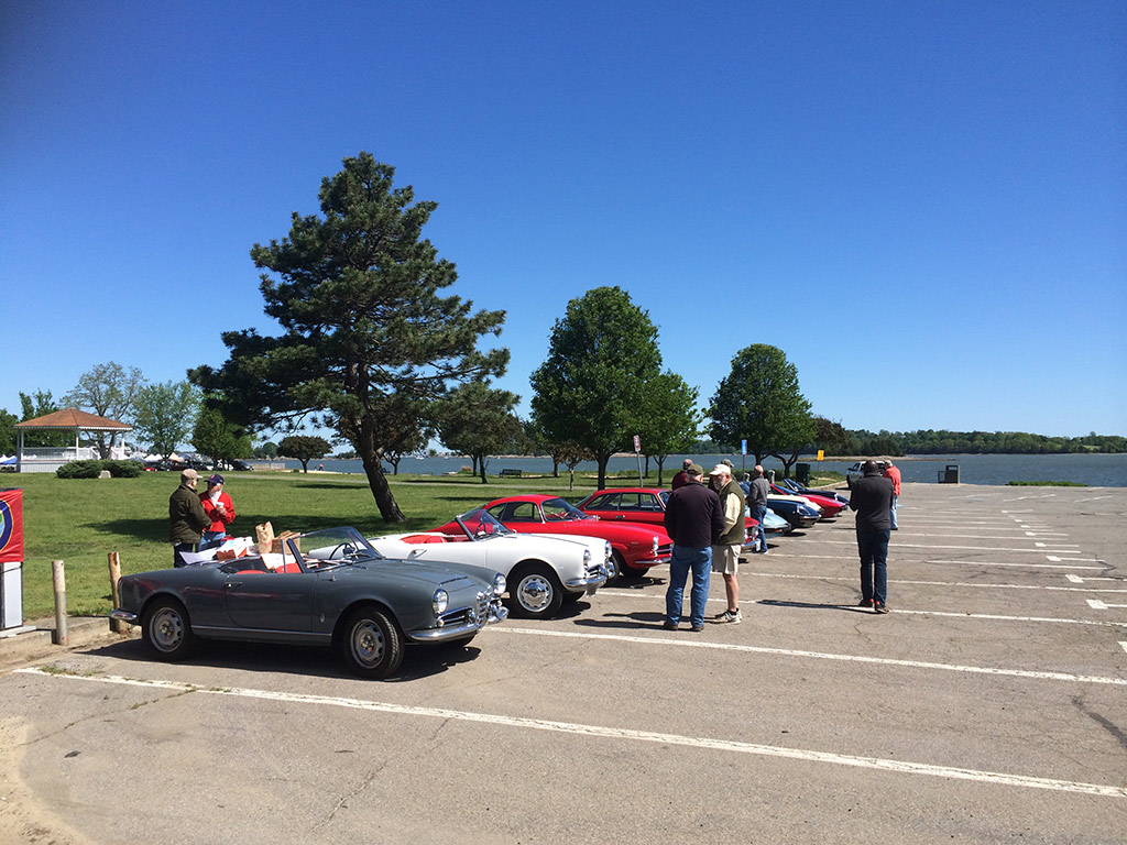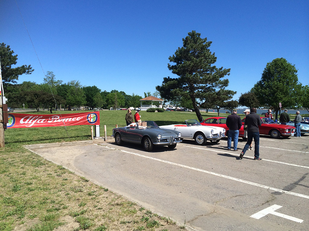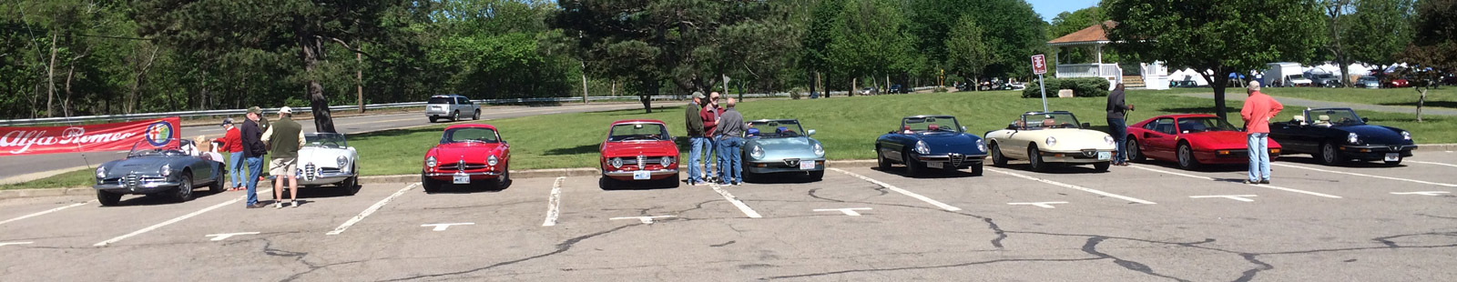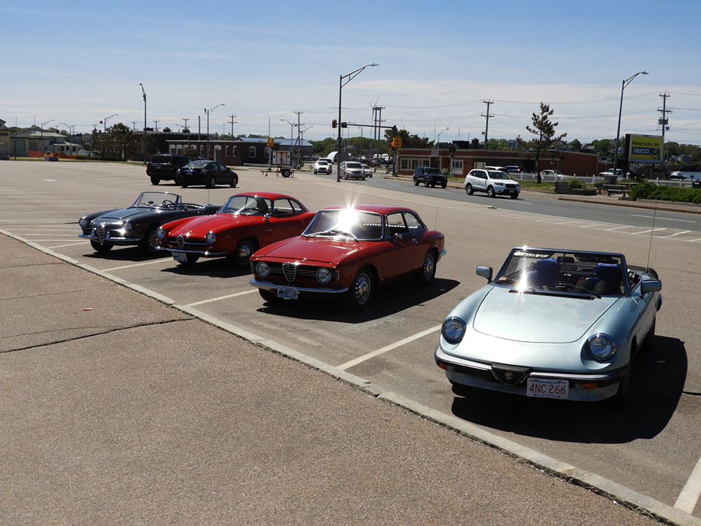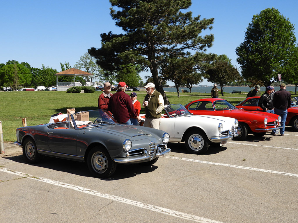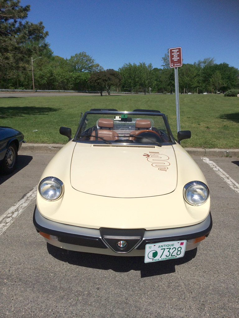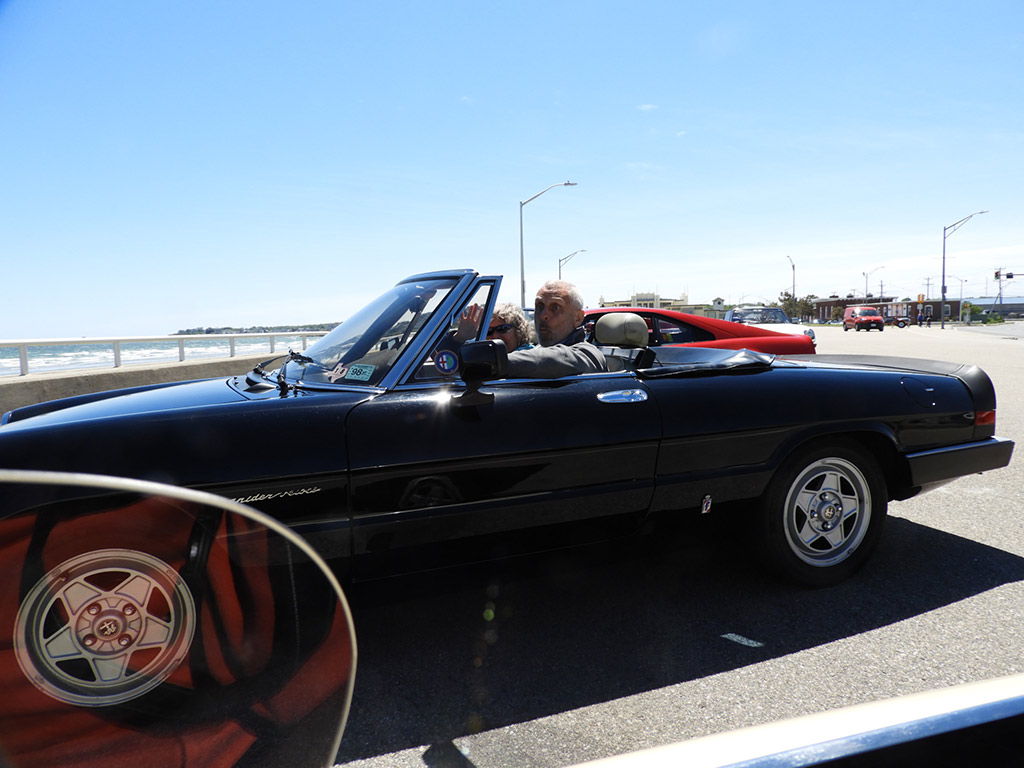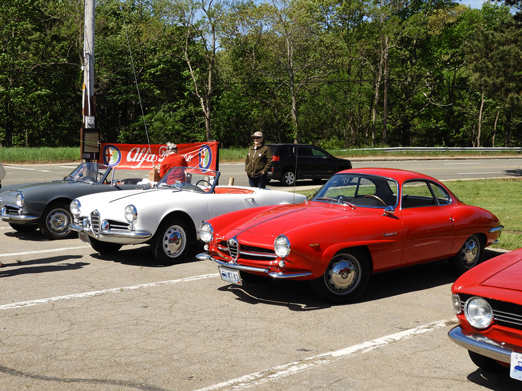 By Tom Lesko I began the South Shore Beach and Waterfront Tour 11 years ago and it is still a beautiful drive in beautiful Alfas in beautiful, spring weather — still such a great day. We were joined by Spiders older and newer, a GT and GTV, a Sprint Speciale, and a Ferarri. Ten cars in all and fourteen members. After our traditional meet-and-greet, coffee, and munchkins, I handed out color maps with the day's route indicated in light Alfa red. Similar to past years, our tour included a swing around Hingham Harbor, Crow Point, and the Hingham Yacht Club, and then on to Nantasket Beach for an ocean view and "pause for the cause" at the local Dunkin Donuts. From there, it was a short drive to the summit of the Hull cemetery for a nearly-360º view (a view to die for ;-) of the beaches, islands, and bays of the South Shore — fantastic! Continuing on to the end of the Hull peninsula and "Hull Gut", we circled back and took a short side trip out to Spinnaker Island in Hingham Bay to see the remains of the early 20th century "Fort Duvall" coast artillery placement of two 16" guns strategically located to protect the coast. The guns are long gone, and condominium units have replaced them on the old fort's foundations. Then it was on to the "gold coast" of Cohasset, where the ocean views and beautiful homes were in their usual visual splendor. The Minot Lighthouse overview was our next stop after a nice, twisty stretch that allowed us to exercise our engines a bit. We then toured back over the spectacular roadways of Cohasset and went to Jake's Seafood Restaurant at Steamboat Wharf in Nantasket for a wonderful lunch and conversation. A good time was had by all — looking forward to our next AONE event — see you there! Tom Lesko - 1965 Giulia Spider Veloce ("Grumpy")
