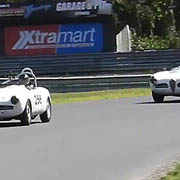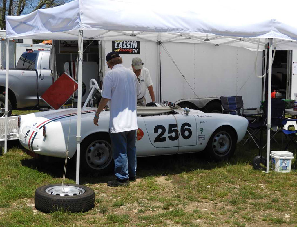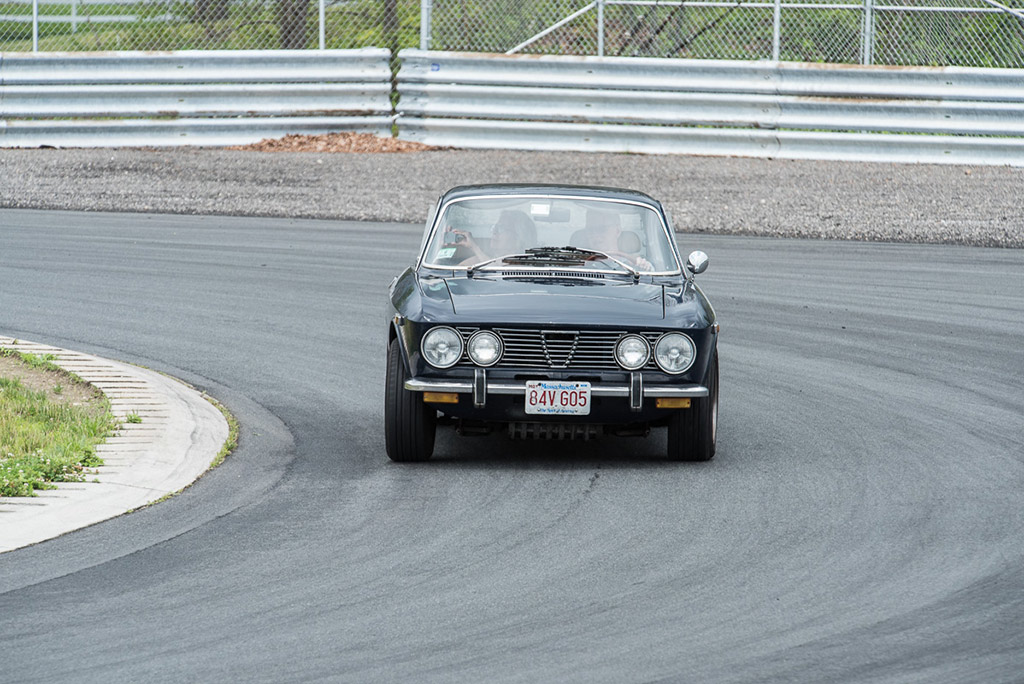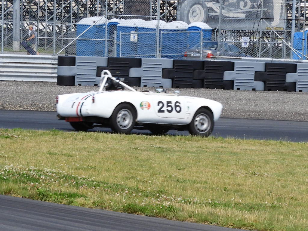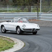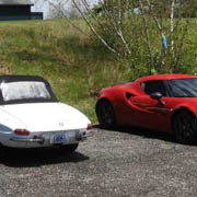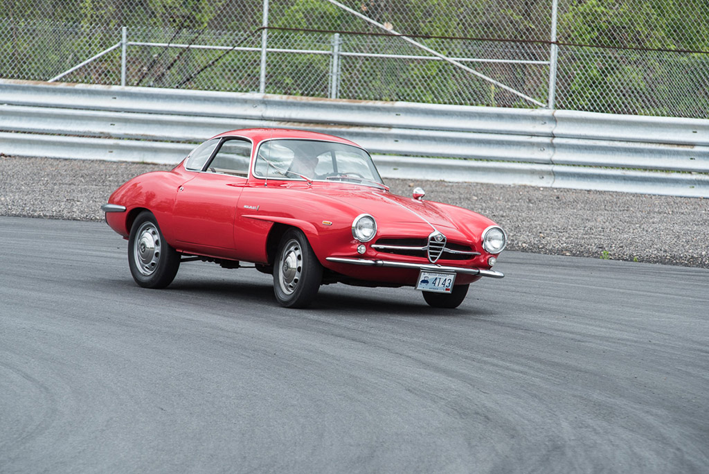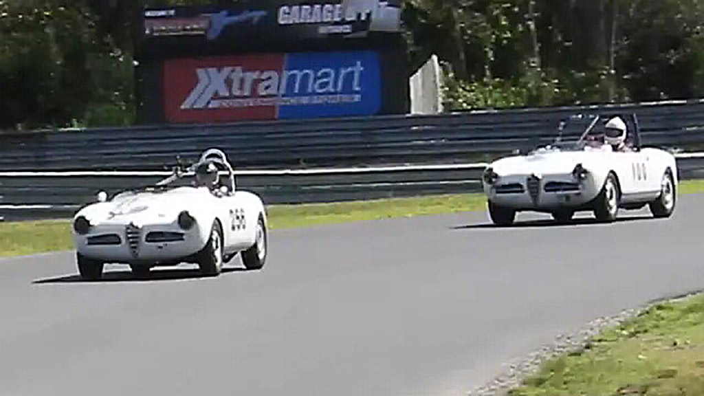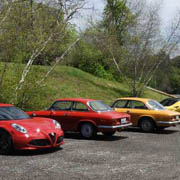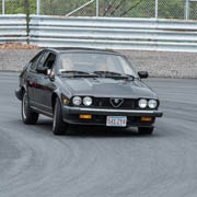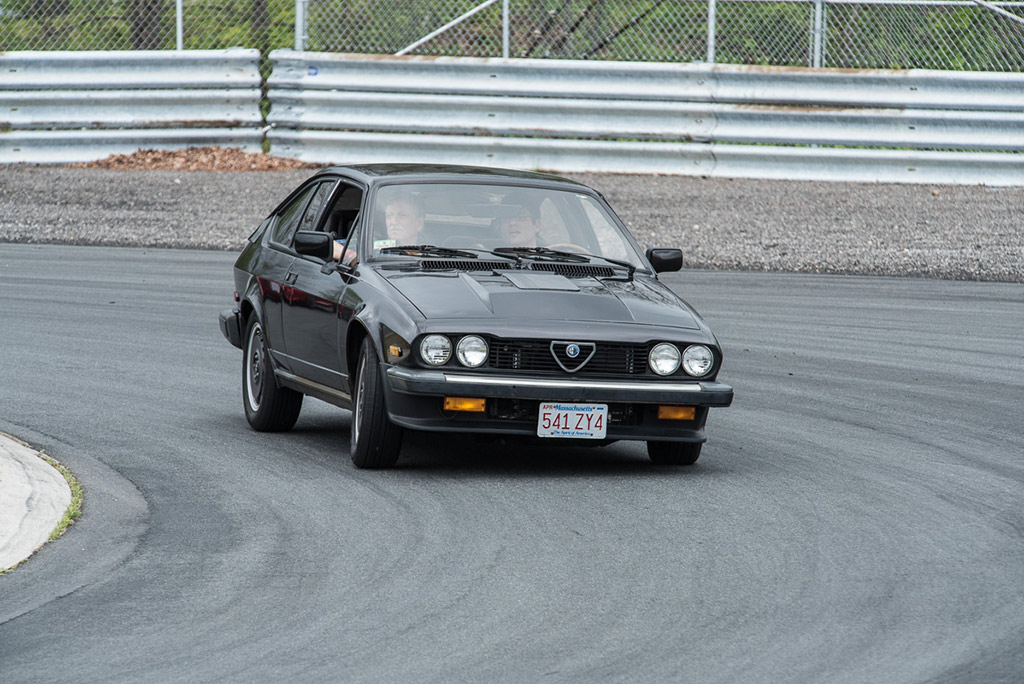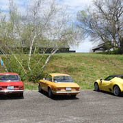 The fourth annual Thompson Motorsports Vintage Weekend and Alfa Romeo Corral greeted fans and racers alike with some early-morning damp and rainy conditions. As the racers guided their wonderful (and fragile) machines around the damp track, the Alfista faithful wandered in with tops up and sunroofs closed. Fortunately, late morning saw clearing skies and warm temperatures! Although I have been following vintage racing for some 48 years (I saw my first Alfa at Thompson in the summer of 1968), I found the racing quite confusing! As always, there were mixed classes running together, but there were some races that included a selection of cars, while many (but not all) of those same cars ran in another race. My conclusion is that this had something to do with the dual sanctioning, but I'm definitely not certain. A suggestion was made to the folks at Thompson to ask the vintage clubs to offer a basic fan guide for future events. During the track workers' lunch break, we were treated to several laps around the track. Remember what I said earlier about sunny skies? Well, about three laps into the parade laps the sky opened up in a very big way! Although some tops were rapidly lifted, a particular 4C Spider owner found out that his modern targa roof does not go up as quickly as his old spider top (right, Gene)? As I looked across the track at Jim and Patti DeWaele's impressive lunch spread, I witnessed lightning reflexes as everything was scooped up and safely stored in the trusty Subaru! With the rain disappearing as quickly as it came, the grill was fired up and Jim and Patti treated everyone to a wonderful lunch — hotdogs, burgers and sausage with all the fixin's, including peppers and fried onions, topped off with a scrumptious salad from Nancy Perry! As lunch wrapped up, the racing resumed. Alfa racer Roger Cassin generously set up a canopy to give us some much-needed shade as the caterpillars did quite a job on the speedway's trees (by the way, nice drives, Roger!). All in all, it was a great day — Alfas, race cars, great food and, as always, wonderful camaraderie! See you next year! [Hats off to Gene Durso, John and Jim DeWaele, Tom Letourneau, Dan Donovan, and the other AONErs who did such a splendid job organizing the Alfa Car Corral! —Ed.] Alfa Car Corral Participants Peter Lombardo - 4C