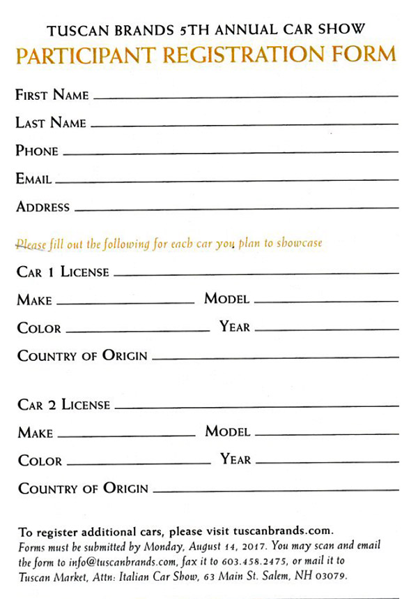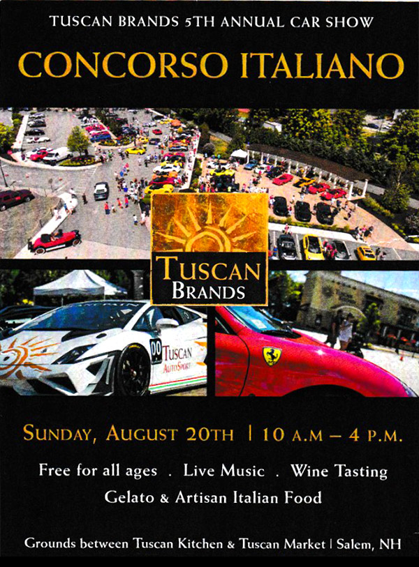 Tuscan Brands is holding its 5th annual Concorso Italiano Car Show in Salem, NH, on Sunday, August 20th. Click here to visit the Tuscan Brands website, and click here to download complete event info and sign-up form as a printable PDF file. Note the registration deadline of August 14th (although it may not be too strict). We've not heard of this one before — could be a fun and interesting time!