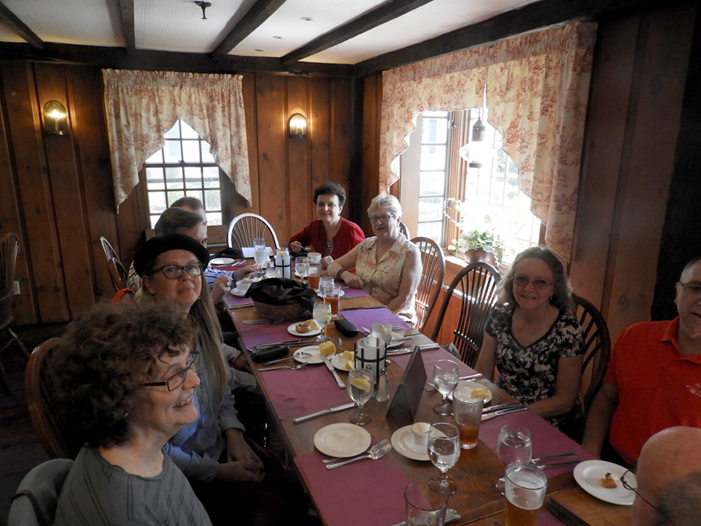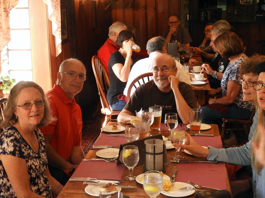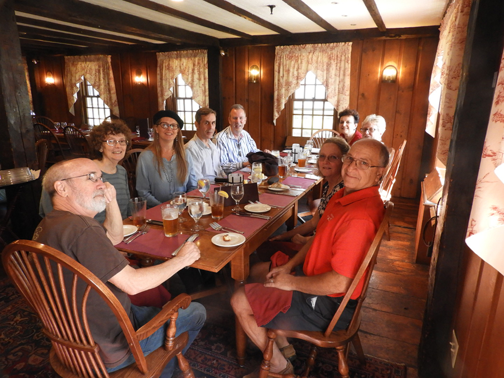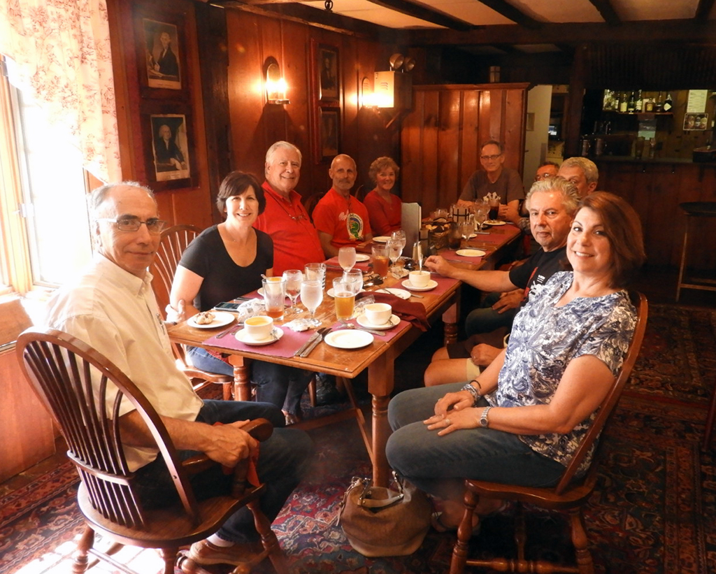 All too soon the driving fun came to an end in Sturbridge, at the Publick House. There was a big parking lot with lots of uninteresting cars, but we found an area where we could line ourselves up all together. I parked at the left end of our line, since "Abarth" comes before "Alfa" in alphabetical order. Our drivers and passengers all went inside the Publick House for an hour or two. Then they came out one-by-one or in small groups and gradually drove off in their cars. But we had enough time to say good-bye and to express the hope that we'd all get to tour together again soon.