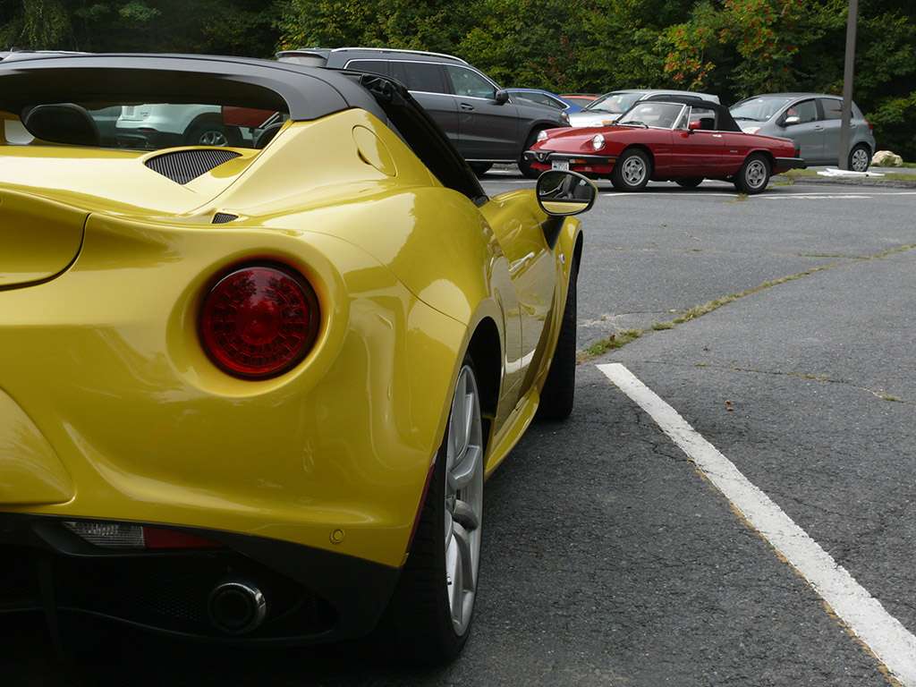 I was really grateful to the 4C for standing up for me, and I regretted that we didn't get to travel next to each other; the 4C had to "ride shotgun" at the back of our line of Italian beauties. But thanks to the 4C's warning, the other cars stopped sneering at me. And they began to show some real respect when I punched it a few times pulling out from a stop sign. After that we all got along nicely.