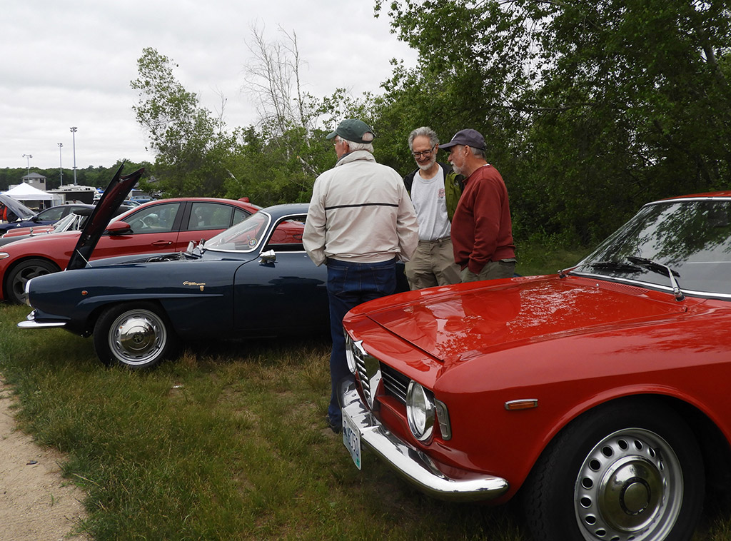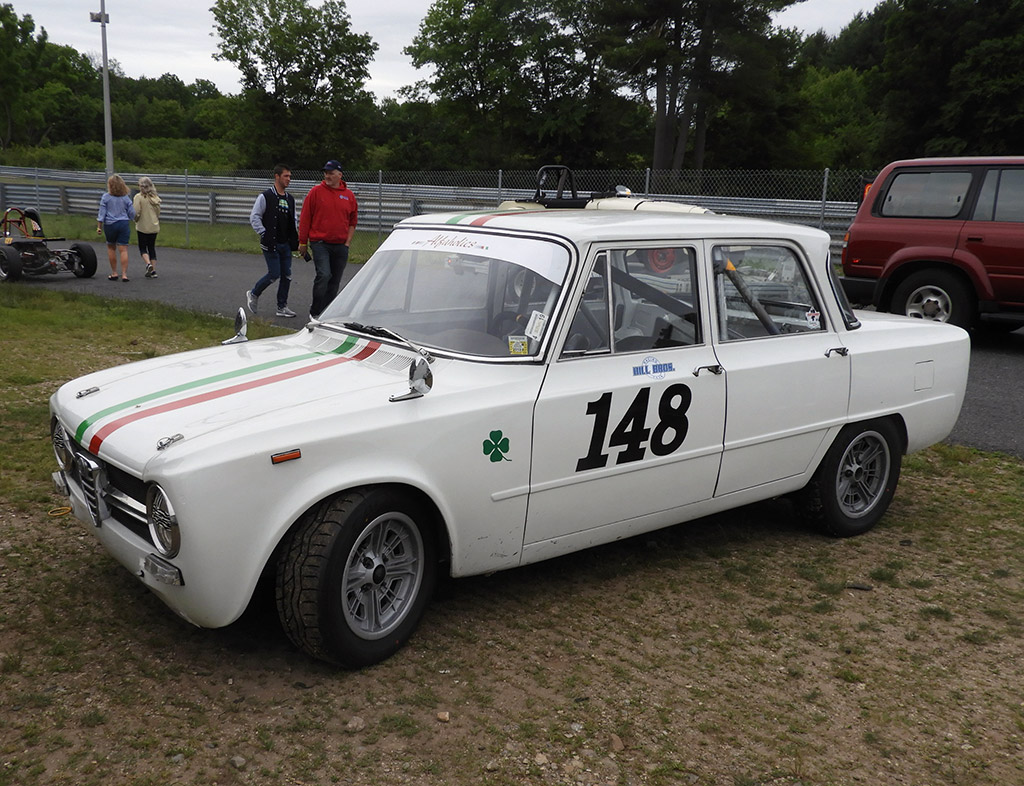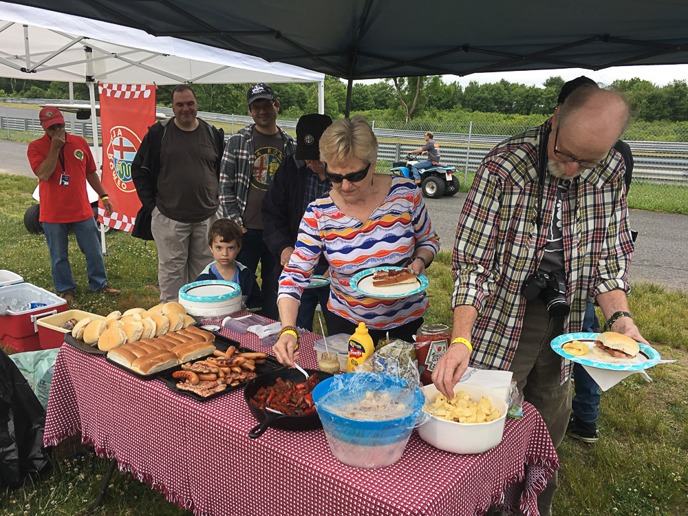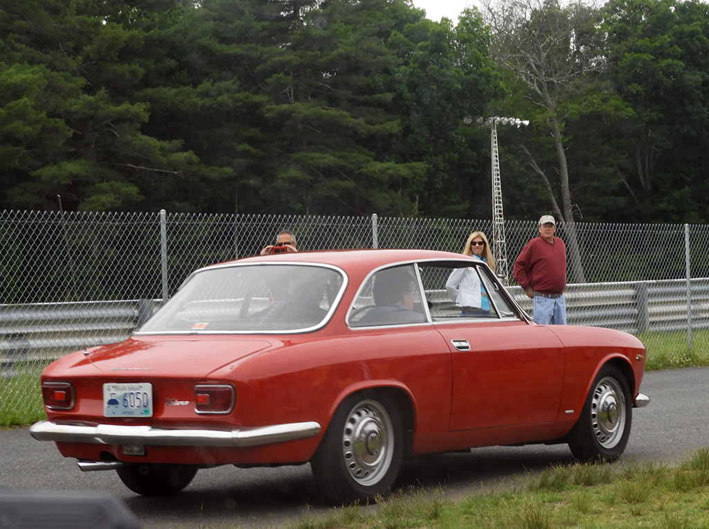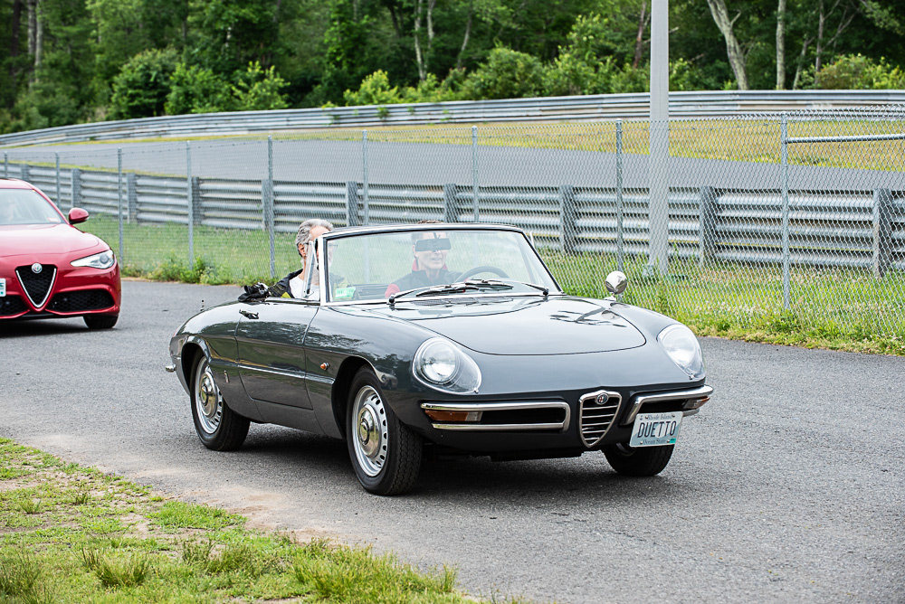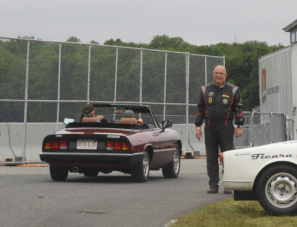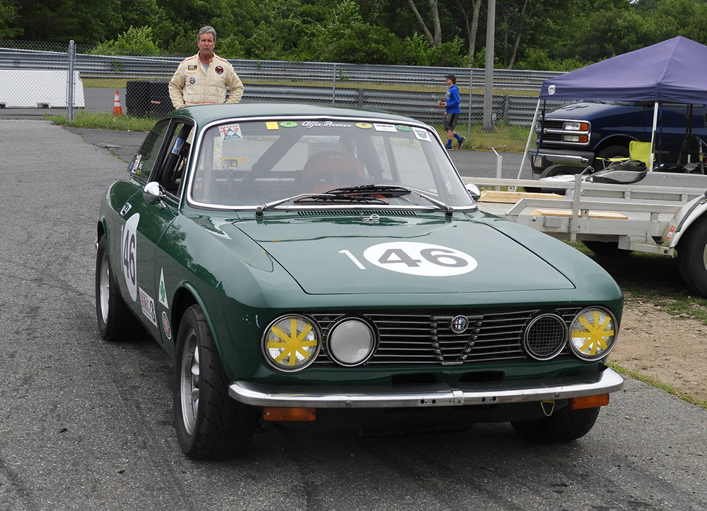Don't Be Afraid to Drive These Cars! Although the forecast was gloomy for the 5th annual Vintage Motorsports Festival, the umbrellas stayed tucked away in our trunks! We did feel the occasional raindrop toward the end of the day but, all in all, a great time was had by all! One of the great features of this particular event each year is the growing number of Alfas competing in the various classes. Members Peter Lombardo, Mike Donnelly, Roger Cassin, and Paul Glynn all showed well as usual! Thompson Speedway boasts some of the best viewing locations of any track in the US. There are great vantage points all around the track, with complimentary cart service provided by the track. Members Gene Durso, Dan Donovan, and Tom Letourneau are all part of the "12th Turn Volunteers" team. Several AONE members showed up without their Alfas due to leaving for places far and wide after the races. To our members, I say: Don't be afraid to drive these cars! Gene, Dan, Phil Duffy, and I have put many miles on our Alfas attending conventions in Maryland, Toronto, and Montreal as well as the Alfa 100th at Watkins Glen. Lauren and I put 2,200 miles on the GTV last summer going to the Montreal convention and then continuing our tour through Eastern Canada. So what if the Montreal highway projects beat up the exhaust! By the way, two great shops lent a hand with that repair along the way. Great people north of the border! By the way, a certain Connecticut Triumph club had a corral planned but cancelled when they saw the forecast. Don't be afraid to drive these cars! Continuing with their wonderful tradition of feeding the masses, Patti and Jim DeWaele (that's my little brother!), treated us all to sausage and pepper sandwiches as well as hot dogs and various treats. Lauren's secret recipe pasta salad disappeared in record time! It's great to see the new Alfas contributing to our member roster! Welcome, George Capalbo (4C Spider) and Max Schuler (new Giulia)! And it's also great to see some younger folks joining the Alfista: Van and Kealani (1973 Spider) — welcome! Lastly, a great big thanks to all the folks at Thompson Speedway for their wonderful hospitality and 5-6 pace laps around that awesome track! Special thanks to Thompson's Scott Mayo, who was responsible for changing our corral's location to the infield and orchestrating the smooth flow and number of parade laps. I have said it before: If you like action, check out the Budweiser Modifieds as well as the numerous other events at the track. It's a great way to spend a summer evening — great track food and Bogey's Ice Cream to top it all off!