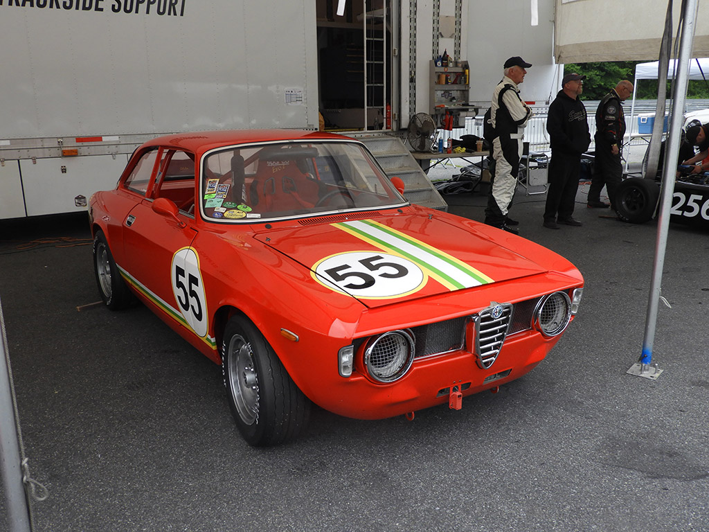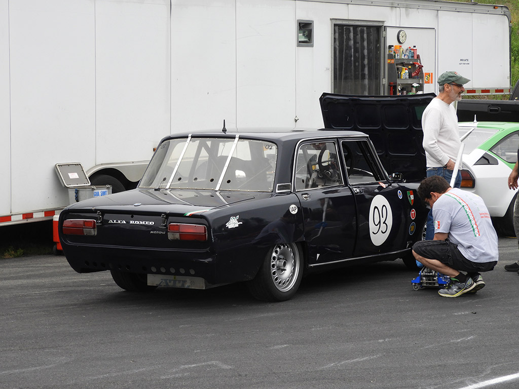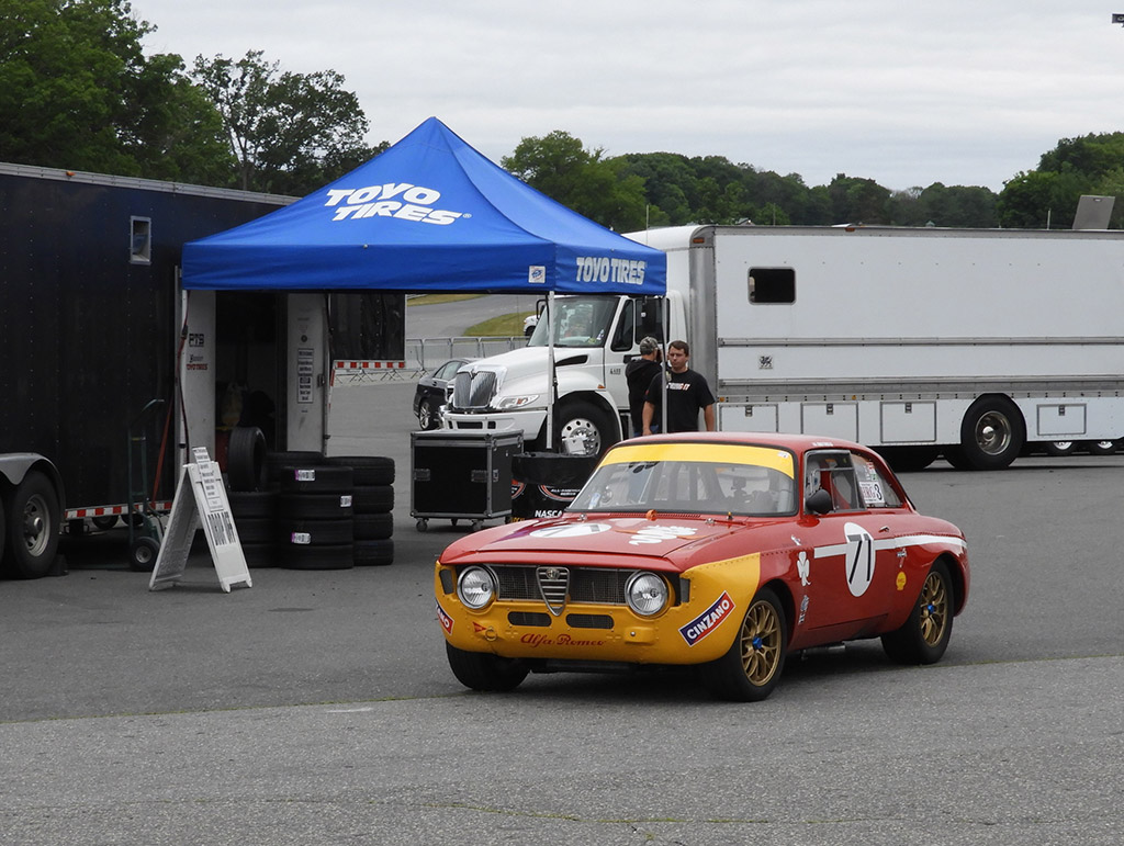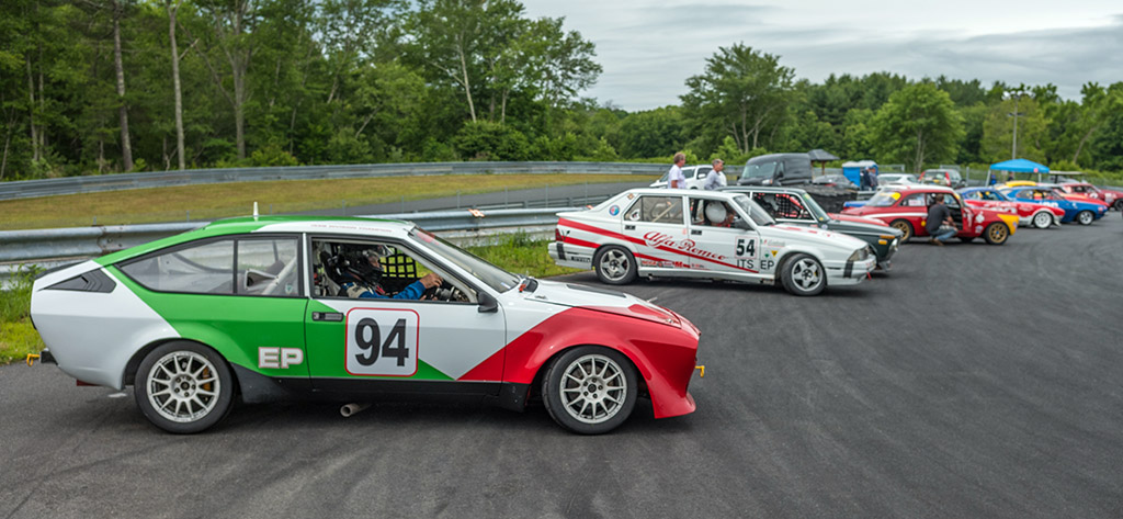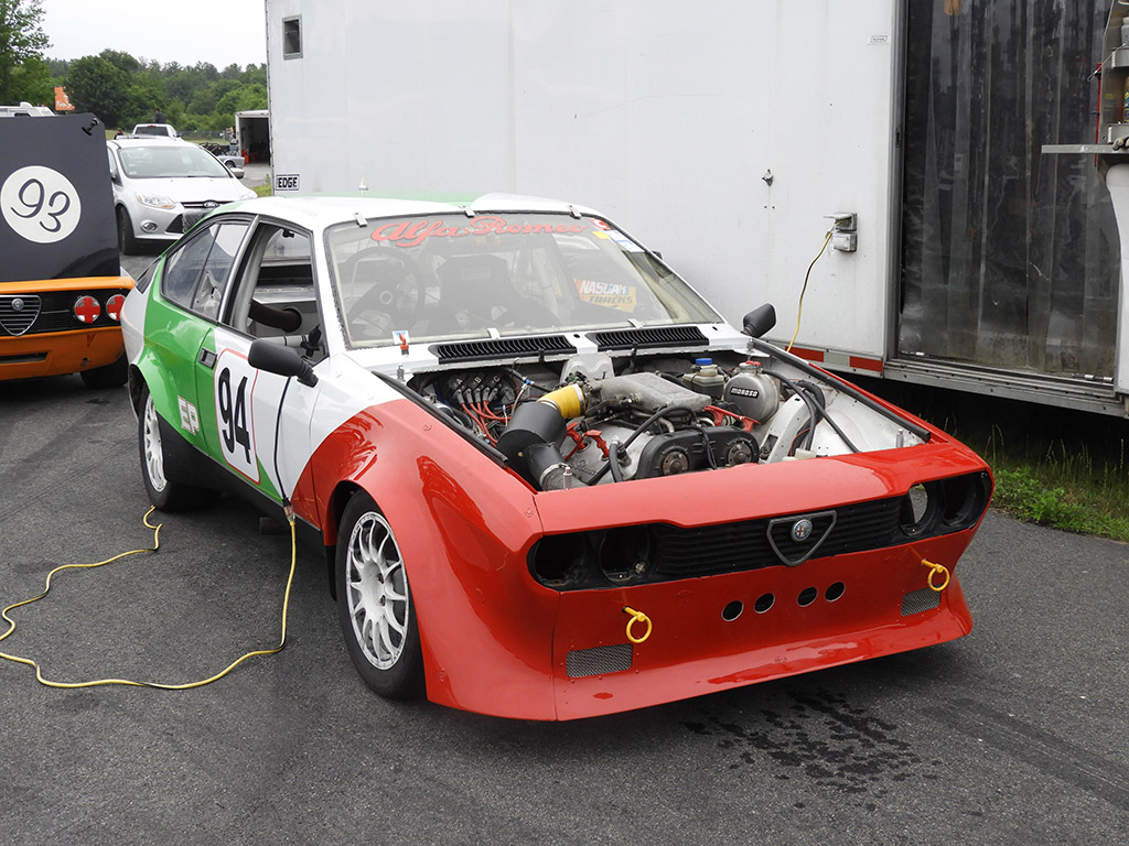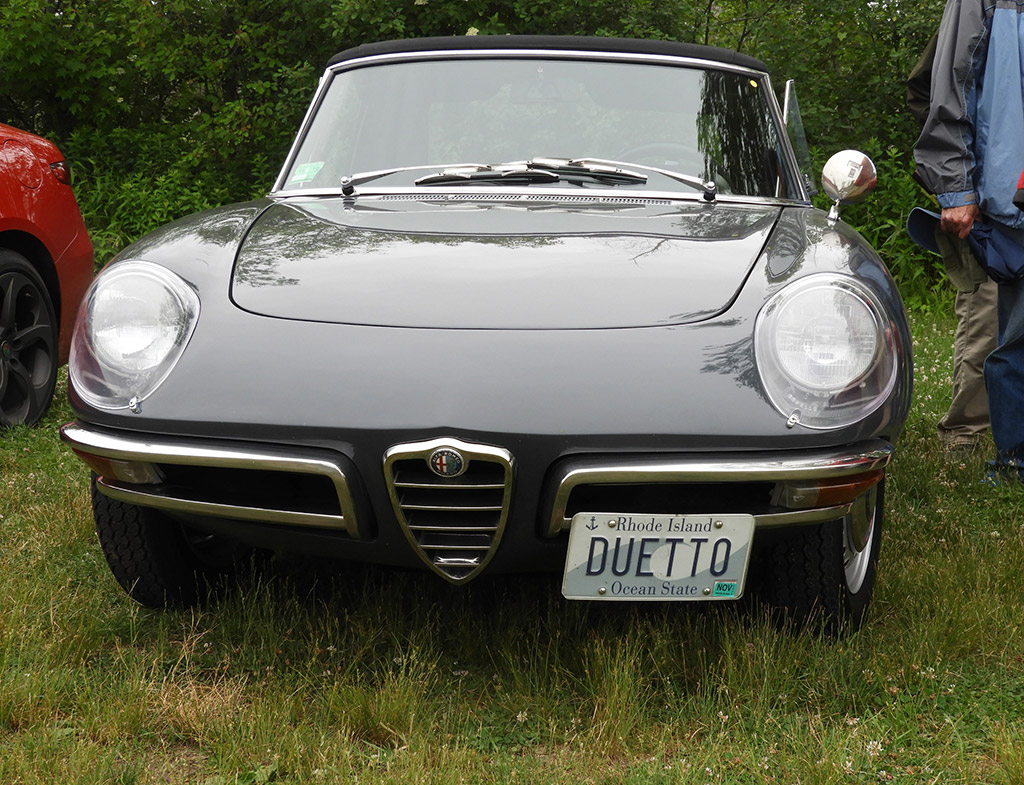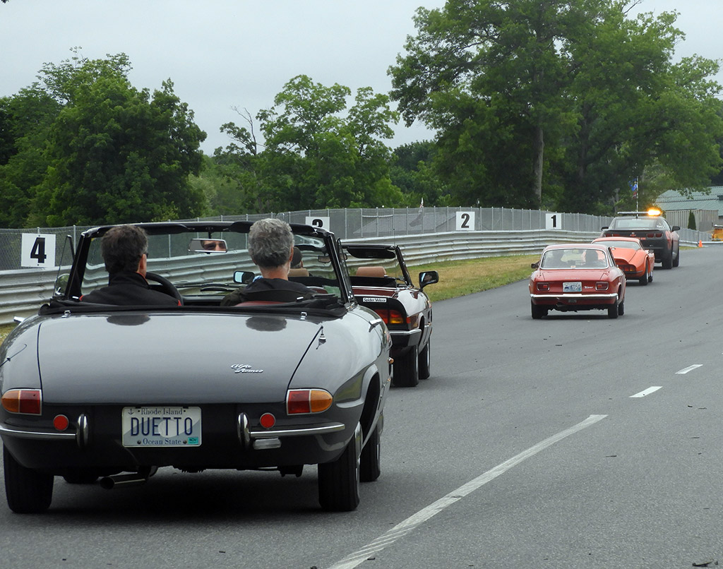 Don't Be Afraid to Drive These Cars! Although the forecast was gloomy for the 5th annual Vintage Motorsports Festival, the umbrellas stayed tucked away in our trunks! We did feel the occasional raindrop toward the end of the day but, all in all, a great time was had by all! One of the great features of this particular event each year is the growing number of Alfas competing in the various classes. Members Peter Lombardo, Mike Donnelly, Roger Cassin, and Paul Glynn all showed well as usual! Thompson Speedway boasts some of the best viewing locations of any track in the US. There are great vantage points all around the track, with complimentary cart service provided by the track. Members Gene Durso, Dan Donovan, and Tom Letourneau are all part of the "12th Turn Volunteers" team. Several AONE members showed up without their Alfas due to leaving for places far and wide after the races. To our members, I say: Don't be afraid to drive these cars! Gene, Dan, Phil Duffy, and I have put many miles on our Alfas attending conventions in Maryland, Toronto, and Montreal as well as the Alfa 100th at Watkins Glen. Lauren and I put 2,200 miles on the GTV last summer going to the Montreal convention and then continuing our tour through Eastern Canada. So what if the Montreal highway projects beat up the exhaust! By the way, two great shops lent a hand with that repair along the way. Great people north of the border! By the way, a certain Connecticut Triumph club had a corral planned but cancelled when they saw the forecast. Don't be afraid to drive these cars! Continuing with their wonderful tradition of feeding the masses, Patti and Jim DeWaele (that's my little brother!), treated us all to sausage and pepper sandwiches as well as hot dogs and various treats. Lauren's secret recipe pasta salad disappeared in record time! It's great to see the new Alfas contributing to our member roster! Welcome, George Capalbo (4C Spider) and Max Schuler (new Giulia)! And it's also great to see some younger folks joining the Alfista: Van and Kealani (1973 Spider) — welcome! Lastly, a great big thanks to all the folks at Thompson Speedway for their wonderful hospitality and 5-6 pace laps around that awesome track! Special thanks to Thompson's Scott Mayo, who was responsible for changing our corral's location to the infield and orchestrating the smooth flow and number of parade laps. I have said it before: If you like action, check out the Budweiser Modifieds as well as the numerous other events at the track. It's a great way to spend a summer evening — great track food and Bogey's Ice Cream to top it all off!
