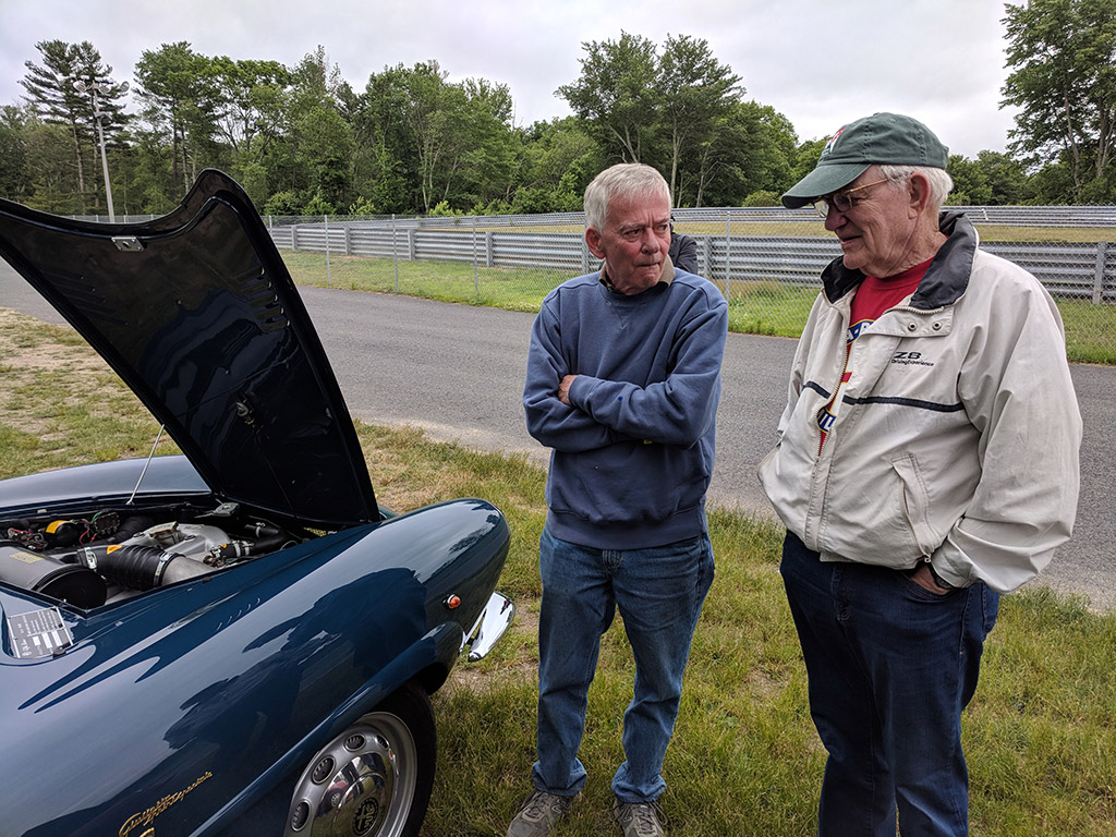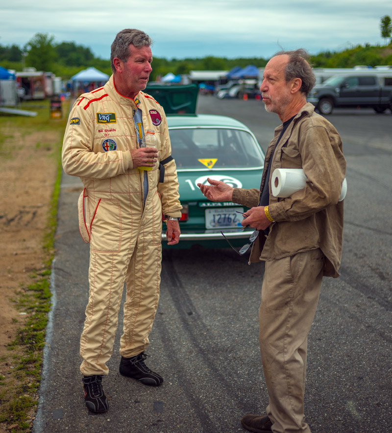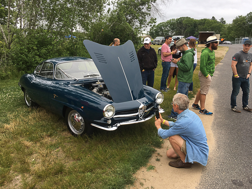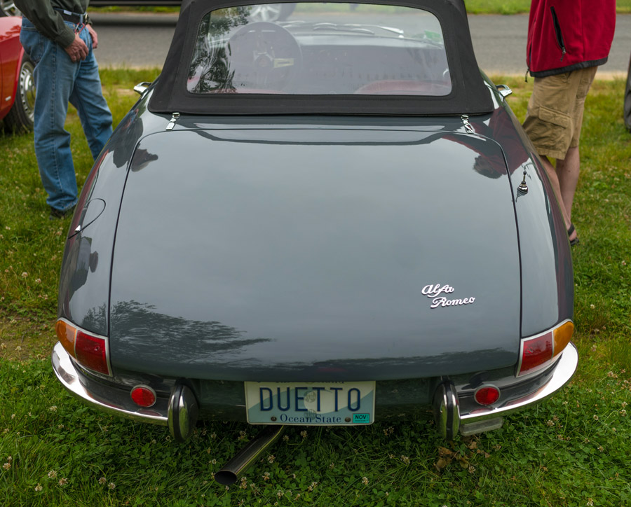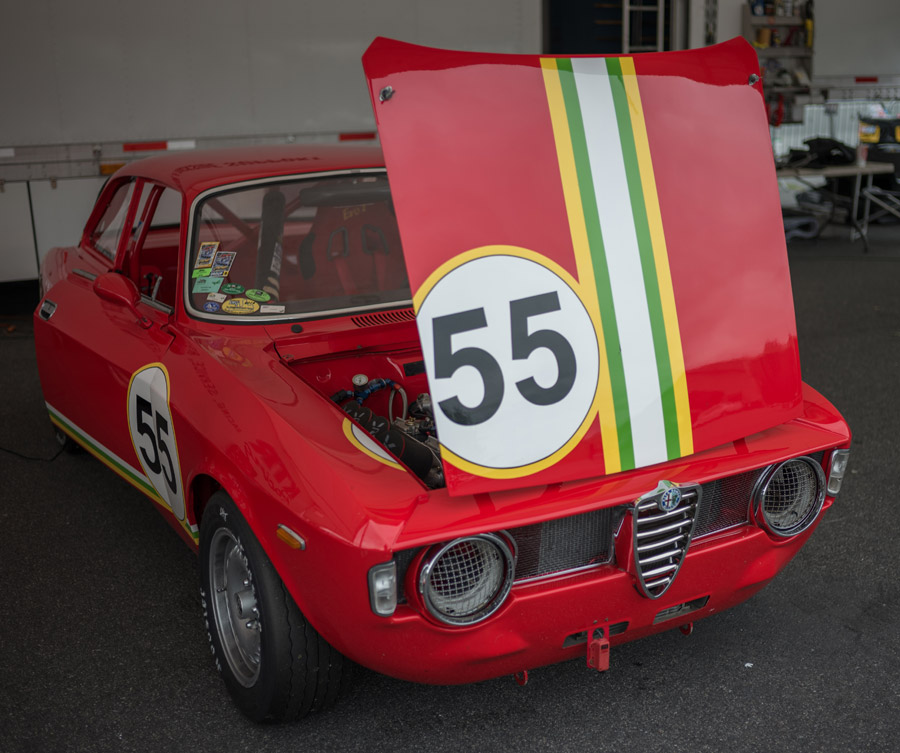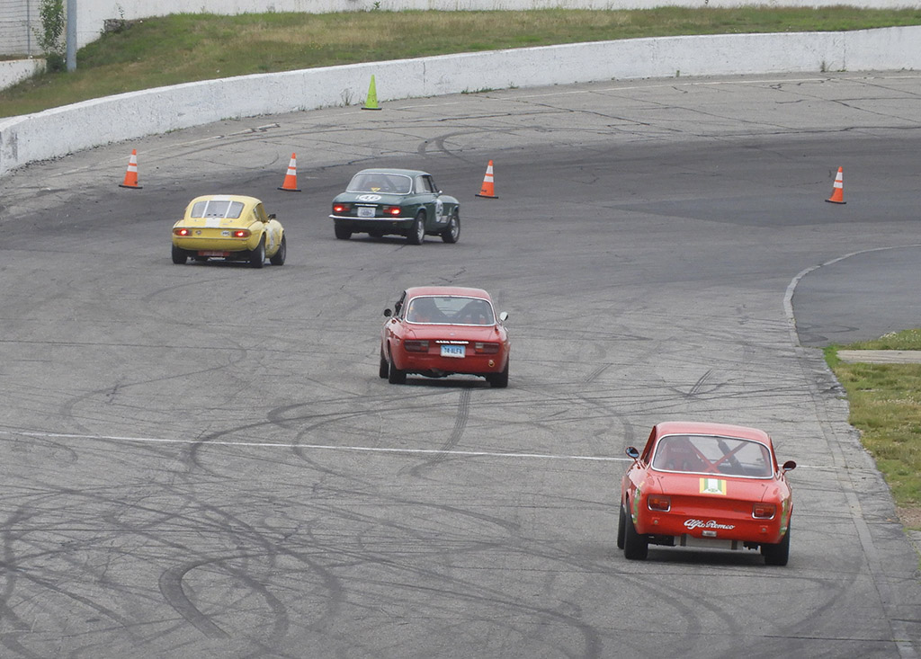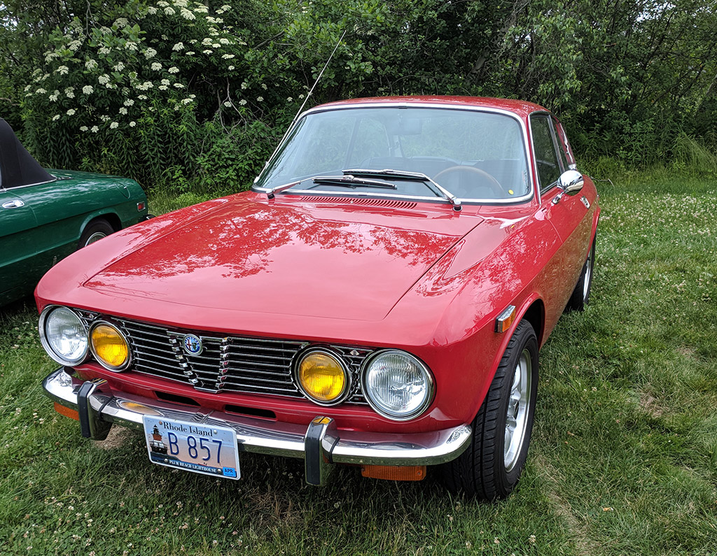 Don't Be Afraid to Drive These Cars! Although the forecast was gloomy for the 5th annual Vintage Motorsports Festival, the umbrellas stayed tucked away in our trunks! We did feel the occasional raindrop toward the end of the day but, all in all, a great time was had by all! One of the great features of this particular event each year is the growing number of Alfas competing in the various classes. Members Peter Lombardo, Mike Donnelly, Roger Cassin, and Paul Glynn all showed well as usual! Thompson Speedway boasts some of the best viewing locations of any track in the US. There are great vantage points all around the track, with complimentary cart service provided by the track. Members Gene Durso, Dan Donovan, and Tom Letourneau are all part of the "12th Turn Volunteers" team. Several AONE members showed up without their Alfas due to leaving for places far and wide after the races. To our members, I say: Don't be afraid to drive these cars! Gene, Dan, Phil Duffy, and I have put many miles on our Alfas attending conventions in Maryland, Toronto, and Montreal as well as the Alfa 100th at Watkins Glen. Lauren and I put 2,200 miles on the GTV last summer going to the Montreal convention and then continuing our tour through Eastern Canada. So what if the Montreal highway projects beat up the exhaust! By the way, two great shops lent a hand with that repair along the way. Great people north of the border! By the way, a certain Connecticut Triumph club had a corral planned but cancelled when they saw the forecast. Don't be afraid to drive these cars! Continuing with their wonderful tradition of feeding the masses, Patti and Jim DeWaele (that's my little brother!), treated us all to sausage and pepper sandwiches as well as hot dogs and various treats. Lauren's secret recipe pasta salad disappeared in record time! It's great to see the new Alfas contributing to our member roster! Welcome, George Capalbo (4C Spider) and Max Schuler (new Giulia)! And it's also great to see some younger folks joining the Alfista: Van and Kealani (1973 Spider) — welcome! Lastly, a great big thanks to all the folks at Thompson Speedway for their wonderful hospitality and 5-6 pace laps around that awesome track! Special thanks to Thompson's Scott Mayo, who was responsible for changing our corral's location to the infield and orchestrating the smooth flow and number of parade laps. I have said it before: If you like action, check out the Budweiser Modifieds as well as the numerous other events at the track. It's a great way to spend a summer evening — great track food and Bogey's Ice Cream to top it all off!