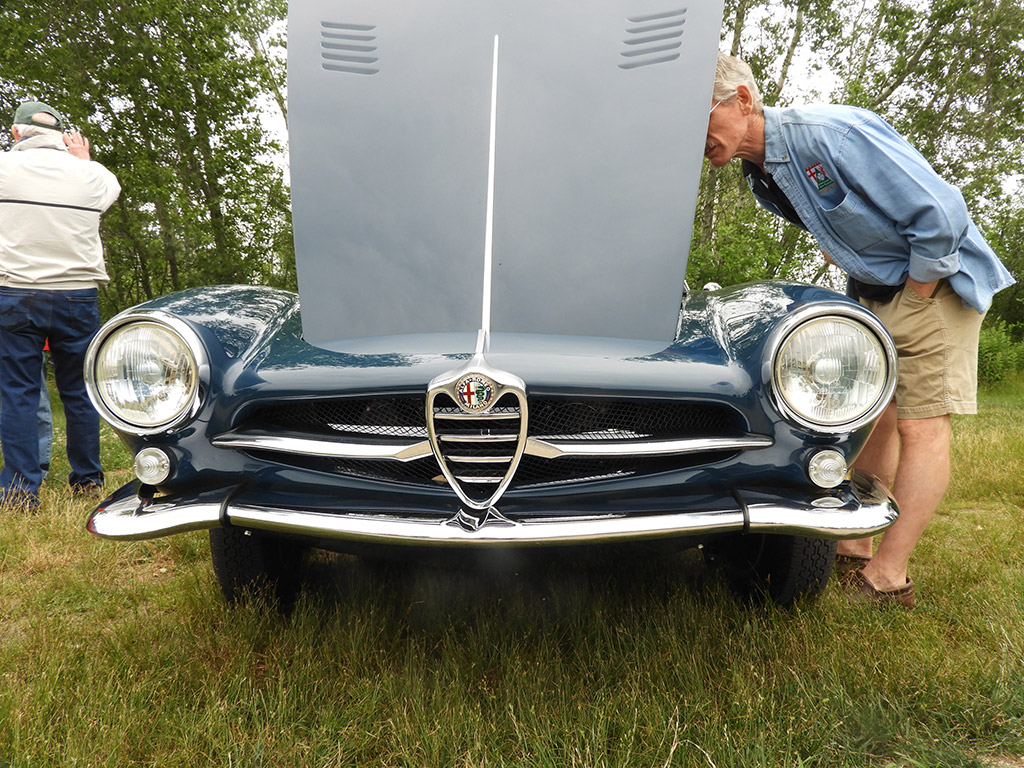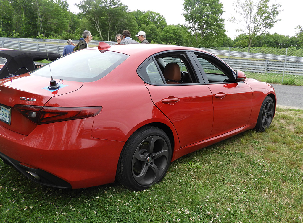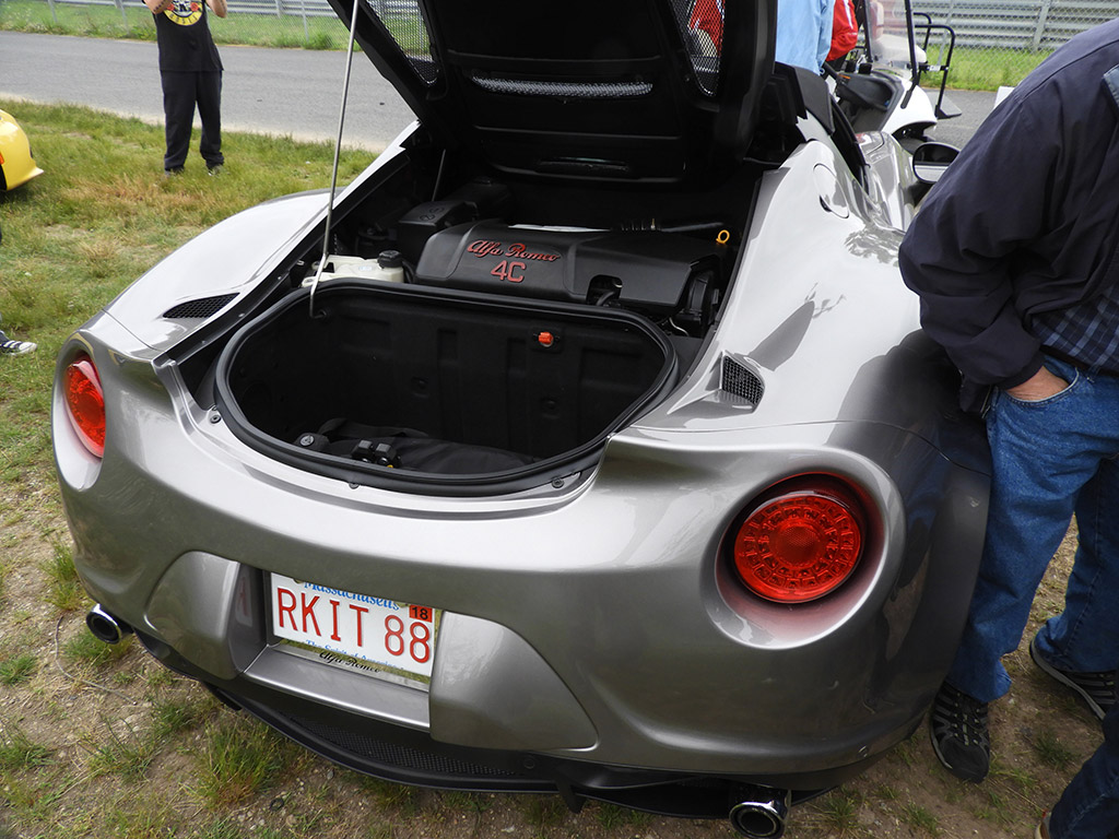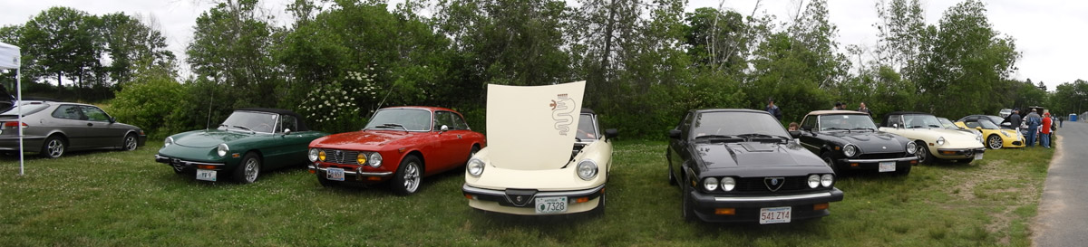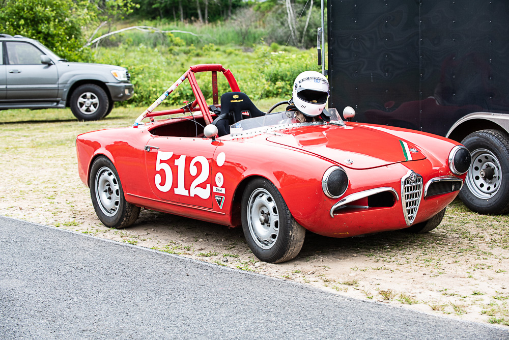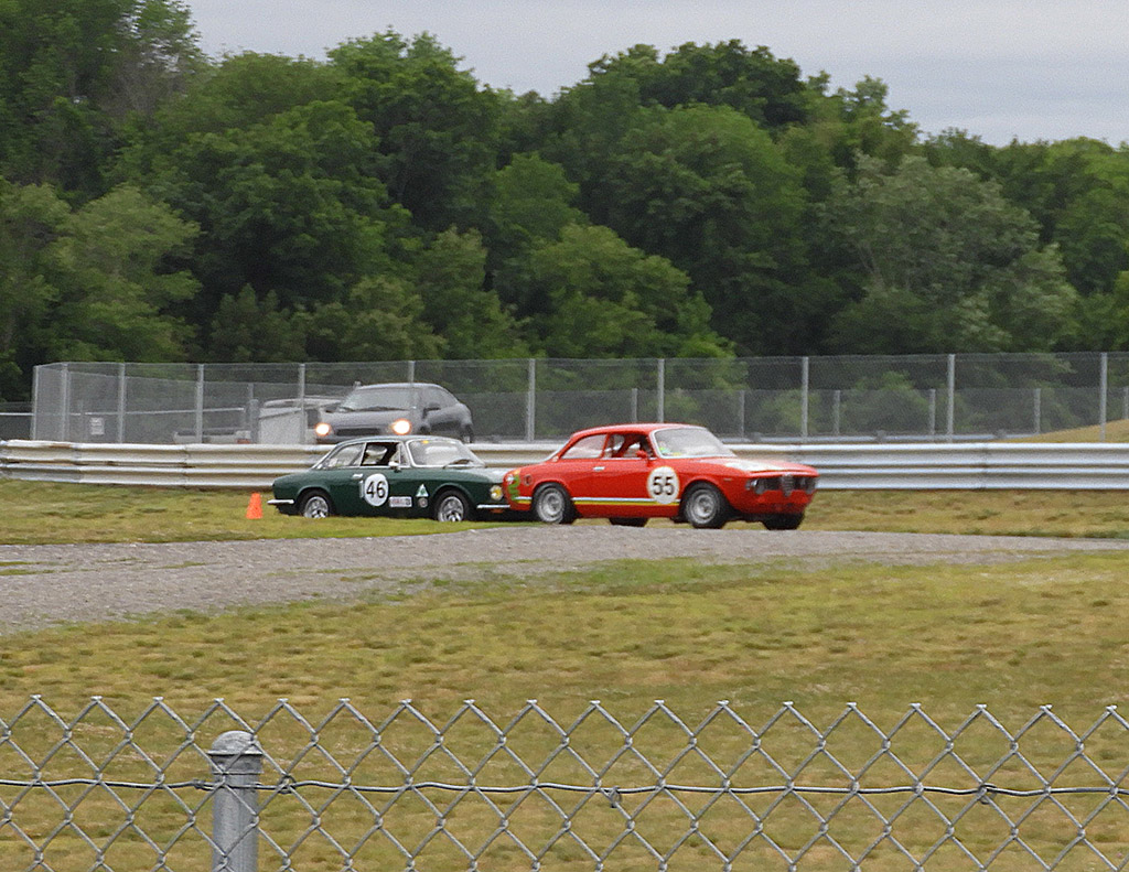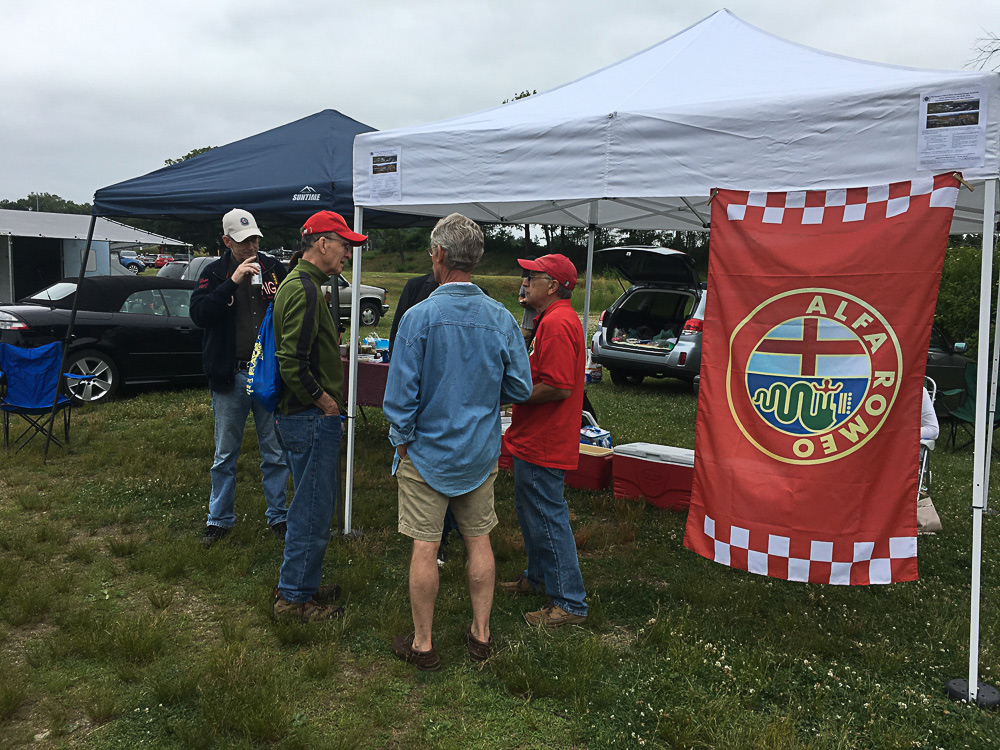 Two reports on a great weekend! Italian Horsepower at the Old Thompson Corral It was a delightful day for Alfa Romeo ownership when Alfa Club members gathered on June 23rd at the Thompson Motorsports facility in rural Connecticut. I had actually arrived on Thursday for the first day of racing, cheering on veteran English Formula Ford driver Richard Morris as he took up racing again after a three-year hiatus and a costly engine overhaul. By Saturday, the facility was much fuller, a full range of Alfas were on the track, and our garage space was close to a red GTV and a white Milano, both of which saw track time. When I returned Saturday, the place was in full swing, with a few more racing Alfas circulated the track and a lot of passenger-class Alfas and Alfisti, most of them moving to the lovely grassed area off the service road between the track's two paddock areas along the main straight. As most who read the emails regarding the corral, it moved this year from the main stone parking area adjacent to the oval across the bridge and to the more comfortable grass area. This was due in part, I understand, to the irresistible pressure of Tom Letourneau, who was an ebullient presence as always, driving his Team Thompson one-lung golf cart with precision and purpose. I noticed that he put his remarkable, Corvette-powered Jaguar Van den Plas sedan out on display and sale, and it looked terrific, as ever. I love most all vintage racing, and the Alfas had a number of opportunities to shine over the weekend. Thompson's new (with the reopening of the road course section of the track a few years ago) sweeping series of turns and short chutes that begin at the end of the main straight and snaked onto the left under the bridge onto the banked oval section provided a good point of view, but there are so many other places to catch the action. I'll always love the sound of an Alfa four cylinder, but the wail of the GTV6 and Milano Verde race cars ruled my ears that day as they entered the last short chute leading to the left under the bridge. The tallish Milano wobbled about on the changing camber onto the oval like a DTM Touring Car champion, while the GTV6 had an eerily tenacious grip that kept the car beautifully planted, haring around the circuit effortlessly. When one considers the relative rarity of an Alfa Romeo on the road, it makes sense to make the most of an opportunity to see and be seen in an ubiquitous Spider, a relatively rare GTV6, Sprint Speciale, 4C, Giulia and Giulia Quadrifoglio, a Milano, a Giulietta, Berlina, or any number of other models that either raced at or rallied to Thompson Motorsports Park that morning under cloudy skies. While they were all there in force, an ongoing cold must have addled my mind, because I didn't bring my '86 Spider Graduate out of a weirdly deep-seated worry about how heavy the rain might fall. Now, it doesn't really matter that there was NO significant rain from 8:45 am right up to 5pm when I left. What mattered was my lack of commitment to showing up in an Alfa Romeo on a day when no really heavy rain was forecast. Around Noon, when we were about to go out on the track for parade laps, I had to ask for a ride, which was granted, and I rode in a lovely 1989 Spider Quadrifoglio driven by the inestimable Kent Worthington. His car must be worth at least a few hundred dollars more than my lowly Graduate, and he didn't have any trouble deciding to bring it. And then there were the really valuable cars, whose owners didn't have a problem bringing them either. Thompson officials were generous with their parade laps, and the Camaro pace car set of at a good clip after checking to see that the entire troupe of cars was visible along the straight. We were in the midfield, and Kent drove with flair and skill, followed by a yellow 4C lulled into somnolence by our relatively modest performance potential. We followed Tom Larsen's Sprint Speciale. No parade this, fast enough to feel the car's grip on corners, but not fast enough to raise the red mist. Kent hadn't been sure he would take the parade laps following an incident that morning where he stopped briefly on his short trip, re-entered the car and experienced an oh-no moment of the brake pedal flopping to the floor. But it only happened once, and was fine thereafter: possibly some air in the lines? But just in case, Kent left most of the braking to the engine, executing many well-organized downshifts and keeping the revs up. That only added to the fun. Five full laps later, we exited our cars and proceeded to a lovely cookout picnic that tasted wonderful. Many, many thanks to Jim and Patti DeWaele for putting on the terrific spread for us! I started to talk to a few Alfisti about my poor decision to leave the Spider home that morning. Kent had a good response: Does it really matter if any of our Alfas are exposed to rain for a day? What harm can it really do? Even if were to rain at the relatively small number of events one attends in the space of a year, it still wouldn't have an obvious impact on the cars over the many years we own them. And it is a lot more fun than leaving them behind. Then and there, I resolved to treat my car as it was designed to be treated, as a wonderful piece of driving involvement whose running is not mutually exclusive to the existence of rain. After all, If Tom, the owner of a very worthy Sprint Speciale, can turn the key in less-than-perfect weather, why should I hesitate to do likewise in my own fractionally worthy machine? Thanks to all the organizers, and to Thompson for making us feel welcome yet again. Kudos to the staff at the office near the main entrance who continue to make a terrific, friendly impression.