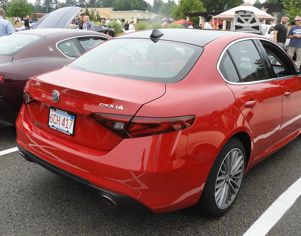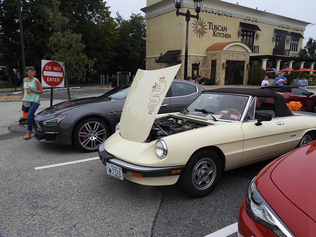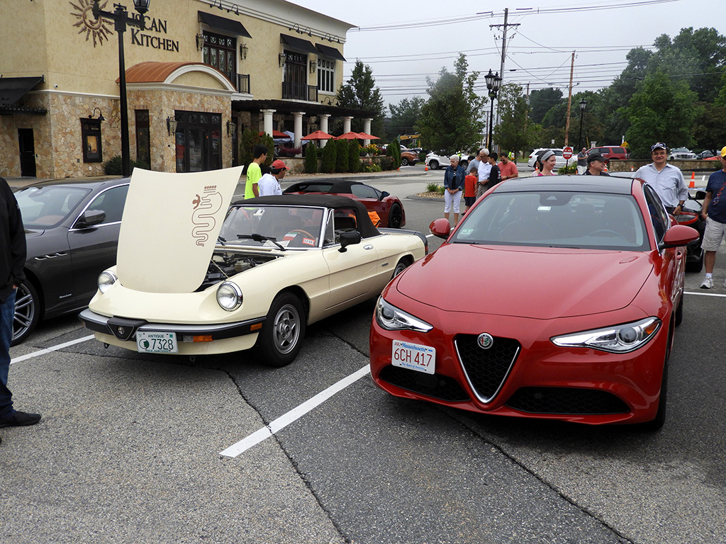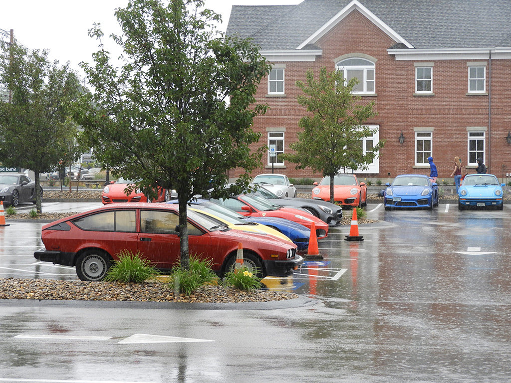 The gloomy forecast and monsoon rainfall on Boston's North Shore caused the wise to keep themselves and their treasured Alfas safely stowed. But our not-so-smart members John & Roberta Rowntree participated to represent the brand and the club!