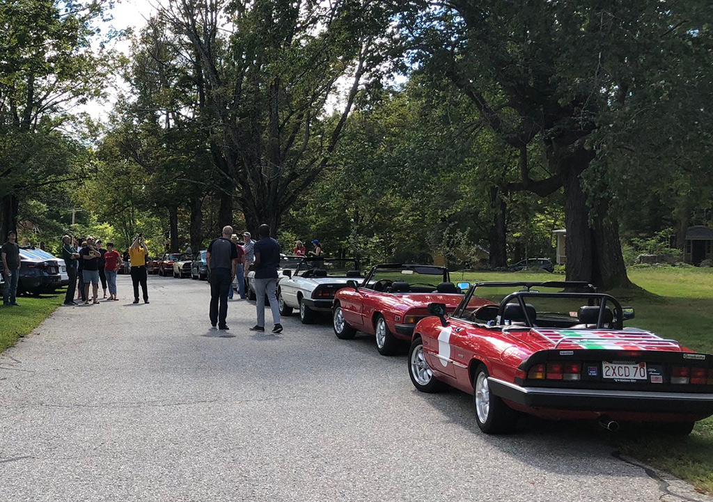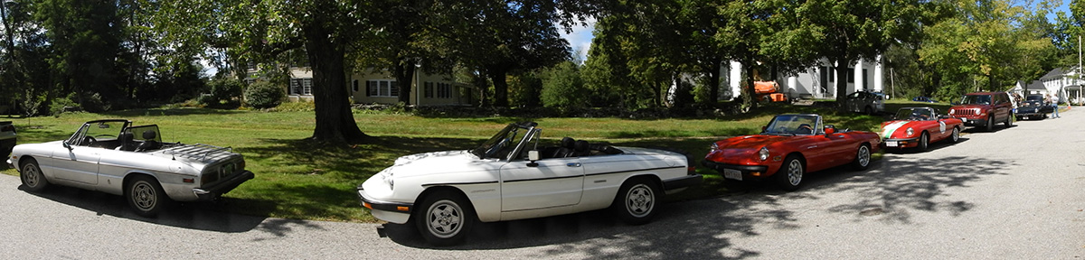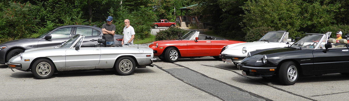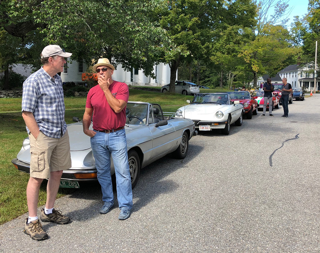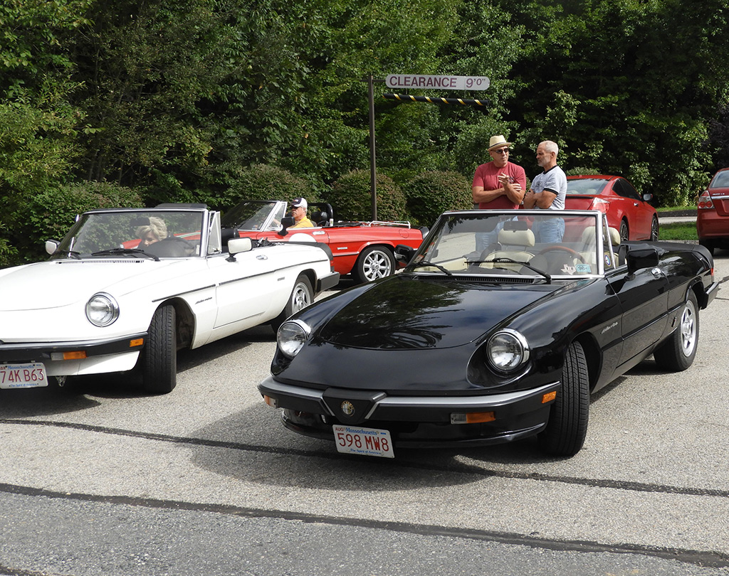 Hey, Florence — is that your best price? While our southern Alfisti may have been preparing for Hurricane Florence on Saturday, September 15th, we all enjoyed the benefits of a wonderful fall day. We'll keep them in our thoughts as they recover this week. We had record participation in this year's Wachusett Run with 20 cars and 36 participants. For the second year in a row, we nearly had representation of all six New England states, with only the great state of Maine missing. We did, however, make it up with representation from the great state of Alaska! We met at the Mount Wachusett Visitor Center. Our excellent turnout combined with a beautiful hiking day resulted in competition for parking. Triple-parking our Alfas didn't quite do the trick, so we'll need a different plan next year. We enjoyed pre tour camaraderie over biscotti, donuts, and coffee before we were hastened on our way by the ranger. As always, the Wachusett Run organizers tried to add a few surprises and new elements. The modified route brought us from Westminster through Princeton and Holden centers, to a ride along one of Worcester's reservoirs and into its Tatnuck Square neighborhood, and then on to Paxton center. After a brief pit stop at "Four Corners" in the geographic center of the Commonwealth (aka Rutland), we made our way through Oakham and Barre to Petersham for a photo stop and buying spree. This year, we shared the Common with a tag sale (that means "yard sale" for you eastern-Mass folks). While the organizers had worried that it would ruin the nice calendar photo ops, the attendees' concern was that there wasn't more time to shop. With our purchases safely tucked away, we headed back into the woods, only to emerge a few minutes later at an intersection in the middle of nowhere known as "The Barre Cross", a 200-foot-long, 25-foot-wide cross paved on a swath of land cleared next to the owner's 240-year-old farmhouse and carefully manicured shrubbery. Definitely not your typical New England farmhouse panorama. After a few more twists and turns, we eventually came to our well-earned rest in "Chair City" (aka Gardner) and our lunch spot, The Gardner Ale House. Thanks to all who attended! Looking forward to seeing many of you at our upcoming AONE events! [And thanks to the Donovans and Dursos, who again planned and perfectly executed a great early-autumn event! —Ed.] 2018 Wachusett Tour Participants Jim and Patti DeWaele - 1973 GTV |