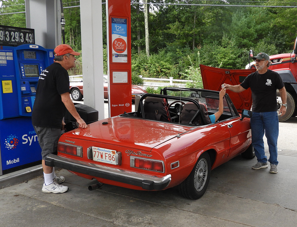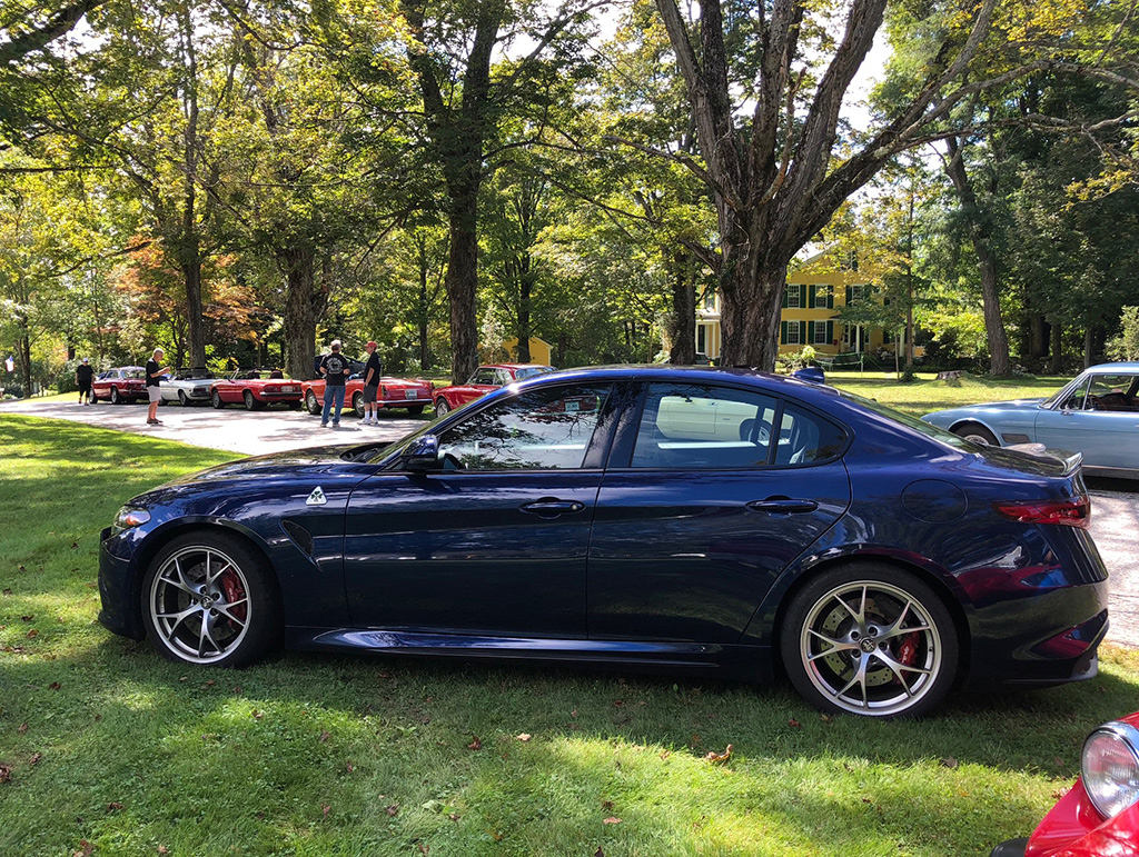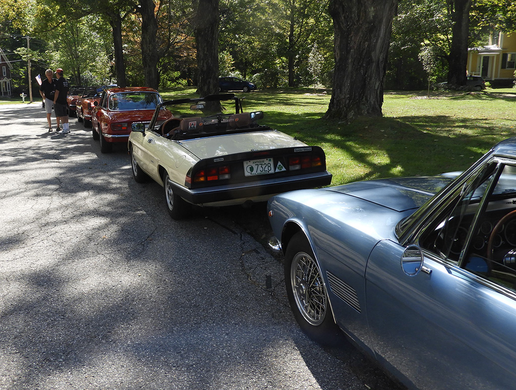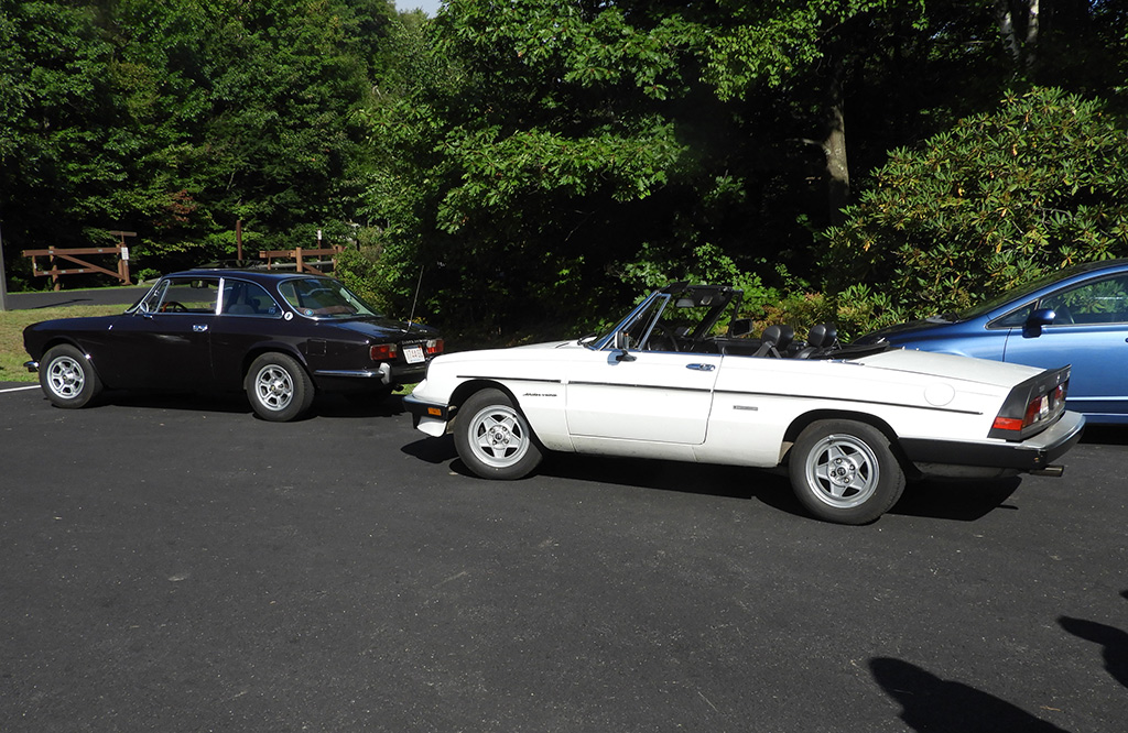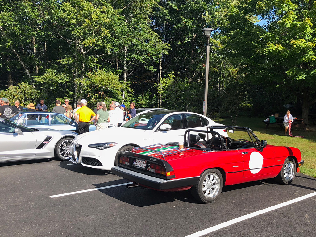 Hey, Florence — is that your best price? While our southern Alfisti may have been preparing for Hurricane Florence on Saturday, September 15th, we all enjoyed the benefits of a wonderful fall day. We'll keep them in our thoughts as they recover this week. We had record participation in this year's Wachusett Run with 20 cars and 36 participants. For the second year in a row, we nearly had representation of all six New England states, with only the great state of Maine missing. We did, however, make it up with representation from the great state of Alaska! We met at the Mount Wachusett Visitor Center. Our excellent turnout combined with a beautiful hiking day resulted in competition for parking. Triple-parking our Alfas didn't quite do the trick, so we'll need a different plan next year. We enjoyed pre tour camaraderie over biscotti, donuts, and coffee before we were hastened on our way by the ranger. As always, the Wachusett Run organizers tried to add a few surprises and new elements. The modified route brought us from Westminster through Princeton and Holden centers, to a ride along one of Worcester's reservoirs and into its Tatnuck Square neighborhood, and then on to Paxton center. After a brief pit stop at "Four Corners" in the geographic center of the Commonwealth (aka Rutland), we made our way through Oakham and Barre to Petersham for a photo stop and buying spree. This year, we shared the Common with a tag sale (that means "yard sale" for you eastern-Mass folks). While the organizers had worried that it would ruin the nice calendar photo ops, the attendees' concern was that there wasn't more time to shop. With our purchases safely tucked away, we headed back into the woods, only to emerge a few minutes later at an intersection in the middle of nowhere known as "The Barre Cross", a 200-foot-long, 25-foot-wide cross paved on a swath of land cleared next to the owner's 240-year-old farmhouse and carefully manicured shrubbery. Definitely not your typical New England farmhouse panorama. After a few more twists and turns, we eventually came to our well-earned rest in "Chair City" (aka Gardner) and our lunch spot, The Gardner Ale House. Thanks to all who attended! Looking forward to seeing many of you at our upcoming AONE events! [And thanks to the Donovans and Dursos, who again planned and perfectly executed a great early-autumn event! —Ed.] 2018 Wachusett Tour Participants Jim and Patti DeWaele - 1973 GTV |