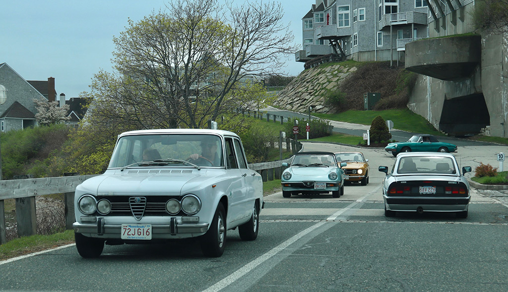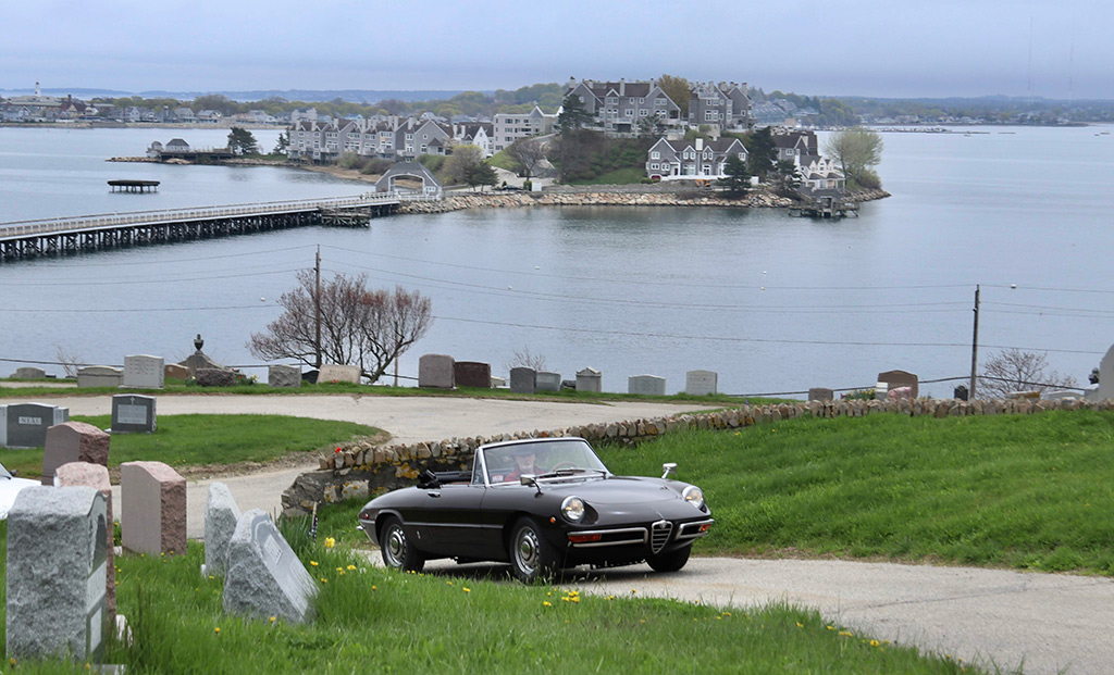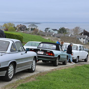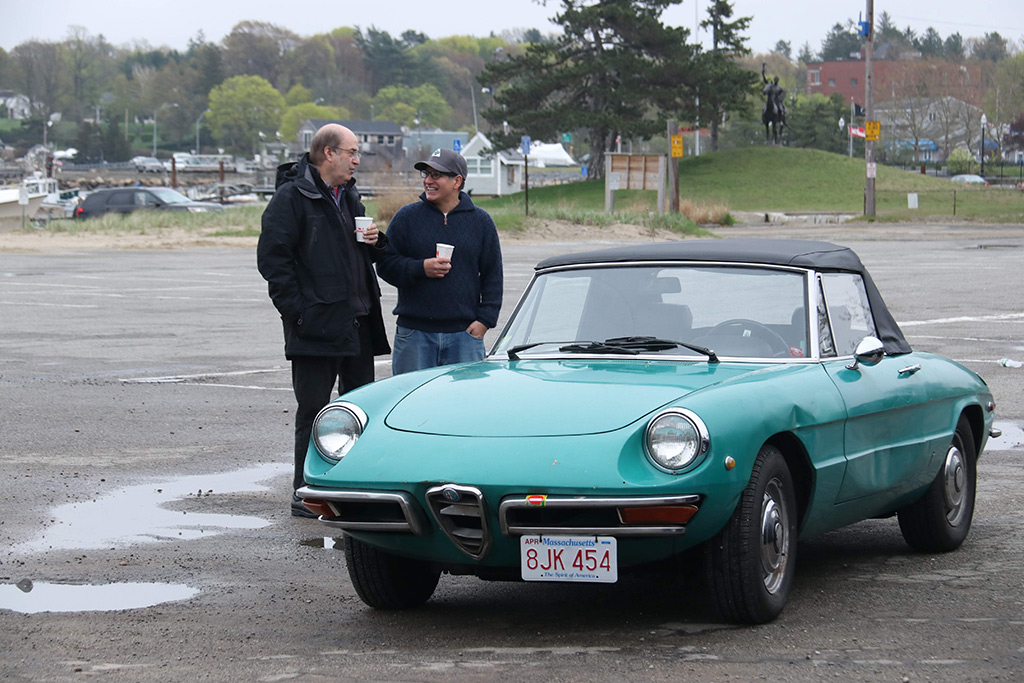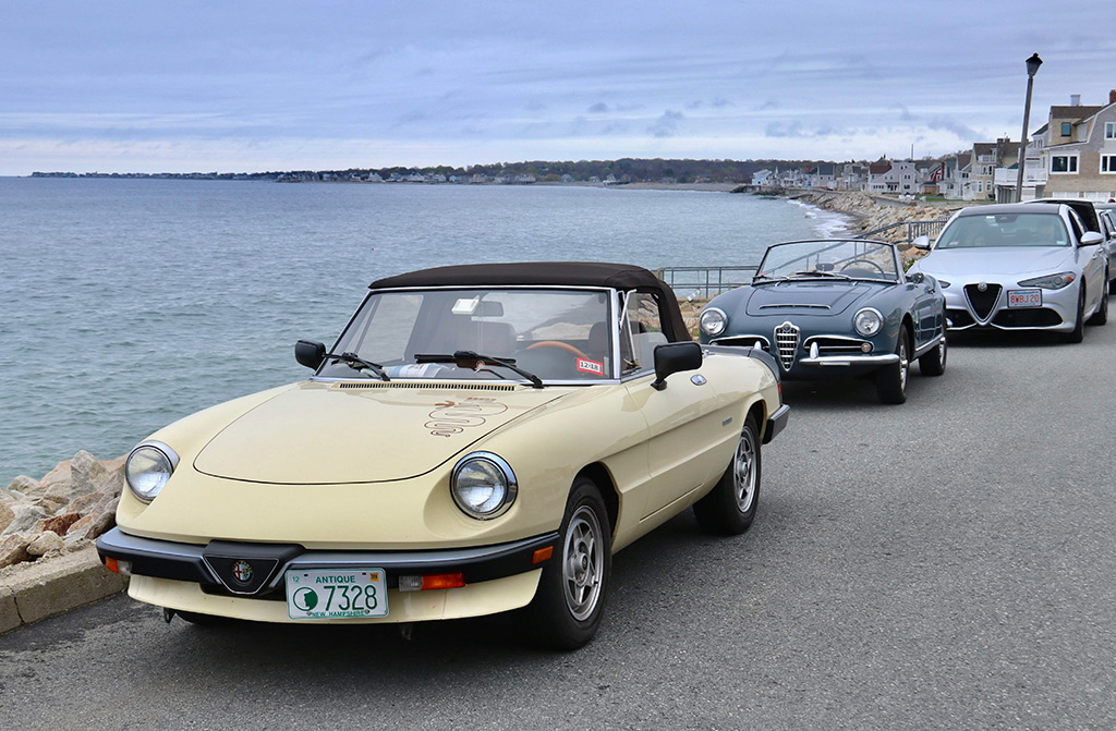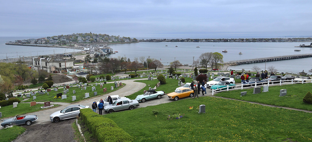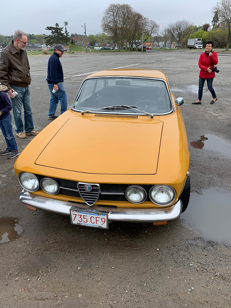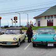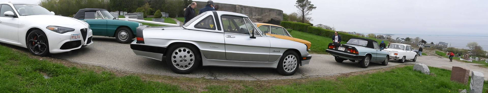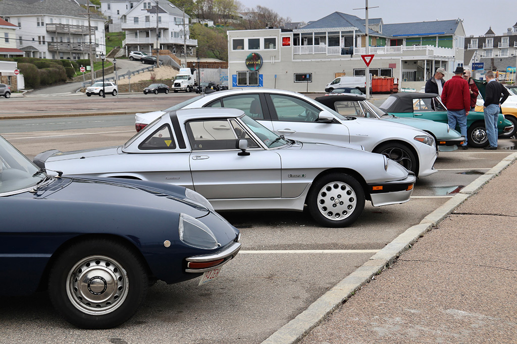 By Tom Lesko The day started with coolish weather and a just a very few sprinkles but that did not deter hearty Alfa people with spiders ... top down, of course! The weather improved some as the day went by. Tom arrived early and met 24 members and family with coffee, muffins and conversation as they arrived. Later, he passed out the "custom" route maps and explained the tour, which started with a loop around Hingham harbor. At the first stop sign, two Stelvios passed by, one in each direction. I believe those Stelvios winked and smiled ;-) as their owners waved to their elder (Tom's '65 Giulia Spider Veloce) as they went by. The tour went well, but because of the large number of cars, we were split up after touring Nantasket beach, Hull and Spinnaker Island. All was well, though, as members found their way to the "photo op stop" at Minot lighthouse beach, where we spent a few minutes chatting and taking in the spectacular view. We then traced our route back through Scituate, Cohasset harbor and "Little Harbor", and finally back to Hull for lunch at Jake's Seafood Restaurant. Plenty of great food and beverages were enjoyed over conversation and we all vowed to see each other at the next AONE event! Tom Lesko - 1965 Spider Veloce ("Grumpy") |
