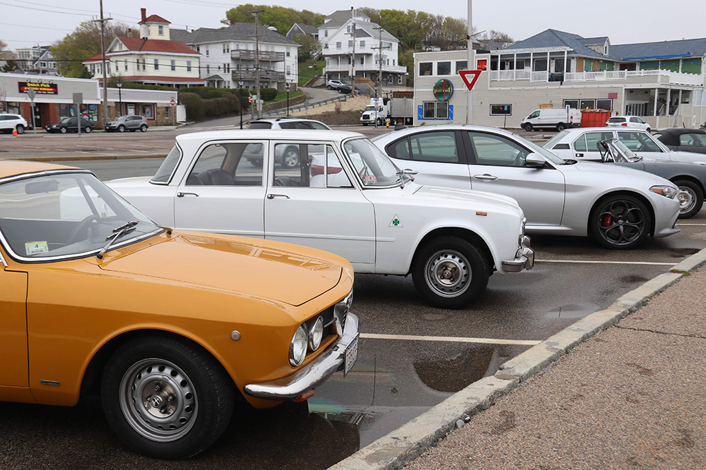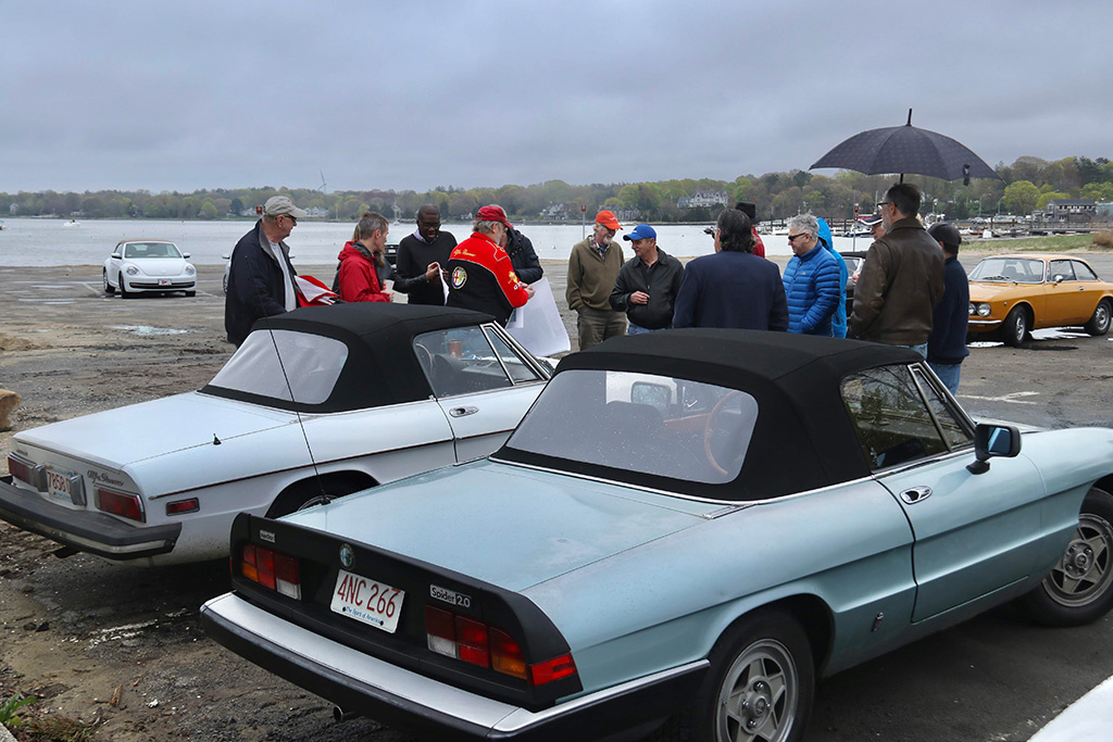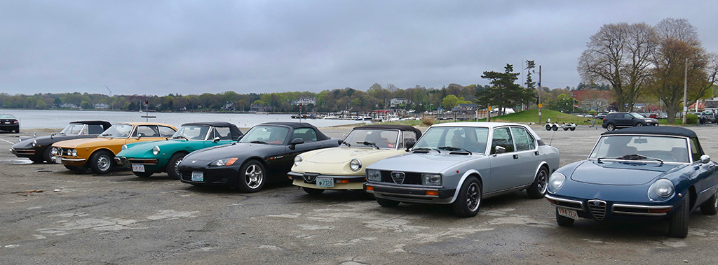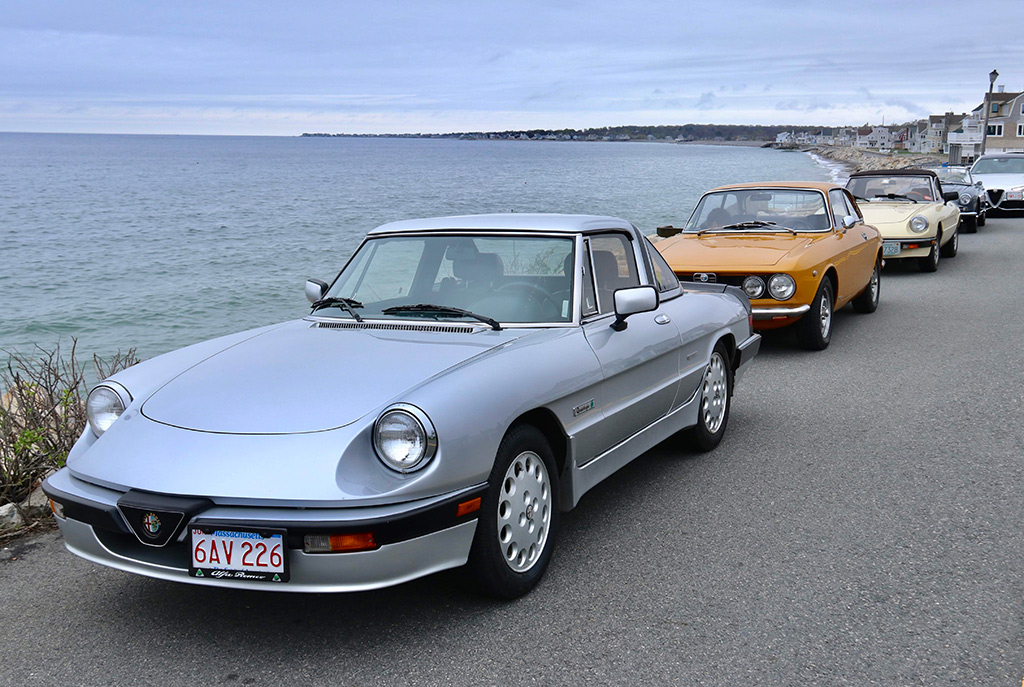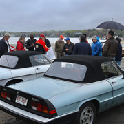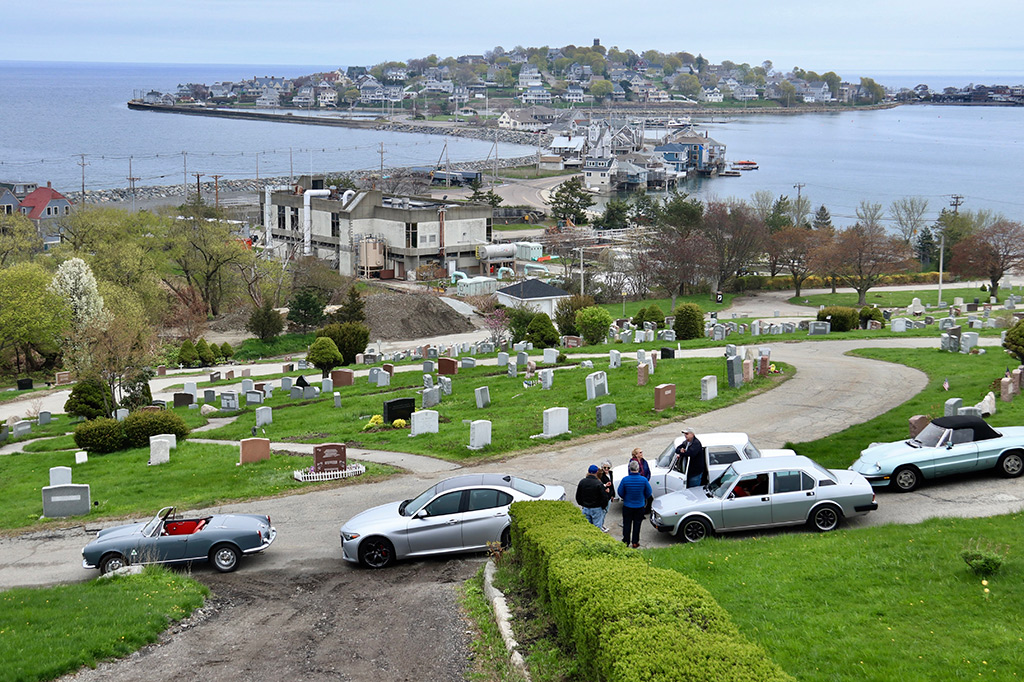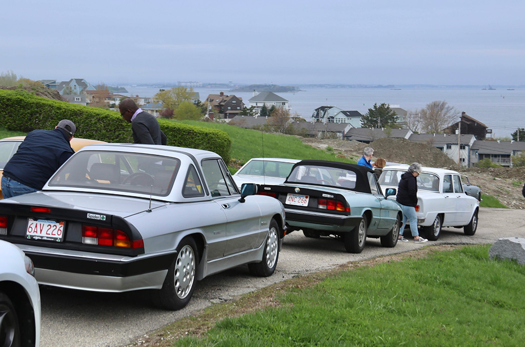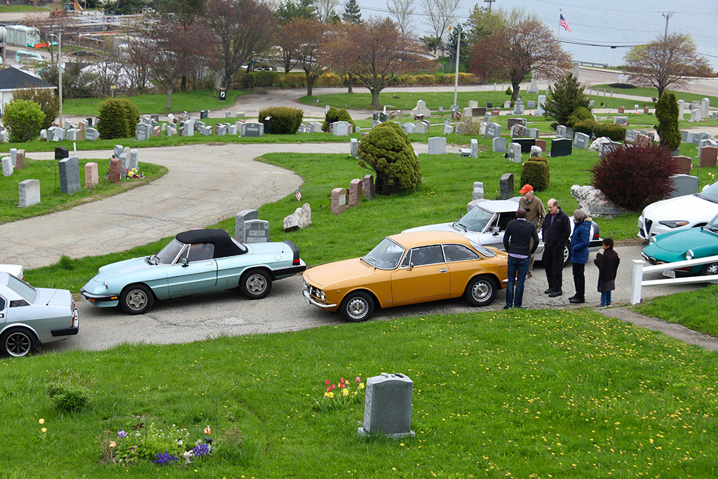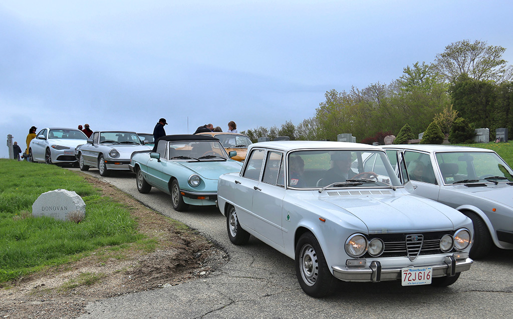By Tom Lesko The day started with coolish weather and a just a very few sprinkles but that did not deter hearty Alfa people with spiders ... top down, of course! The weather improved some as the day went by. Tom arrived early and met 24 members and family with coffee, muffins and conversation as they arrived. Later, he passed out the "custom" route maps and explained the tour, which started with a loop around Hingham harbor. At the first stop sign, two Stelvios passed by, one in each direction. I believe those Stelvios winked and smiled ;-) as their owners waved to their elder (Tom's '65 Giulia Spider Veloce) as they went by. The tour went well, but because of the large number of cars, we were split up after touring Nantasket beach, Hull and Spinnaker Island. All was well, though, as members found their way to the "photo op stop" at Minot lighthouse beach, where we spent a few minutes chatting and taking in the spectacular view. We then traced our route back through Scituate, Cohasset harbor and "Little Harbor", and finally back to Hull for lunch at Jake's Seafood Restaurant. Plenty of great food and beverages were enjoyed over conversation and we all vowed to see each other at the next AONE event! Tom Lesko - 1965 Spider Veloce ("Grumpy") |