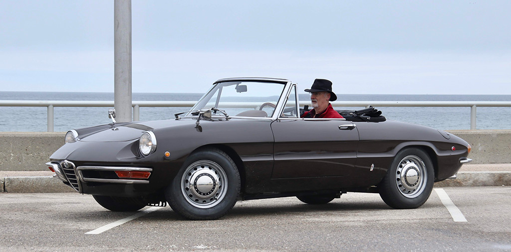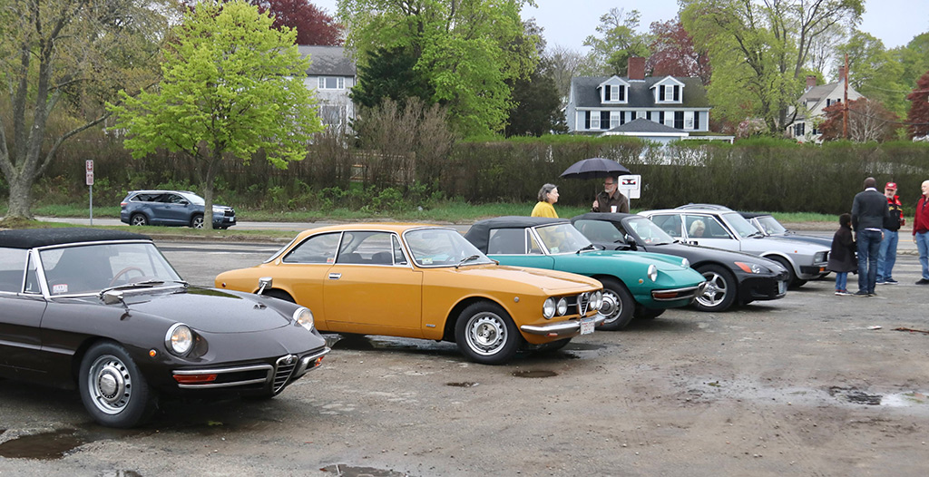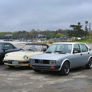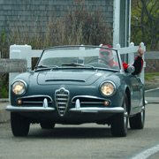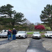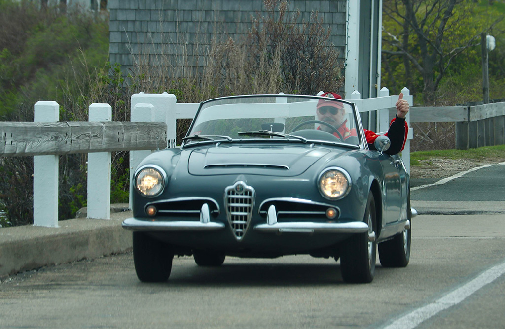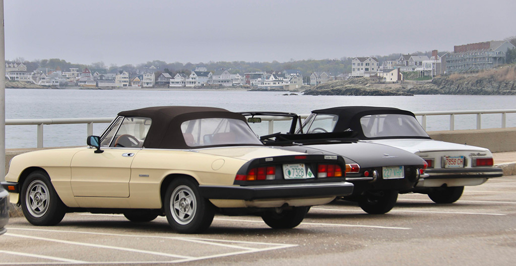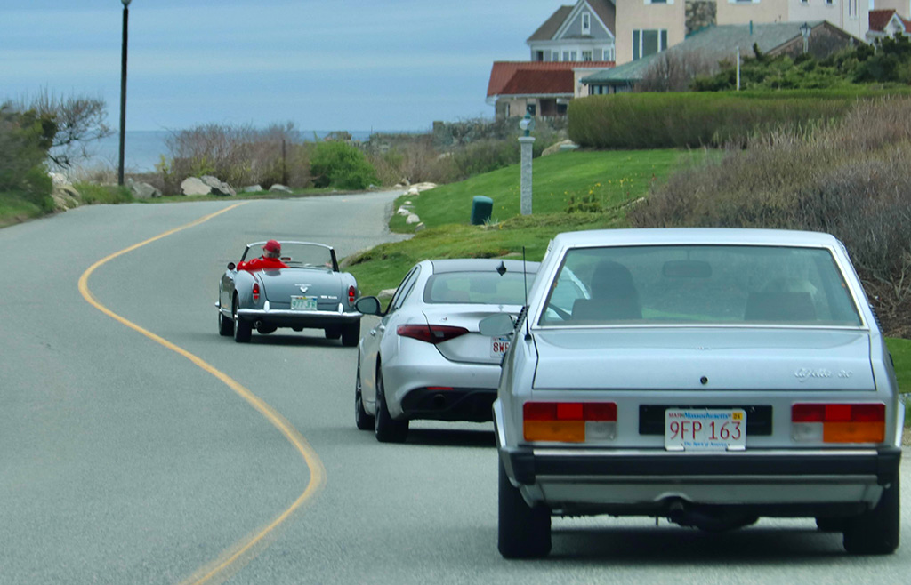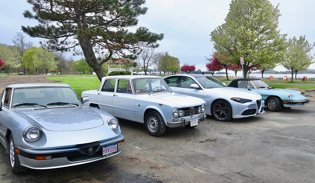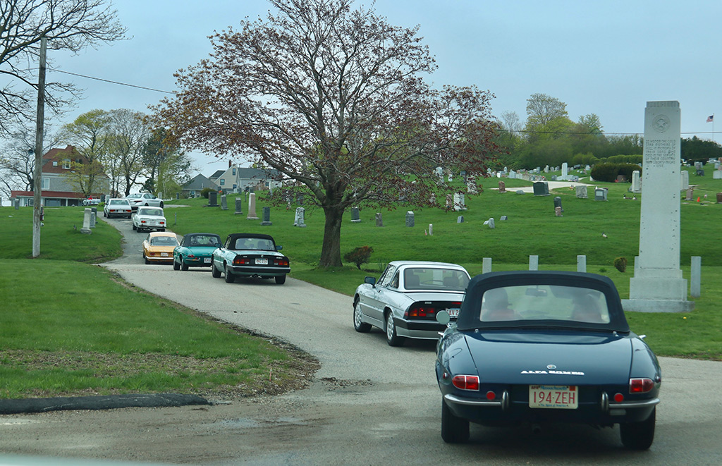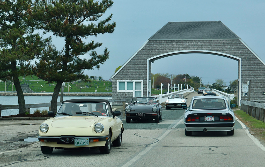 By Tom Lesko The day started with coolish weather and a just a very few sprinkles but that did not deter hearty Alfa people with spiders ... top down, of course! The weather improved some as the day went by. Tom arrived early and met 24 members and family with coffee, muffins and conversation as they arrived. Later, he passed out the "custom" route maps and explained the tour, which started with a loop around Hingham harbor. At the first stop sign, two Stelvios passed by, one in each direction. I believe those Stelvios winked and smiled ;-) as their owners waved to their elder (Tom's '65 Giulia Spider Veloce) as they went by. The tour went well, but because of the large number of cars, we were split up after touring Nantasket beach, Hull and Spinnaker Island. All was well, though, as members found their way to the "photo op stop" at Minot lighthouse beach, where we spent a few minutes chatting and taking in the spectacular view. We then traced our route back through Scituate, Cohasset harbor and "Little Harbor", and finally back to Hull for lunch at Jake's Seafood Restaurant. Plenty of great food and beverages were enjoyed over conversation and we all vowed to see each other at the next AONE event! Tom Lesko - 1965 Spider Veloce ("Grumpy") |