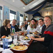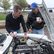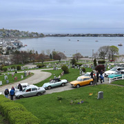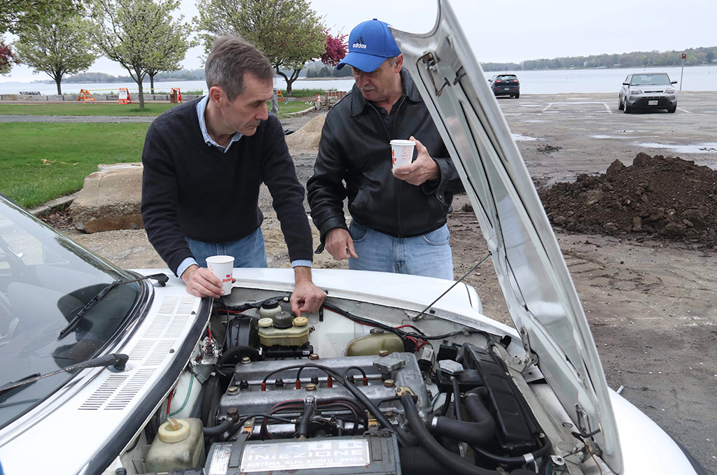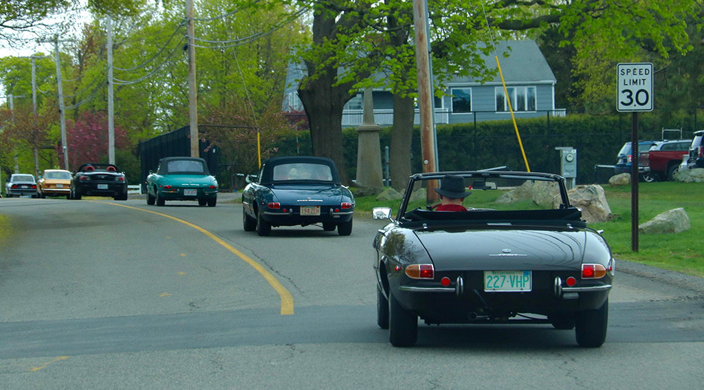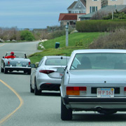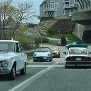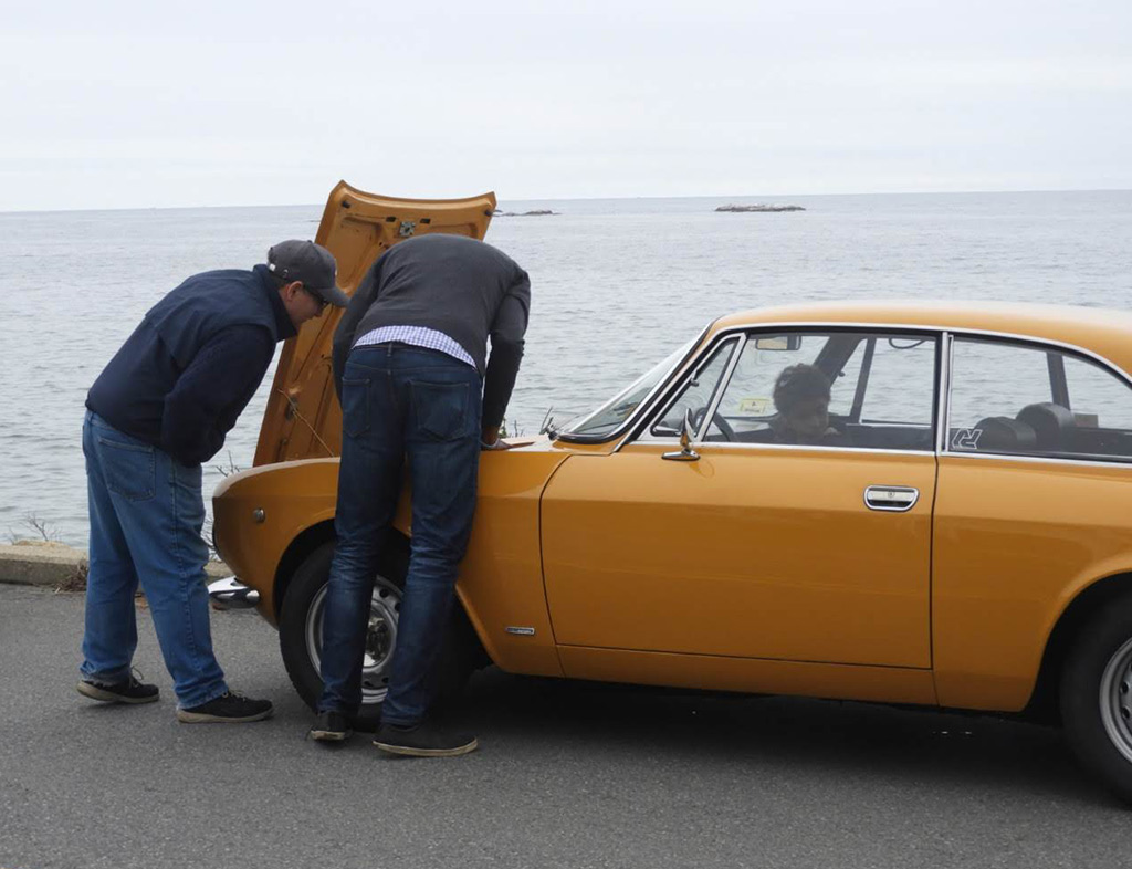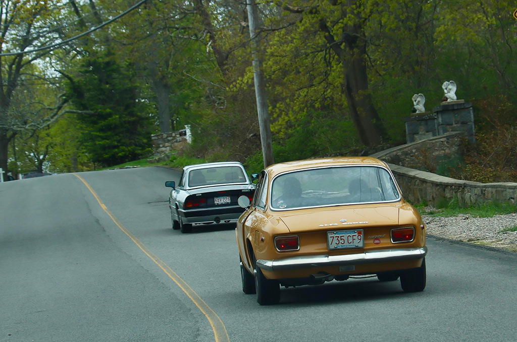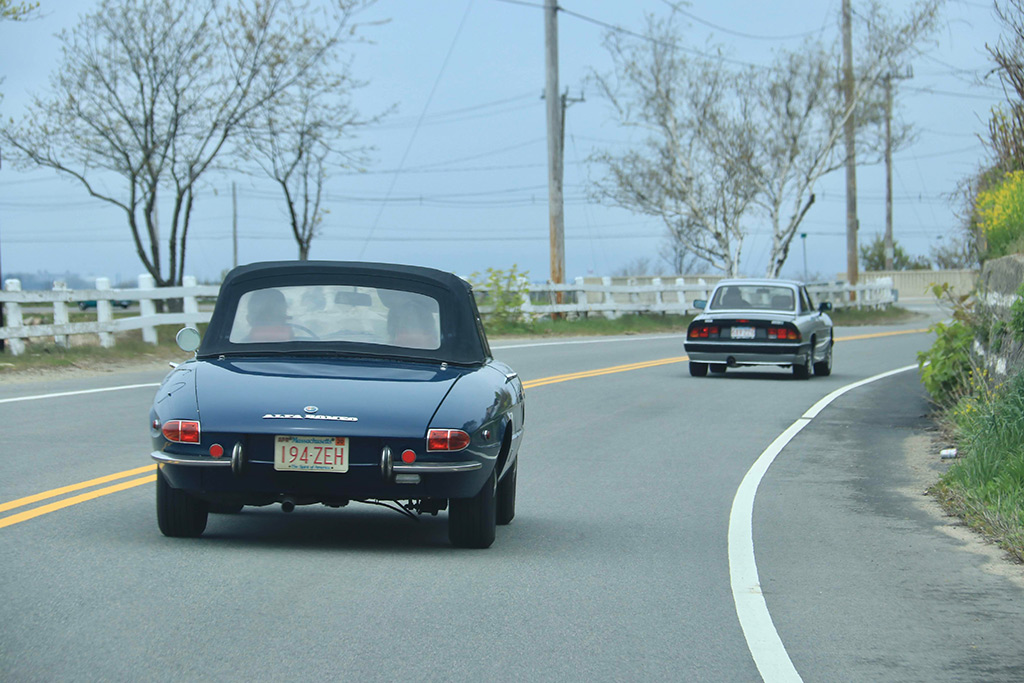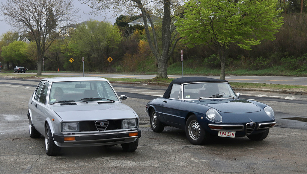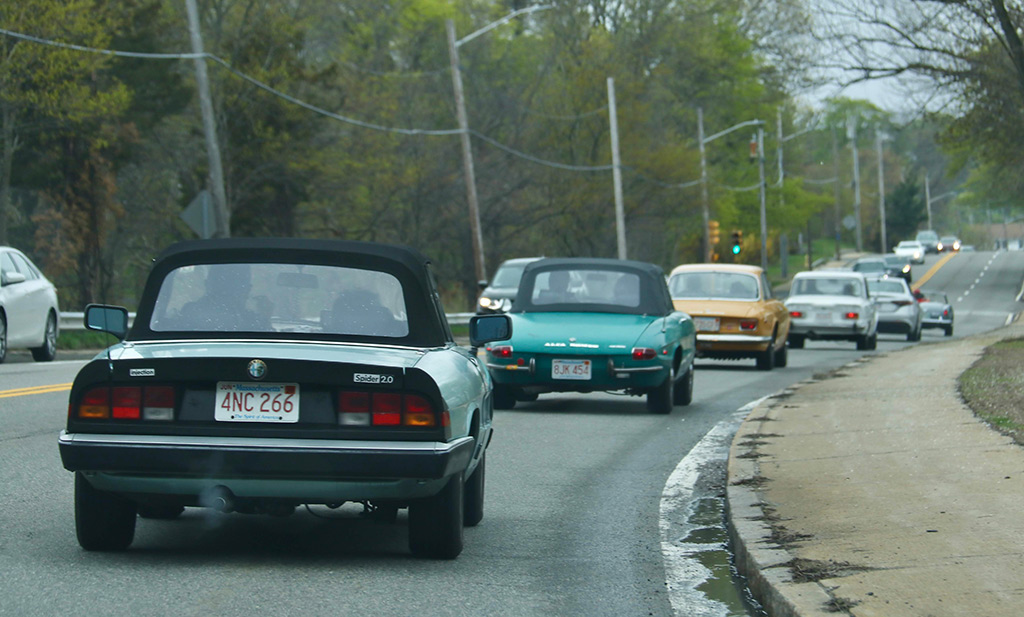 By Tom Lesko The day started with coolish weather and a just a very few sprinkles but that did not deter hearty Alfa people with spiders ... top down, of course! The weather improved some as the day went by. Tom arrived early and met 24 members and family with coffee, muffins and conversation as they arrived. Later, he passed out the "custom" route maps and explained the tour, which started with a loop around Hingham harbor. At the first stop sign, two Stelvios passed by, one in each direction. I believe those Stelvios winked and smiled ;-) as their owners waved to their elder (Tom's '65 Giulia Spider Veloce) as they went by. The tour went well, but because of the large number of cars, we were split up after touring Nantasket beach, Hull and Spinnaker Island. All was well, though, as members found their way to the "photo op stop" at Minot lighthouse beach, where we spent a few minutes chatting and taking in the spectacular view. We then traced our route back through Scituate, Cohasset harbor and "Little Harbor", and finally back to Hull for lunch at Jake's Seafood Restaurant. Plenty of great food and beverages were enjoyed over conversation and we all vowed to see each other at the next AONE event! Tom Lesko - 1965 Spider Veloce ("Grumpy") |