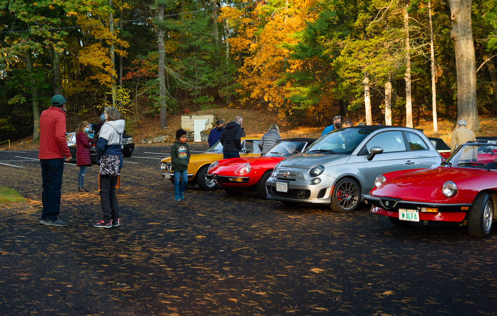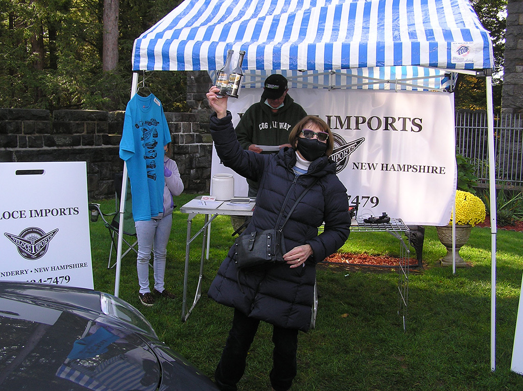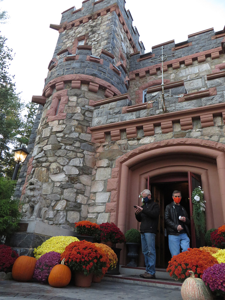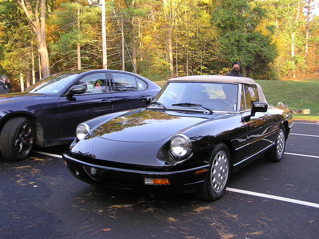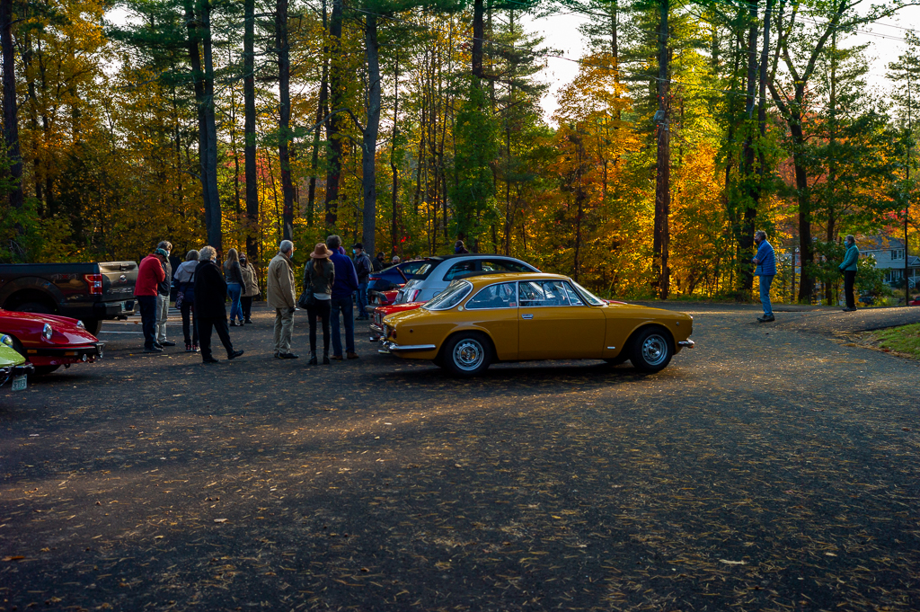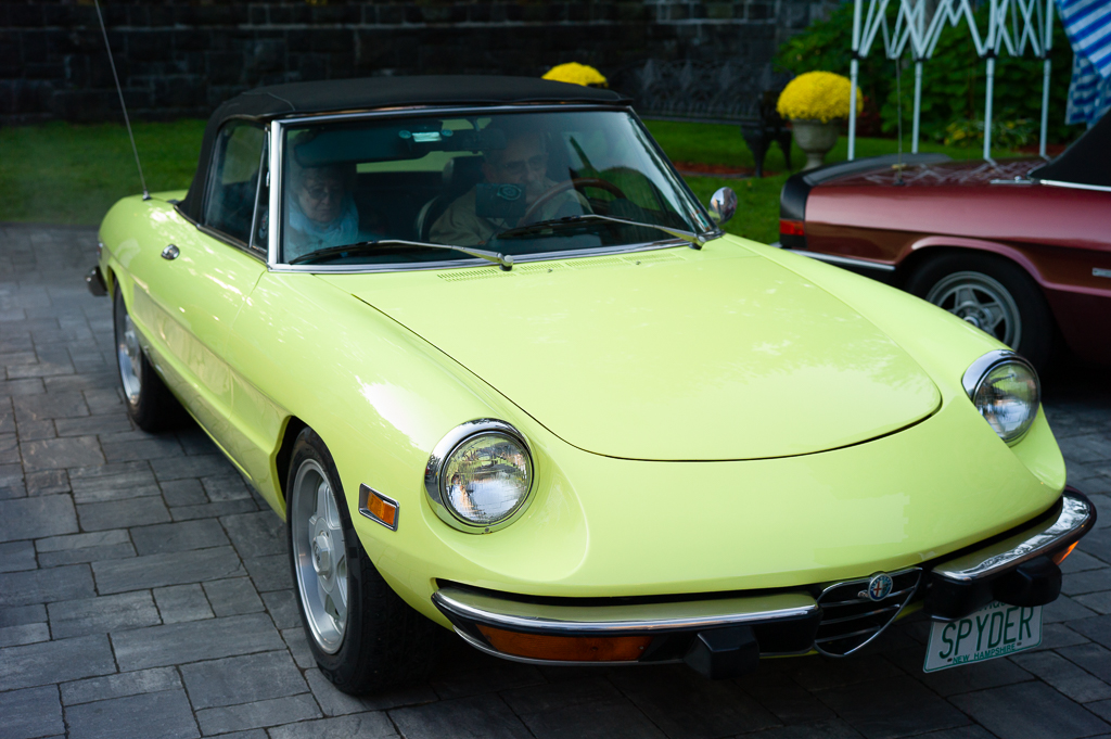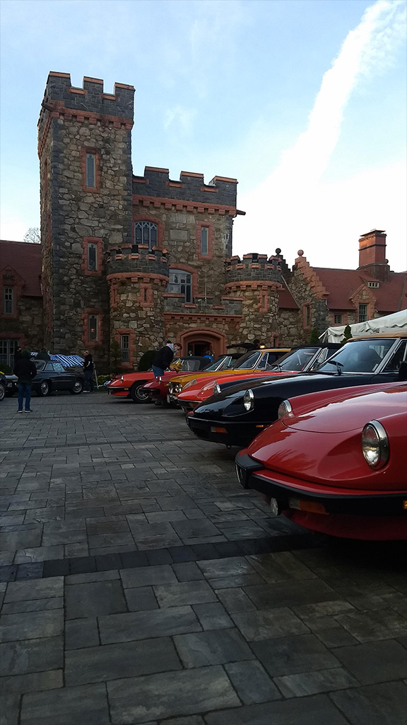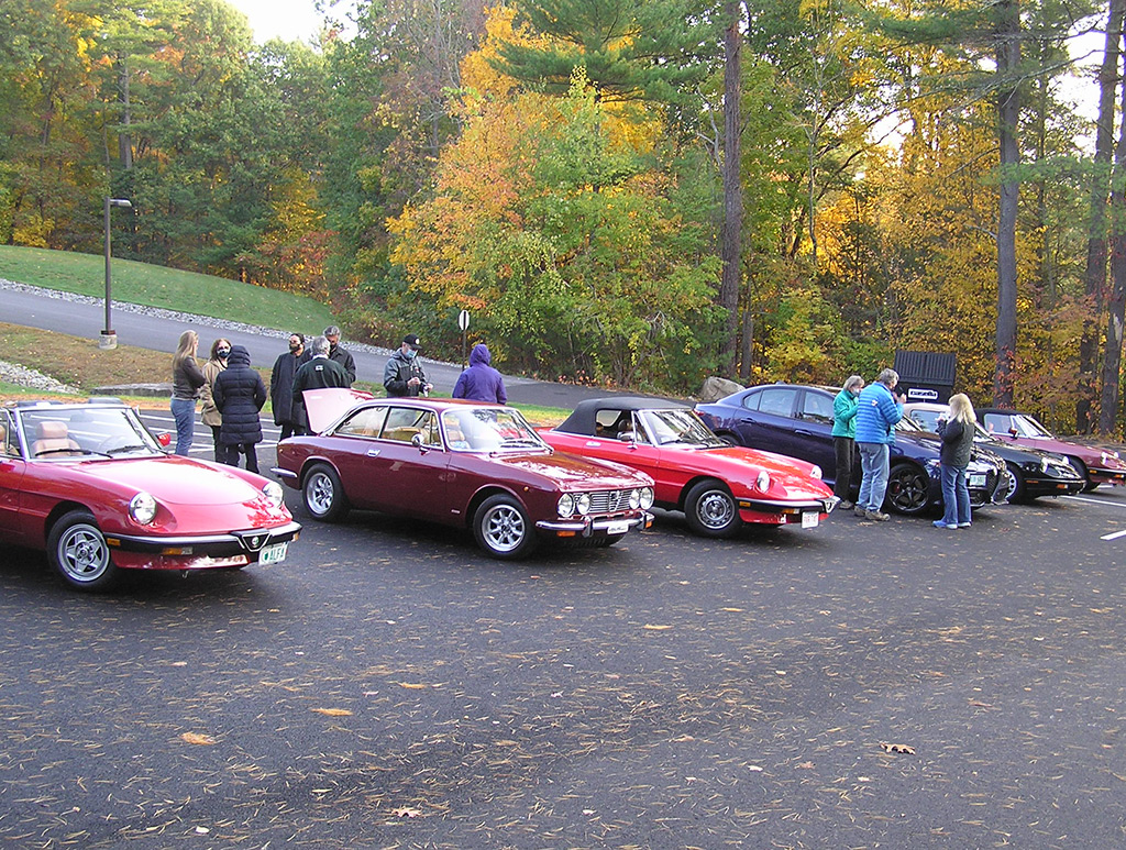 Sunday, October 18th, dawned bright, with cold, ethereal clouds of fog prowling the valleys. The lazy sun slowly emerged, warming the fresh autumn air as streams of light illuminated the fall foliage. Alfisti started gathering at the lower parking area of Searles Castle located in Windham, New Hampshire, at about 7:30 AM for an 8:00 AM event start. Unlike many of our driving events, this was a cars 'n' coffee style event, including a tour of the private castle that was created by interior designer Edward Searles back at the turn of the 20th century. Now owned by an angel investor from California, it is being lovingly refurbished and updated. Club member Karl Dubay's engineering firm has been involved in the project and he was able to pull together what turned out to be a fantastic AONE event. Even though this event came together at the last minute, we had fifteen cars lined up to follow a narrow, winding drive up the hill to the newly renovated courtyard of the castle. Although the castle is located only a couple of miles from the Interstate, we were all transported to a different, better time when the king was benevolent and Alfas ruled. What a place! (I should say palace.) Once the Alfas were carefully positioned in the courtyard, over thirty attendees enjoyed each other's company while discussing all things Alfa. As we drifted into the castle (socially distanced and properly masked), we found a welcoming table of delicious sweets and piping hot coffee provided by event sponsors The Dubay Group, Inc. and Alfa specialists Veloce Imports of nearby Londonderry. After exploring the four stories of beautiful woodwork, antique wall coverings, and imposing fireplaces of the castle, we stepped back outside where we were greeted with warming temperatures and a courtyard inhabited by beautiful Italian machinery gleaming in primary colors against the imposing stone edifice of the castle. As Italian themed music played in the background, many photos were taken and many compliments exchanged. The event closed with a raffle of prizes provided by Veloce Imports that included a free oil service and a complete exterior detail (valued at $250)! The club extends thanks to Jo and his team for the generous prizes and support of the event. [And thanks go to new member Karl Dubay and AONE Director Greg Stidsen for pulling off this terrific event, especially on such short notice! Karl reports, "When all of the Alfas vacated, I did a drip check on the new courtyard stones and was very impressed: i only used one tissue for three small drops of fresh quality lubricant over the 18 vehicles. Nice job, owners!" — Ed.] Searles Castle Tour Attendees Matt Collins and Eileen Isison - '85 Graduate Representing Veloce Imports