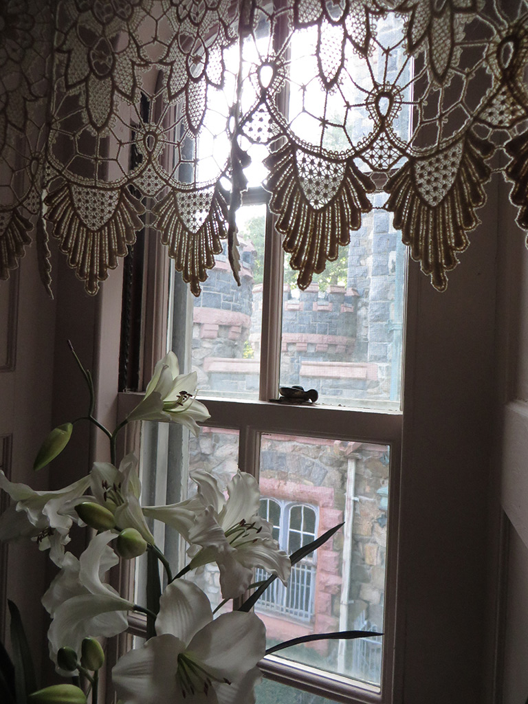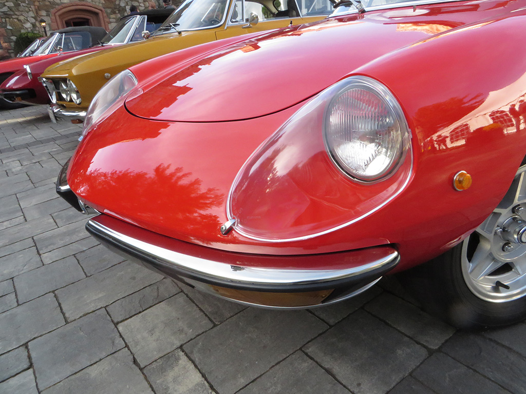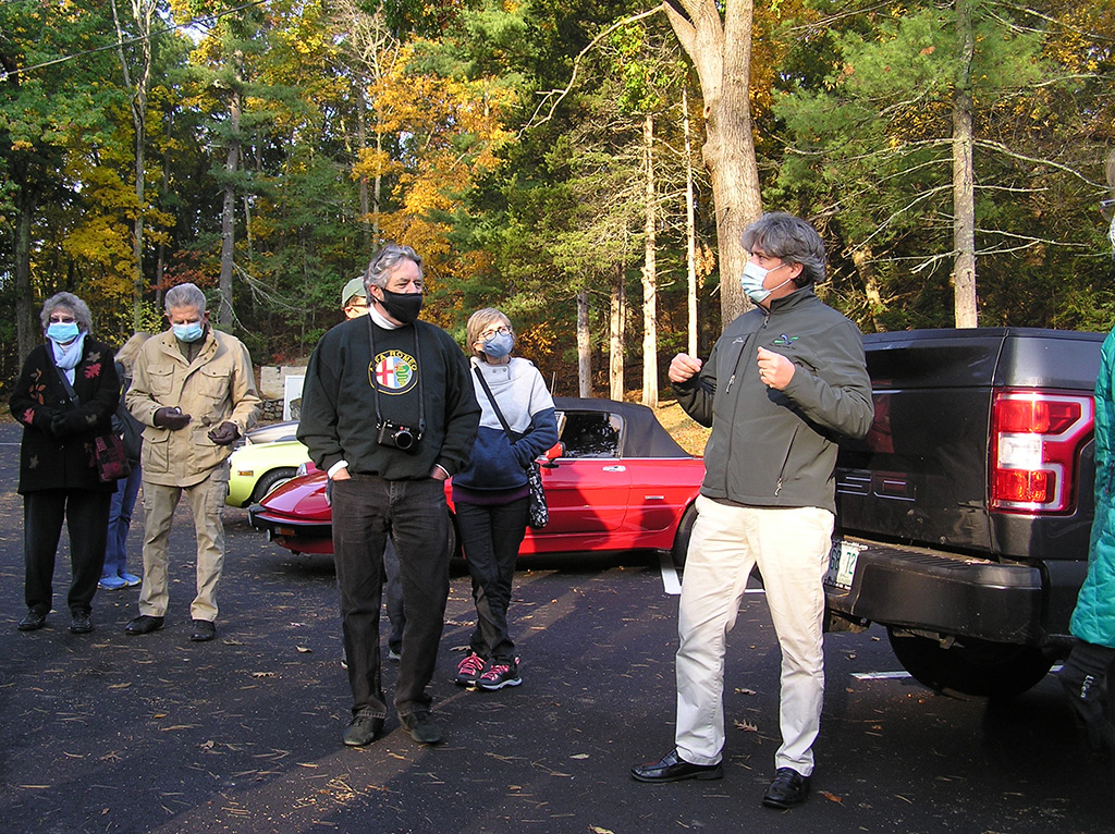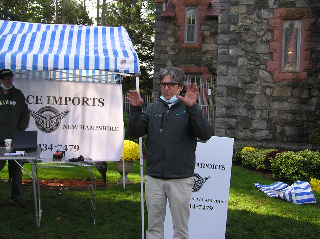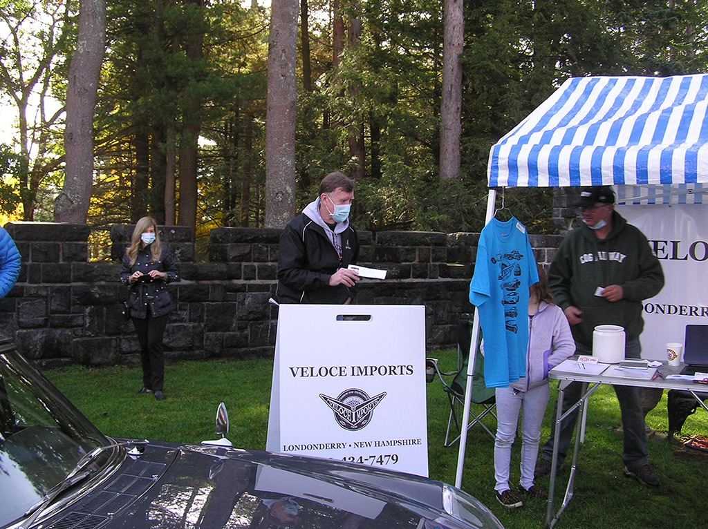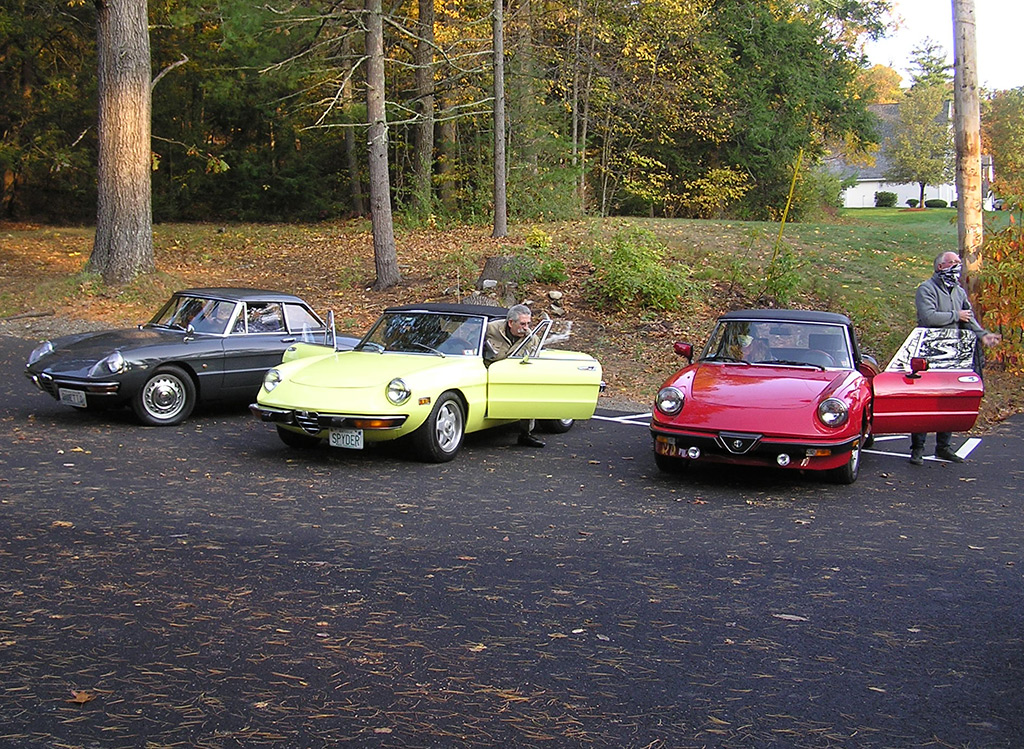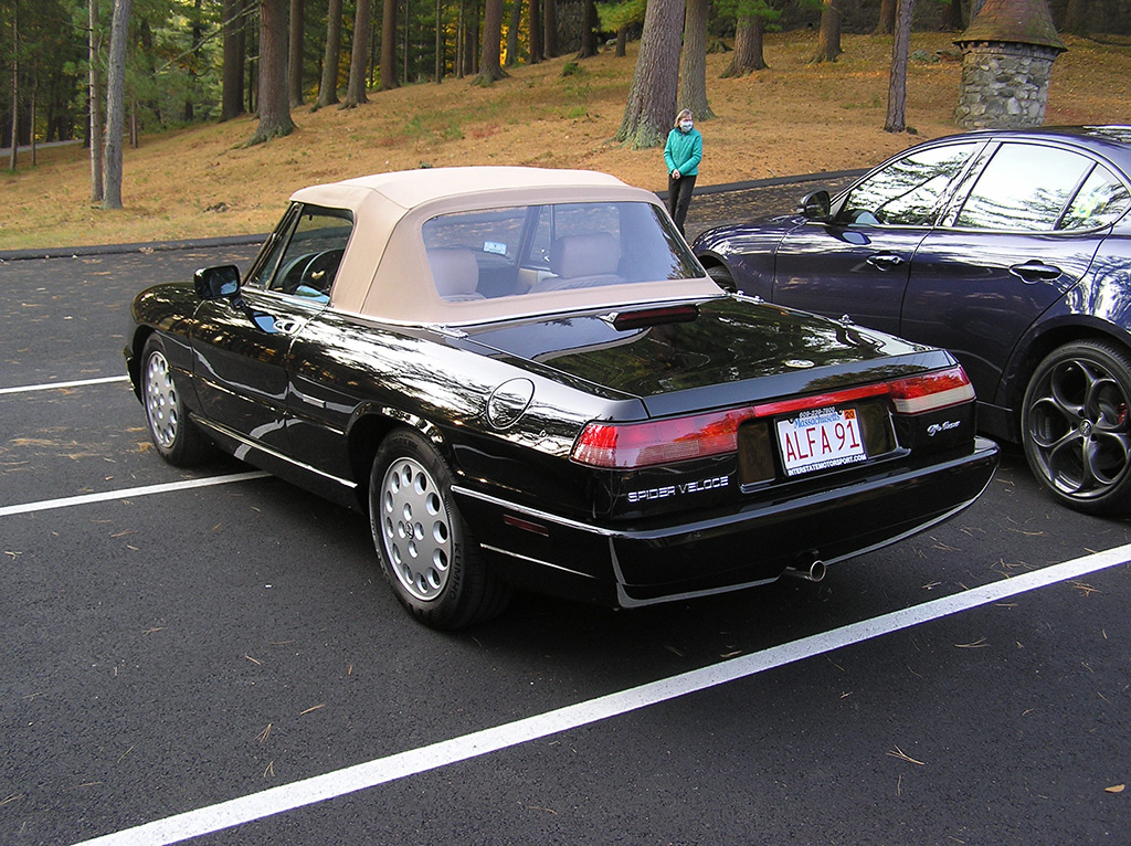 Sunday, October 18th, dawned bright, with cold, ethereal clouds of fog prowling the valleys. The lazy sun slowly emerged, warming the fresh autumn air as streams of light illuminated the fall foliage. Alfisti started gathering at the lower parking area of Searles Castle located in Windham, New Hampshire, at about 7:30 AM for an 8:00 AM event start. Unlike many of our driving events, this was a cars 'n' coffee style event, including a tour of the private castle that was created by interior designer Edward Searles back at the turn of the 20th century. Now owned by an angel investor from California, it is being lovingly refurbished and updated. Club member Karl Dubay's engineering firm has been involved in the project and he was able to pull together what turned out to be a fantastic AONE event. Even though this event came together at the last minute, we had fifteen cars lined up to follow a narrow, winding drive up the hill to the newly renovated courtyard of the castle. Although the castle is located only a couple of miles from the Interstate, we were all transported to a different, better time when the king was benevolent and Alfas ruled. What a place! (I should say palace.) Once the Alfas were carefully positioned in the courtyard, over thirty attendees enjoyed each other's company while discussing all things Alfa. As we drifted into the castle (socially distanced and properly masked), we found a welcoming table of delicious sweets and piping hot coffee provided by event sponsors The Dubay Group, Inc. and Alfa specialists Veloce Imports of nearby Londonderry. After exploring the four stories of beautiful woodwork, antique wall coverings, and imposing fireplaces of the castle, we stepped back outside where we were greeted with warming temperatures and a courtyard inhabited by beautiful Italian machinery gleaming in primary colors against the imposing stone edifice of the castle. As Italian themed music played in the background, many photos were taken and many compliments exchanged. The event closed with a raffle of prizes provided by Veloce Imports that included a free oil service and a complete exterior detail (valued at $250)! The club extends thanks to Jo and his team for the generous prizes and support of the event. [And thanks go to new member Karl Dubay and AONE Director Greg Stidsen for pulling off this terrific event, especially on such short notice! Karl reports, "When all of the Alfas vacated, I did a drip check on the new courtyard stones and was very impressed: i only used one tissue for three small drops of fresh quality lubricant over the 18 vehicles. Nice job, owners!" — Ed.] Searles Castle Tour Attendees Matt Collins and Eileen Isison - '85 Graduate Representing Veloce Imports