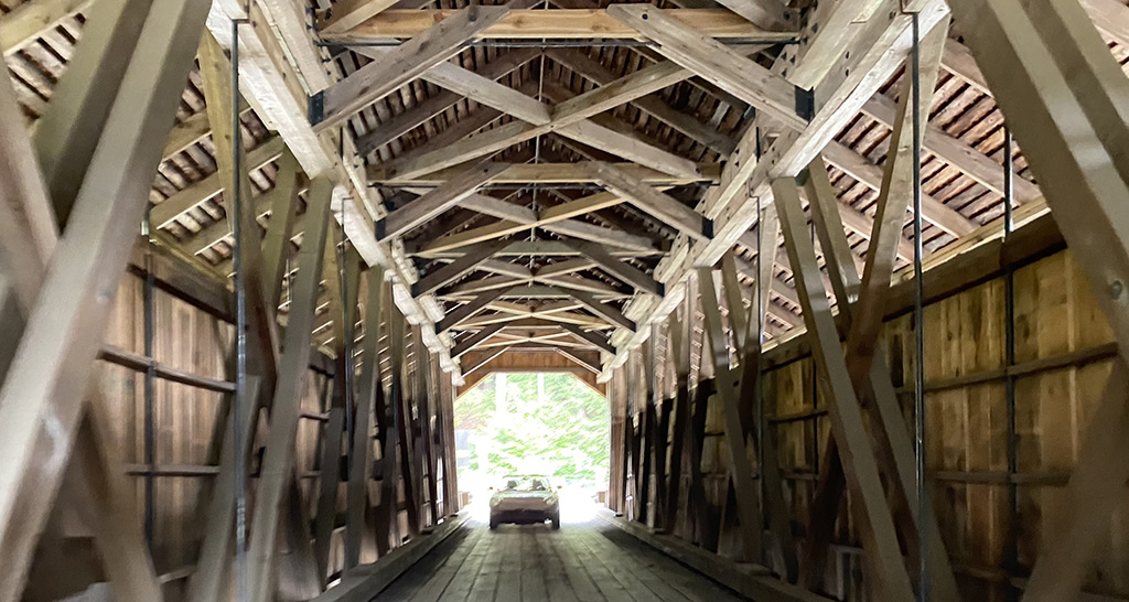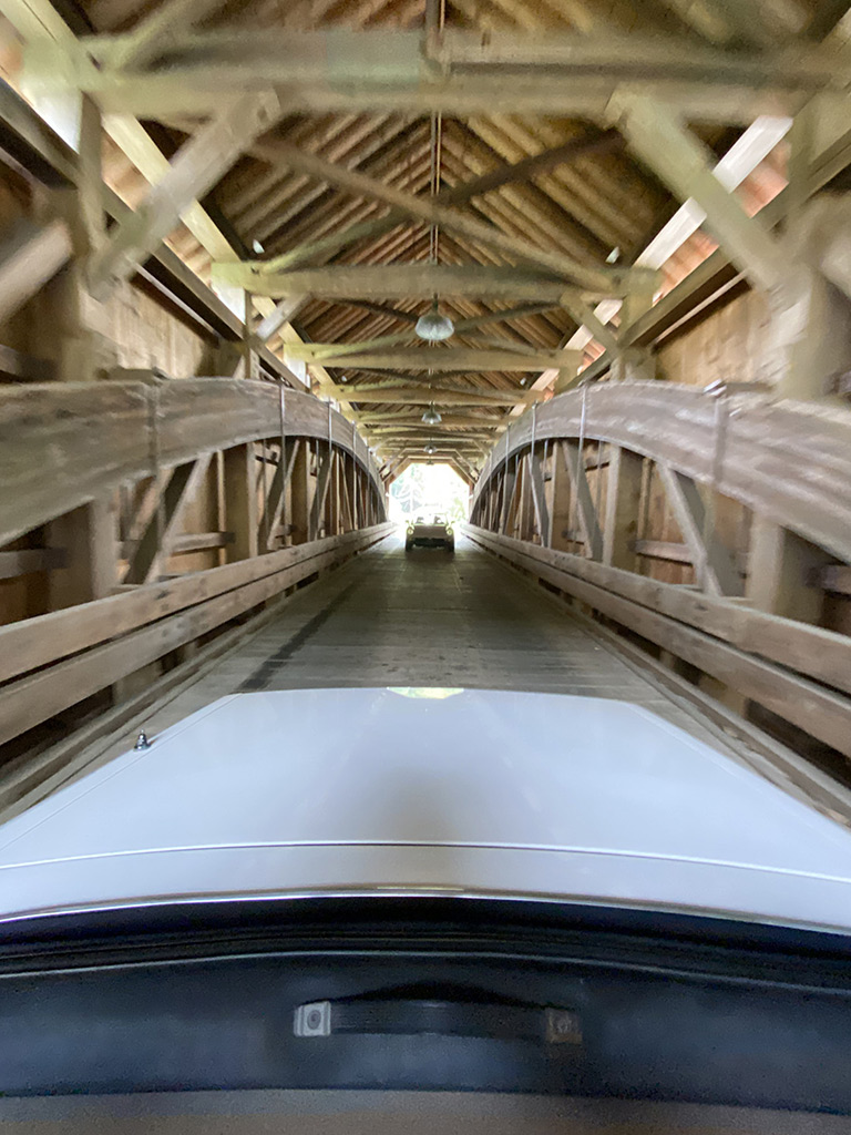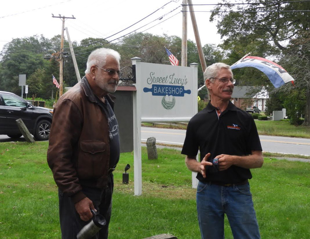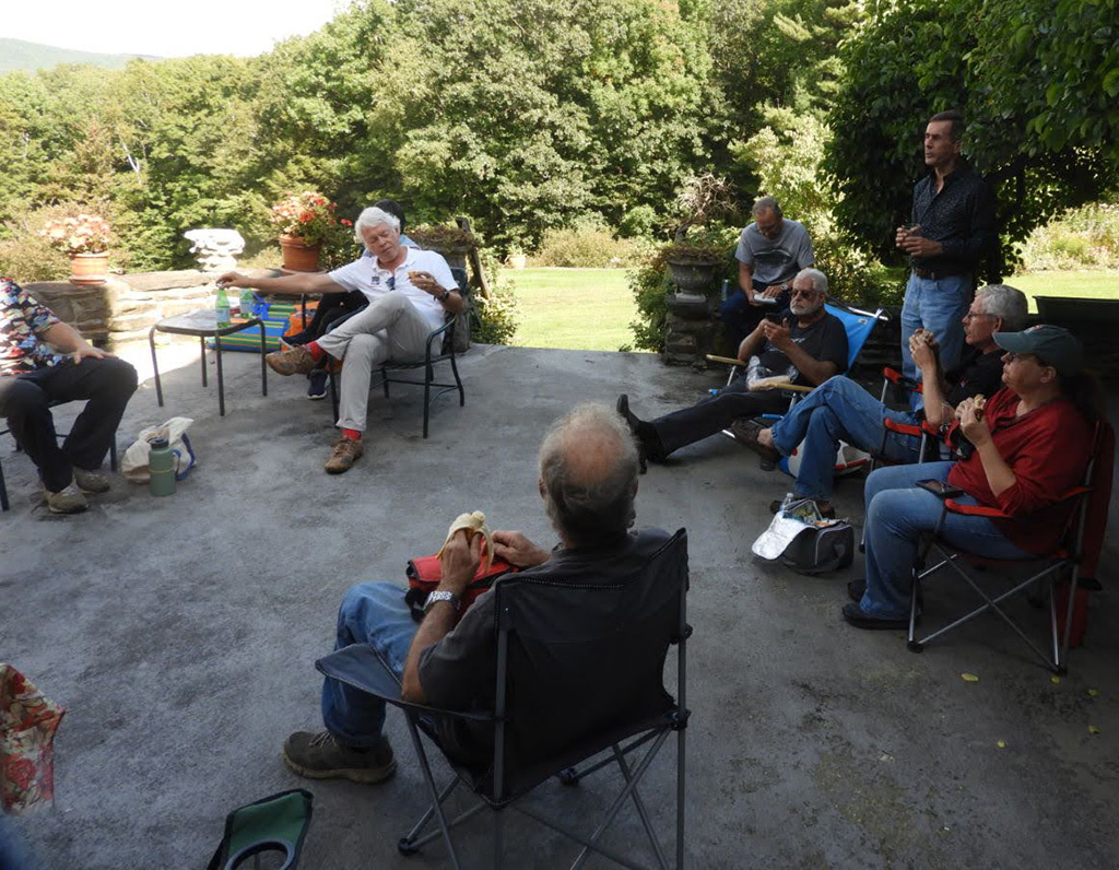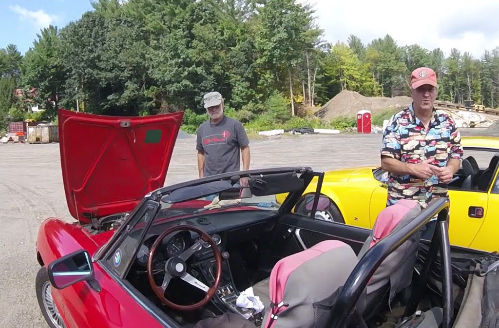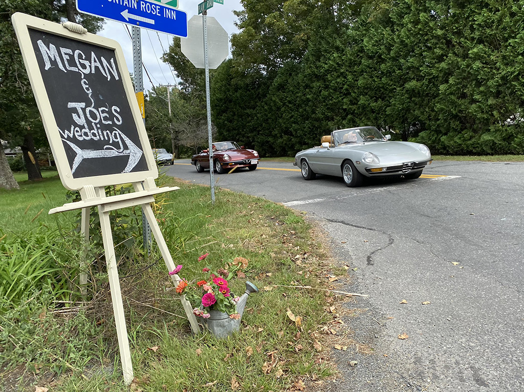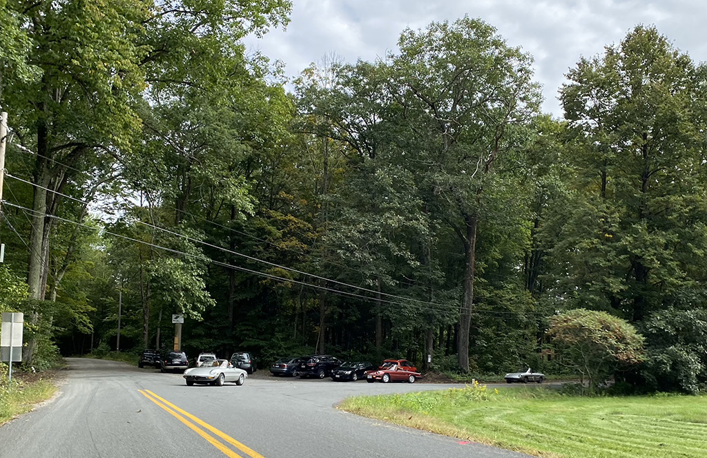 The 2021 Berkshires Sortie followed much the same format as in previous years. As usual, Alfisti met around 10-10:30 AM at a local roadside eatery, started the tour at 11 AM, and spent the next few hours enjoying (mostly) traffic-free and often twisty two-lane roads and pretty scenery. For 2021 we continued some of the changes that Covid-19 obliged us to introduce for the 2020 Sortie: rather than gathering in the morning at the Fillin' Station in South Deerfield, we met, again, in Bernardston, Mass., the last exit off of I-91 before entering Vermont. And rather than ending at a local restaurant, the 2021 Sortie concluded, as in 2020, with participants partaking of the picnic lunches they had brought to the Ashfield, Mass., home of the Walker family. For 2021, the turnout was more modest than the previous year: eight cars and twelve participants in all (there were 19 cars and 34 participants in 2020). The iffy weather forecast for the scheduled date (Saturday, September 18) did put a damper on the plans of at least one possible participant, who woke up in eastern Massachusetts to early-morning rain and decided against joining the tour. Another Boston-based participant was not discouraged by the poor early-morning eastern Massachusetts weather but did discover that his car's windshield wipers did not work. Many of us with older Alfas often do not think to service our cars' wipers, until the once-in-a-blue moon downpour reminds us that we should, which, of course, we promptly forget to do once the sun returns. The 2020 Sortie's gathering place in Bernardston was a roadside eatery aptly, for an Alfa Romeo gathering, called the Four Leaf Clover, and one of the photos from last year's event featured a Giulia Quadrifoglio (i.e. Four Leaf Clover) parked in front of the restaurant's sign. Unfortunately, the Four Leaf Clover restaurant fell victim to the pandemic's economic uncertainty and closed. Luckily, though, Sweet Lucy's Bakeshop is located right next door, has a large parking lot and outdoor seating and offers coffee and a large selection of baked goods, so we were able to gather there for the start of the tour. Peter and Meg, the Sortie's organizers, arrived at Sweet Lucy's before 10 AM and established an AONE presence at one of the Bakeshop's outdoor picnic tables. During the ensuing hour, seven other AONE cars trickled in, five of which were Spiders, the earliest being George Chris's 1971 1750 Spider and the most recent being Deb and Dan Donovan's 1988 Spider. The other Spiders were: Tom Freiberger's 1974 Spider, which is the same silver color as George's 1971 model (which, Peter pointed out, was also the original color of Meg's and his white Spider); Larry LoPresti's red Spider, like Peter's and Meg's, a 1977 model; and John and Roberta Rowntree's 1987 Spider, which, along with the Donovans', represented series 3 Spiders. Stefan and Sonchu Gavell's lovely, bright yellow 1973 1600 Junior Zagato completed our group of type 105 Giulia-based Alfas, and along with Bob Falco's almost brand new 2020 Giulia Q4 carried the flag for closed cars. Larry announced that his car was having trouble both starting and idling, though he was confident that it would be able to do clutch starts, and everyone assured him that we would be happy to push when necessary. We were never put to the test, as throughout the day Larry's Spider started every time it needed to. Idling, however, was another matter, and at our second "pit stop," in the parking lot of the Berkshire East ski area, the more mechanically-inclined among us tried to diagnose and improve Larry's idling problem. Of course the tour encountered no traffic lights, no traffic jams, and only a small number of stop signs, so thankfully the opportunities for Larry's Spider to stall and not restart were few. Having but eight cars on the tour made it easy to keep our group together, especially as the Gavells' Junior Zagato and Bob Falco's 2020 Giulia tended to remain at the rear of our peloton. The bright yellow of the Gavells' Junior Zagato and the brightly-lit xenon headlamps of Bob's Giulia were easy to see in rear-view mirrors. This made it easy to check that we had not lost anyone, and as a result, little time was lost re-grouping at the tour route's intersections. Since before dawn, the night's wet weather had been moving from west to east. At 11 AM the local roads were dry, but the sky was still mostly cloudy. From Bernardston our group wended its way south and west, toward skies that had been clearing since 9 AM. We drove along various country roads, through Leyden, Mass., where we crossed the first of three covered bridges on the route, and after about half an hour made the first of two stops, at Apex Orchard at the top of Peckville Road, outside Greenfield. A local dog walker on Peckville Road did not take at all kindly to sports cars driven con brio up what he must have felt was "his" hill and yelled out choice expletives that could be distinctly heard over what noise our cars were making. However his objections were forgotten at the top of the hill, in the orchard's parking lot. From this parking lot, we enjoyed an extraordinary view over the Connecticut River valley, with Vermont and New Hampshire in the distance, with Mount Monadnock dominating in the distance. Long-time AONE members recalled how Guilherme Bonatto, before he returned to Brazil, used to organize each fall a Giro di Monadnock in the area around Mount Monadnock. Apex Orchard allowed for some stretching of legs, kicking of tires, purchasing fresh and local apples and peaches, and taking striking photos. After leaving the orchard, we drove toward Colrain, along the same road where two years previously, but in the opposite direction, Rob Rizzo's GTV6 had run over an oversized piece of firewood lying in the middle of the narrow lane. Fortunately this year any fallen firewood had been cleared away, and our cars reached Colrain without incident. There we turned left onto route 112 (on