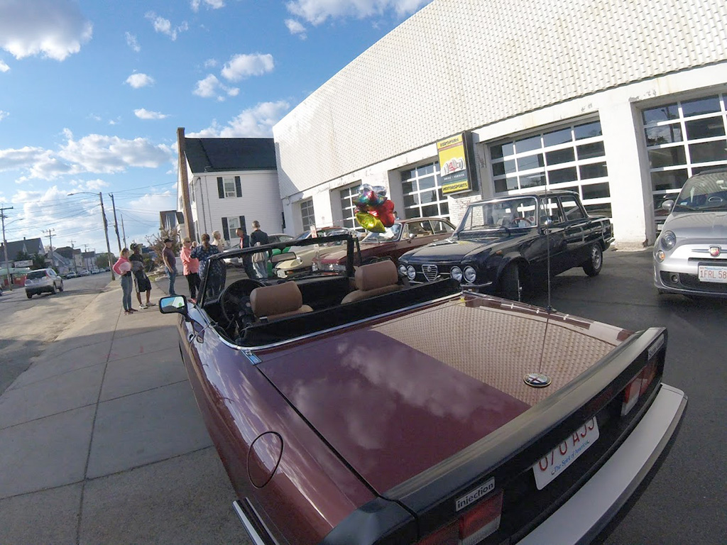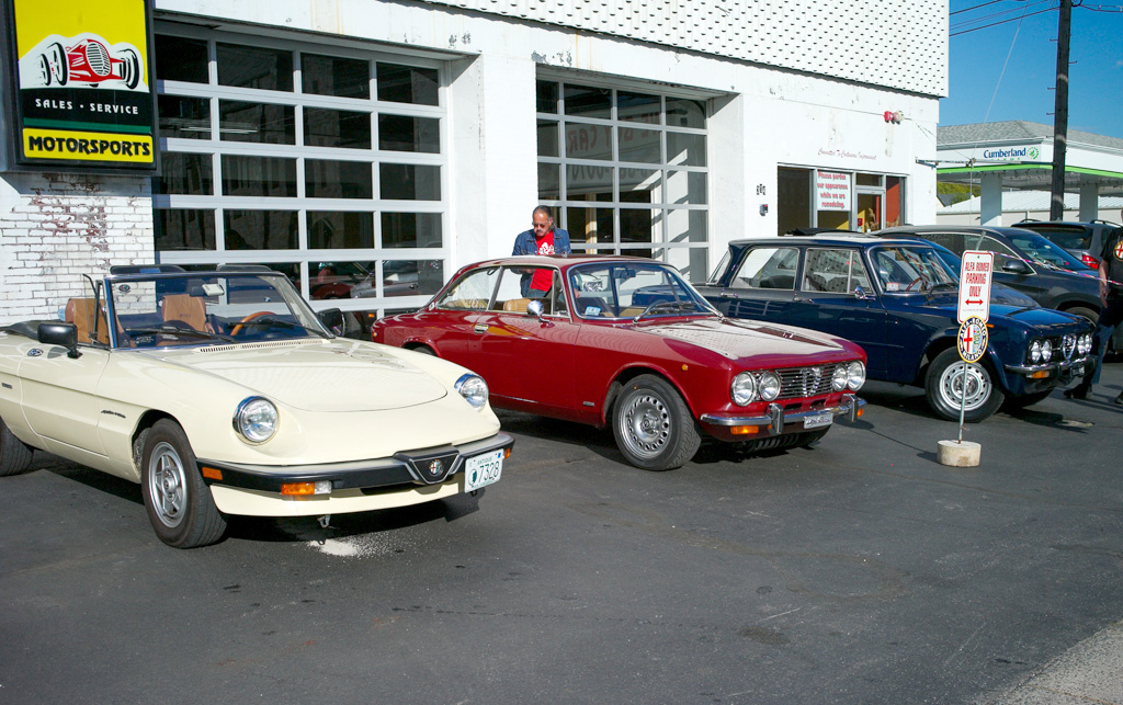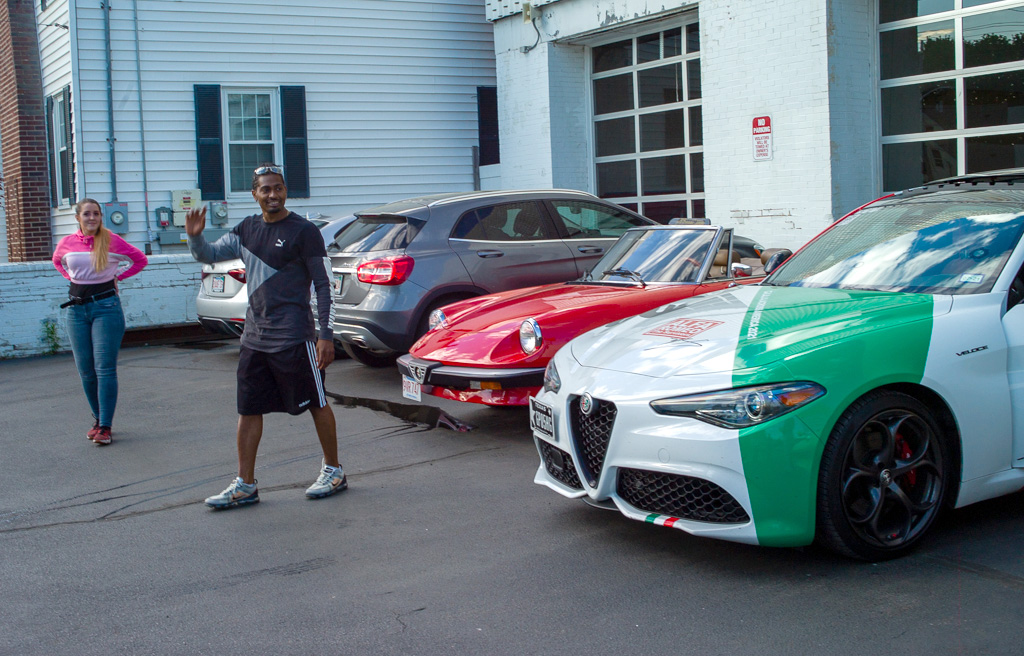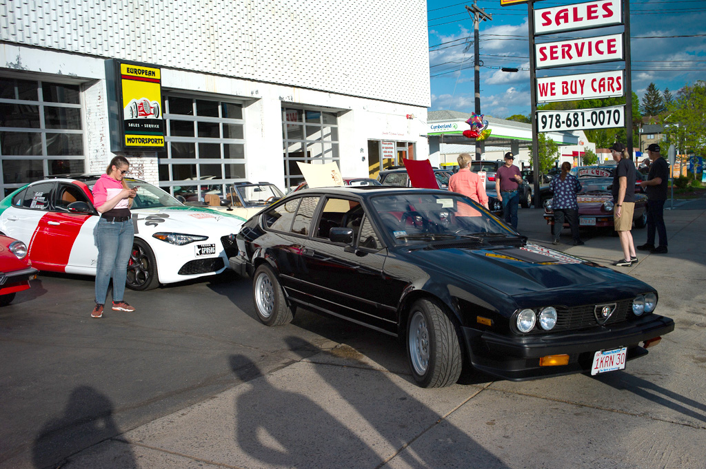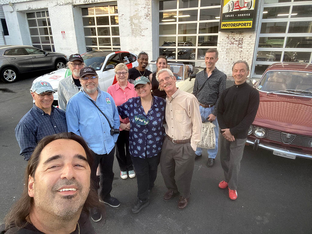 Giulia Across America By Greg Stidsen The afternoon of May 14th turned out to be a beautiful late Spring day — a perfect day for a drive in a classic Alfa — and eight New England Alfisti braved Friday rush hour to welcome Ofer Kedem and support his 30-day 11,000-mile journey across America. Michael Ricciardi, owner of European Motorsports, graciously offered his parking area and showroom to host the event and give us tours of his extensive inventory of collector cars. George Dolak arrived early with a great selection of finger foods and refreshments and helped Greg Stidsen, event sponsor, to set it all up in preparation for a 5:00PM arrival. Apparently, "Murphy" got wind of our event and closed the easy direct route from the highway to the event location, causing everyone to detour around Lawrence in rush hour traffic. But by about 5:30 we had a quorum of AONE members to welcome Ofer and his 2019 Giulia Sport as he arrived from New York City. He was accompanied by wingman Sean and his lovely girlfriend Jennifer driving a 2018 Giulia. Sean and Jennifer live in Watertown, but Sean had driven down to attend the previous evening's event on Staten Island and caravanned with Ofer to our event. After kicking tires and telling tales in the parking area, we stepped inside for some refreshments and Ofer told us his story. Living in Fort Worth, Texas, this Israeli ex-pat was frustrated that Americans don't seem to share his passion for all things Alfa Romeo and decided to take matters into his own hands — to travel the continent to evangelize the brand and meet as many 'car nuts' as possible along the way. He explained that Alfa vehicles, even the newest ones, have a 'soul' that other cars lack. He said he survived Covid 19 by acquiring more Alfas, importing two 916s (European models) — a Spider and a GTV — to add to his collection (which includes an Alfetta, a GTV6, a Stelvio, and his 2019 Giulia) while starting a YouTube channel and planning this trip. He was very excited to see so many classic Alfas here in New England and was very grateful for the warm welcome from AONE members. As the sun started to set, we all started our Alfas and went home as Ofer headed west toward his next stop in Rochester, New York. Check out his Facebook page and Official Tour Website to follow him and see all the events along the way. And here's a video recap of the first 10 days of his adventure. [DO watch that recap — it's very slick! —Ed.] Attendees My cordial thanks to all who attended, and if you missed it — enjoy the pictures! |