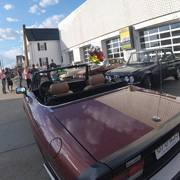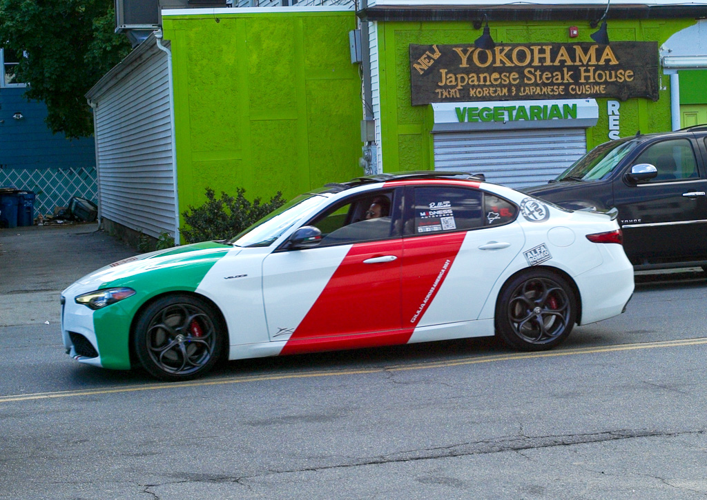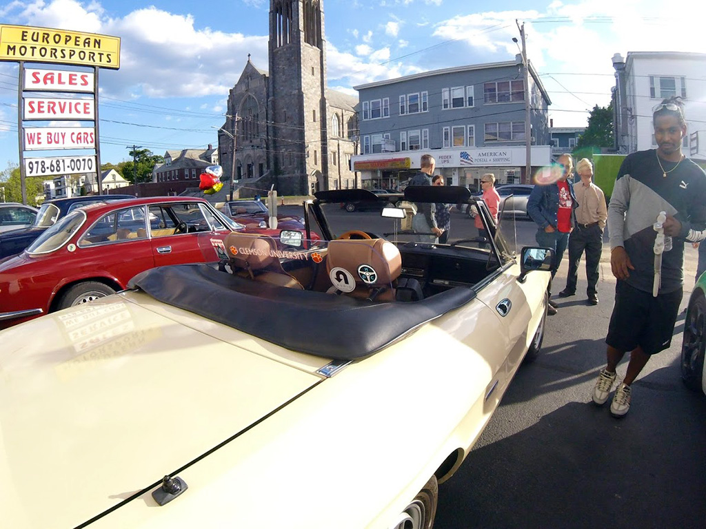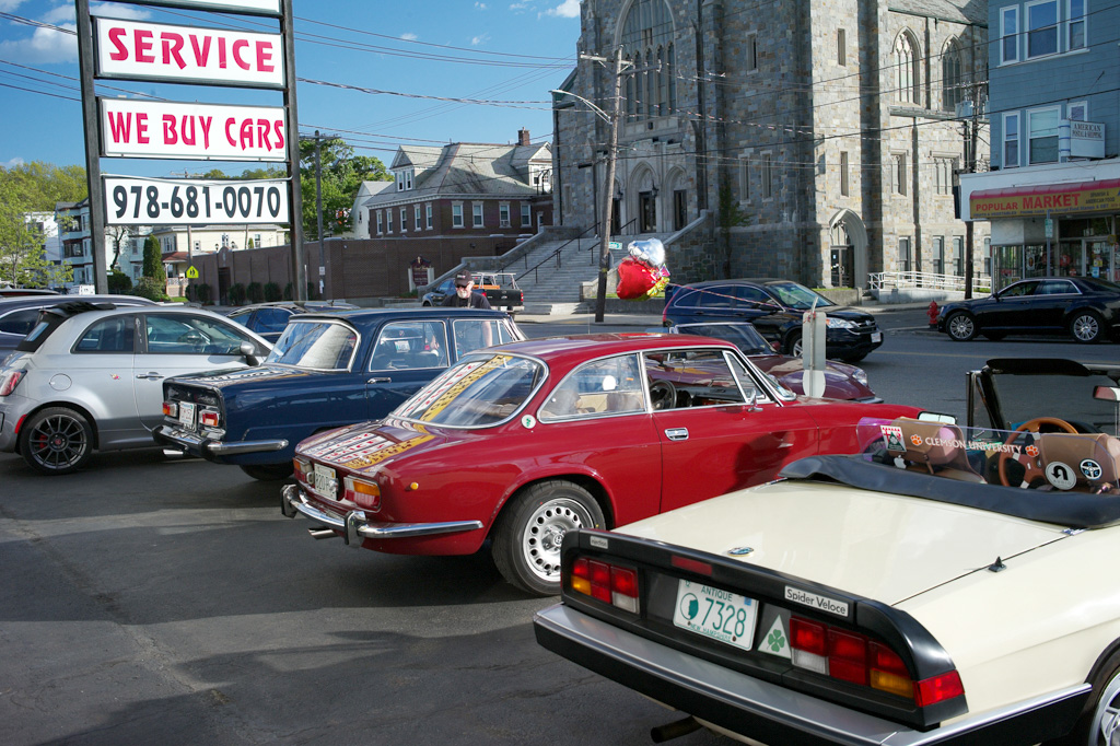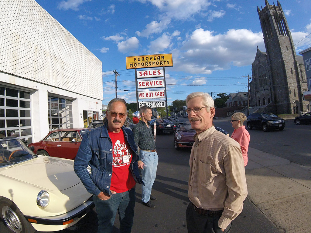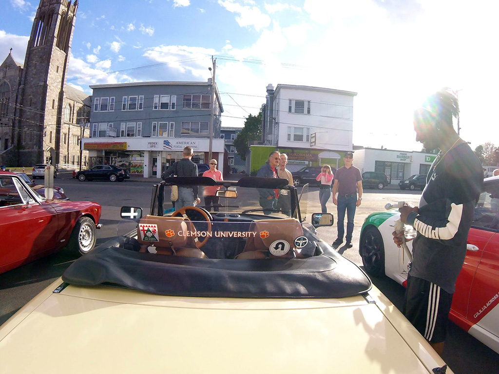 Giulia Across America By Greg Stidsen The afternoon of May 14th turned out to be a beautiful late Spring day — a perfect day for a drive in a classic Alfa — and eight New England Alfisti braved Friday rush hour to welcome Ofer Kedem and support his 30-day 11,000-mile journey across America. Michael Ricciardi, owner of European Motorsports, graciously offered his parking area and showroom to host the event and give us tours of his extensive inventory of collector cars. George Dolak arrived early with a great selection of finger foods and refreshments and helped Greg Stidsen, event sponsor, to set it all up in preparation for a 5:00PM arrival. Apparently, "Murphy" got wind of our event and closed the easy direct route from the highway to the event location, causing everyone to detour around Lawrence in rush hour traffic. But by about 5:30 we had a quorum of AONE members to welcome Ofer and his 2019 Giulia Sport as he arrived from New York City. He was accompanied by wingman Sean and his lovely girlfriend Jennifer driving a 2018 Giulia. Sean and Jennifer live in Watertown, but Sean had driven down to attend the previous evening's event on Staten Island and caravanned with Ofer to our event. After kicking tires and telling tales in the parking area, we stepped inside for some refreshments and Ofer told us his story. Living in Fort Worth, Texas, this Israeli ex-pat was frustrated that Americans don't seem to share his passion for all things Alfa Romeo and decided to take matters into his own hands — to travel the continent to evangelize the brand and meet as many 'car nuts' as possible along the way. He explained that Alfa vehicles, even the newest ones, have a 'soul' that other cars lack. He said he survived Covid 19 by acquiring more Alfas, importing two 916s (European models) — a Spider and a GTV — to add to his collection (which includes an Alfetta, a GTV6, a Stelvio, and his 2019 Giulia) while starting a YouTube channel and planning this trip. He was very excited to see so many classic Alfas here in New England and was very grateful for the warm welcome from AONE members. As the sun started to set, we all started our Alfas and went home as Ofer headed west toward his next stop in Rochester, New York. Check out his Facebook page and Official Tour Website to follow him and see all the events along the way. And here's a video recap of the first 10 days of his adventure. [DO watch that recap — it's very slick! —Ed.] Attendees My cordial thanks to all who attended, and if you missed it — enjoy the pictures! |